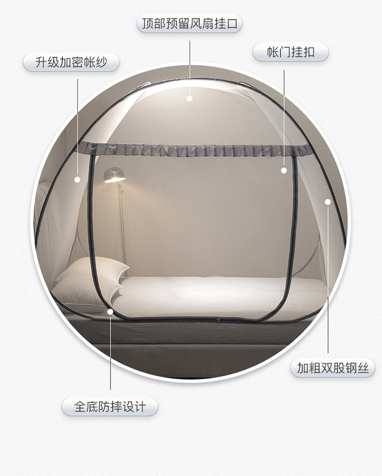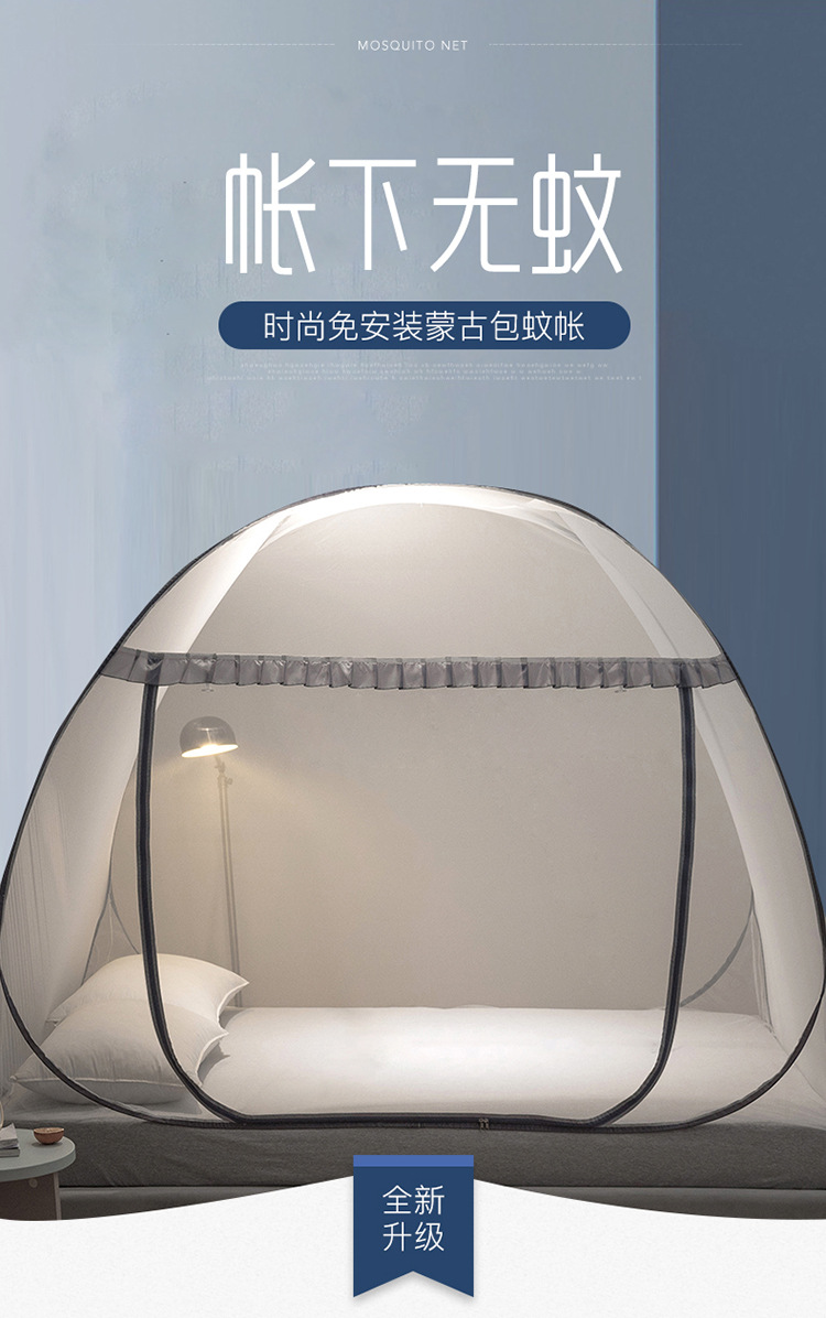 厂家直销免安装蚊帐钢丝魔术防蚊帐蒙古包单开门外贸跨境一件代发