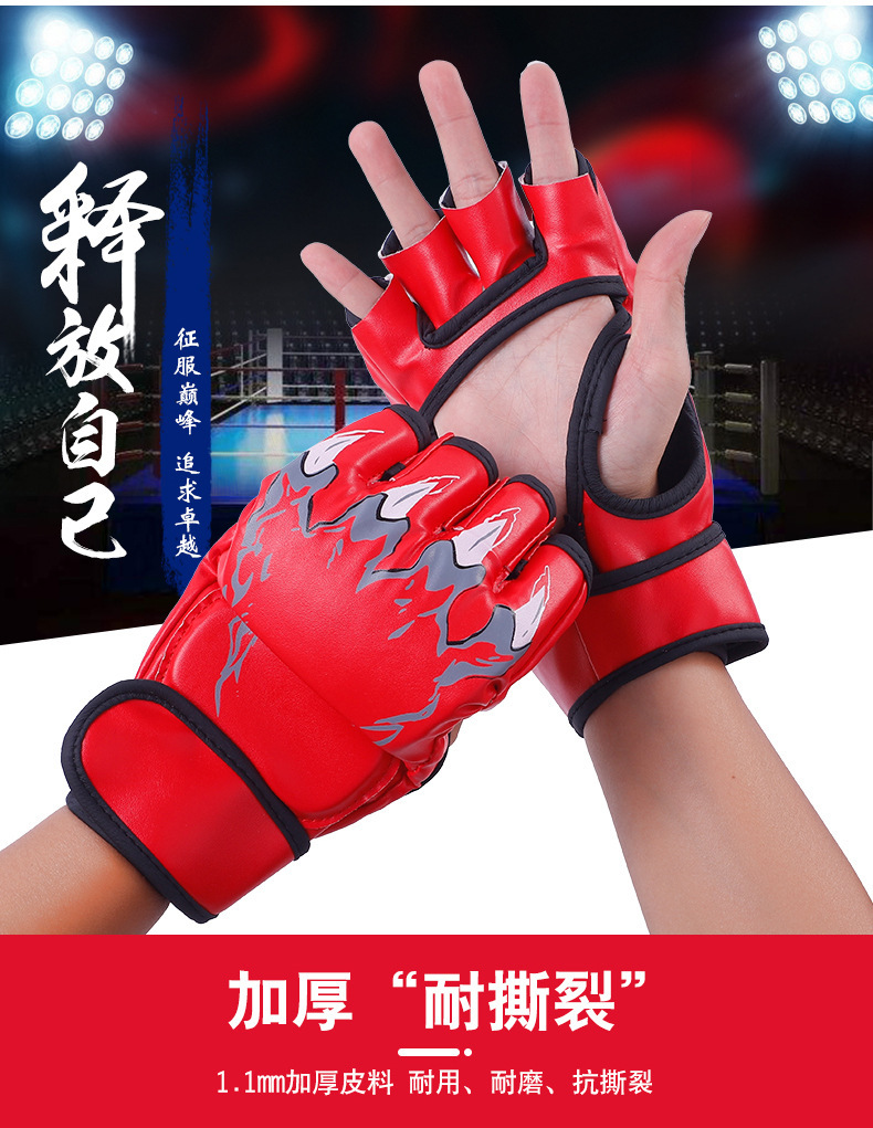 半指拳击手套 成人儿童散打格斗UFC拳套 泰拳搏击训练MMA拳击手套