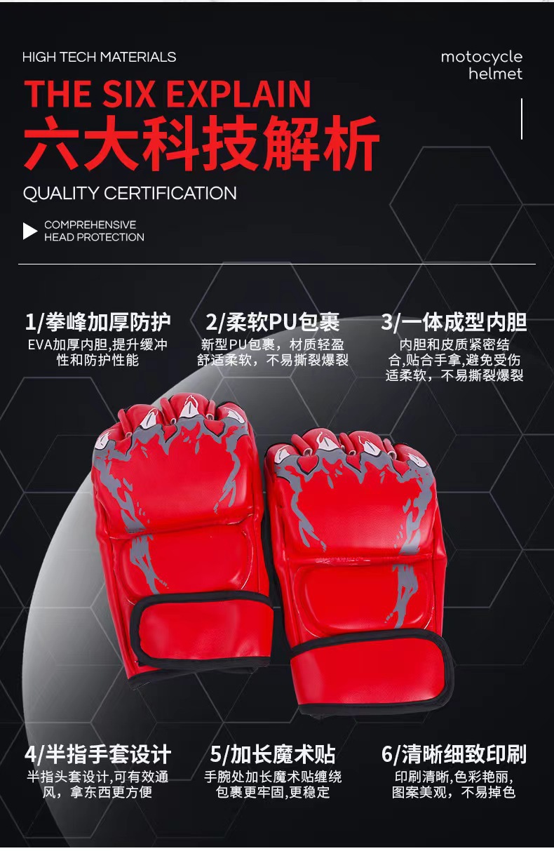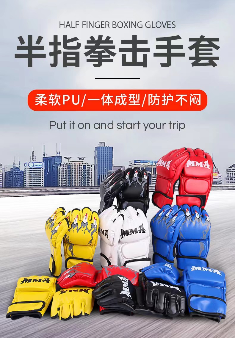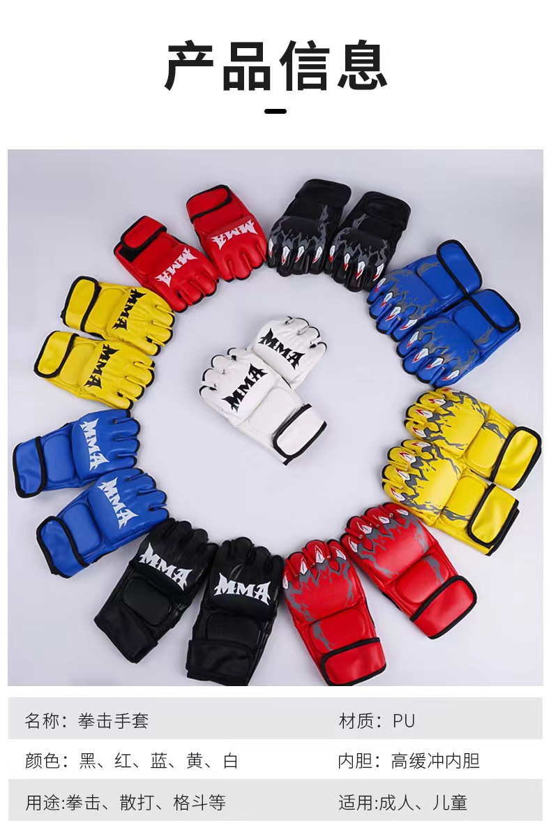 拳击手套半指MMA拳套散打加厚成人手套打沙袋沙包搏击格斗拳套UFC