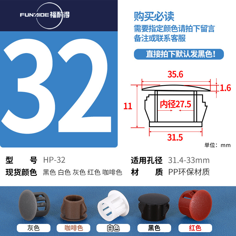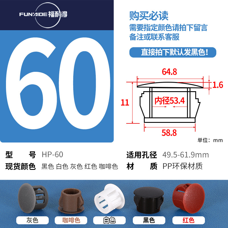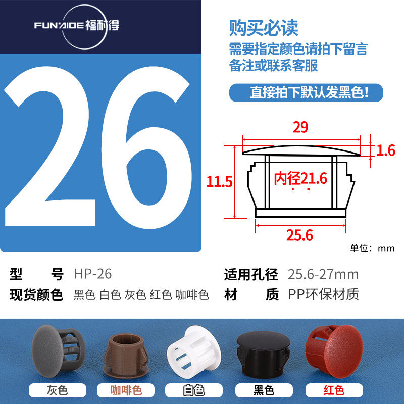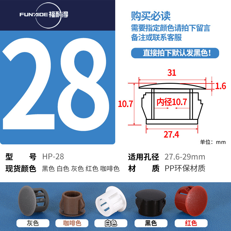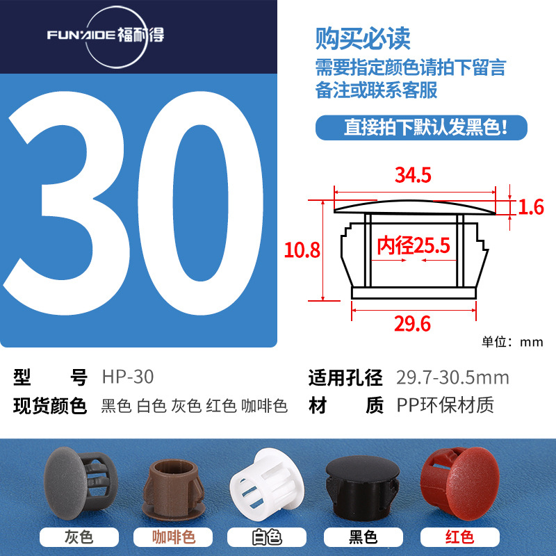 HP扣式孔塞堵头塑料盖瓷砖孔堵头塞螺丝盖塞头家具孔盖装饰盖圆形