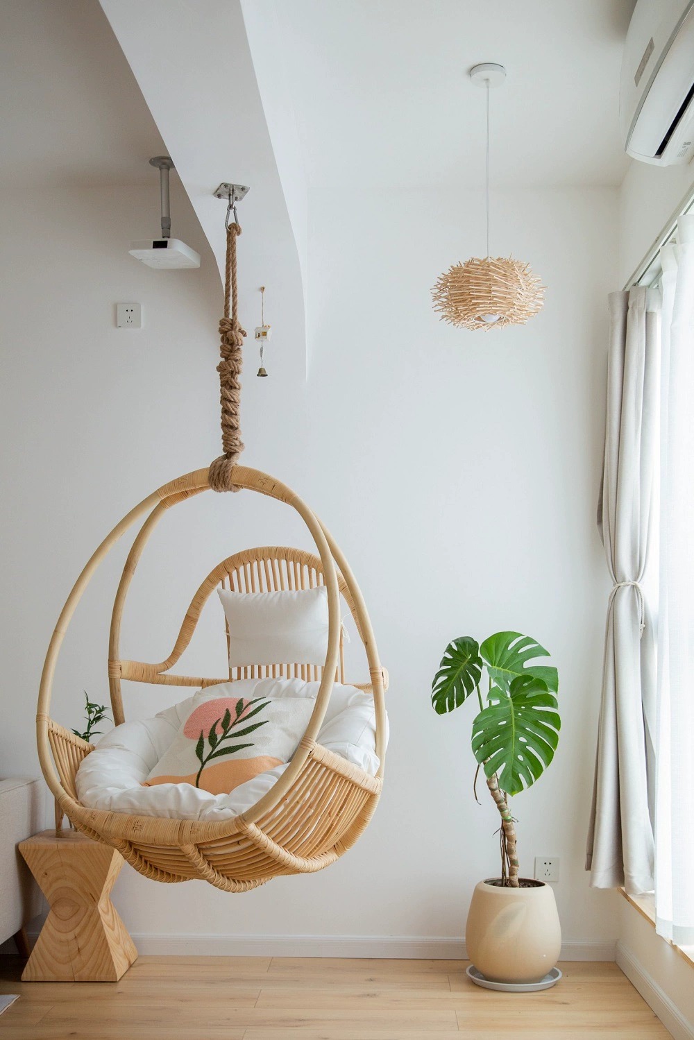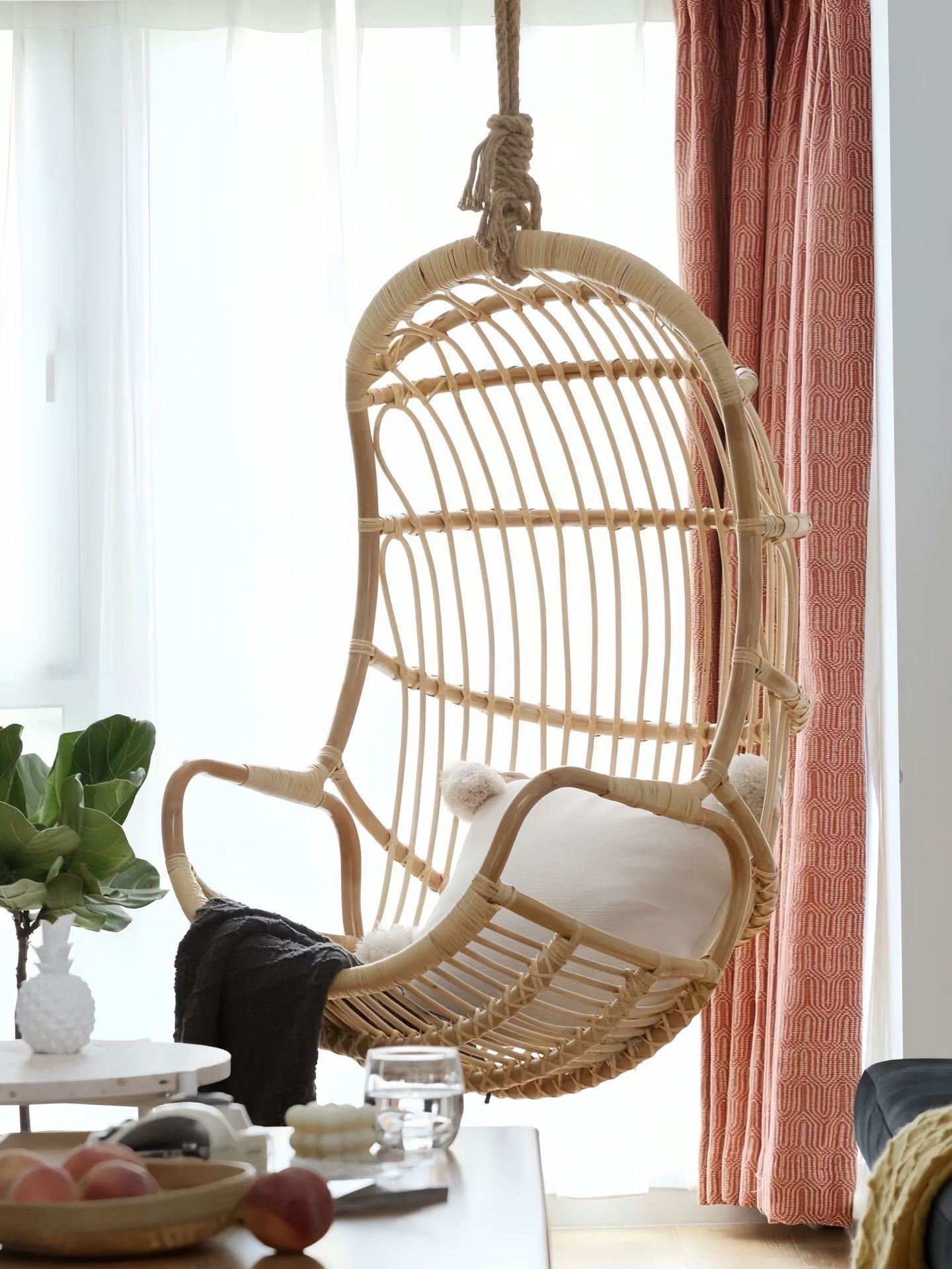 阳台吊篮藤椅北欧简约悬挂吊椅室内秋千编织天然真藤鸟巢摇椅网红