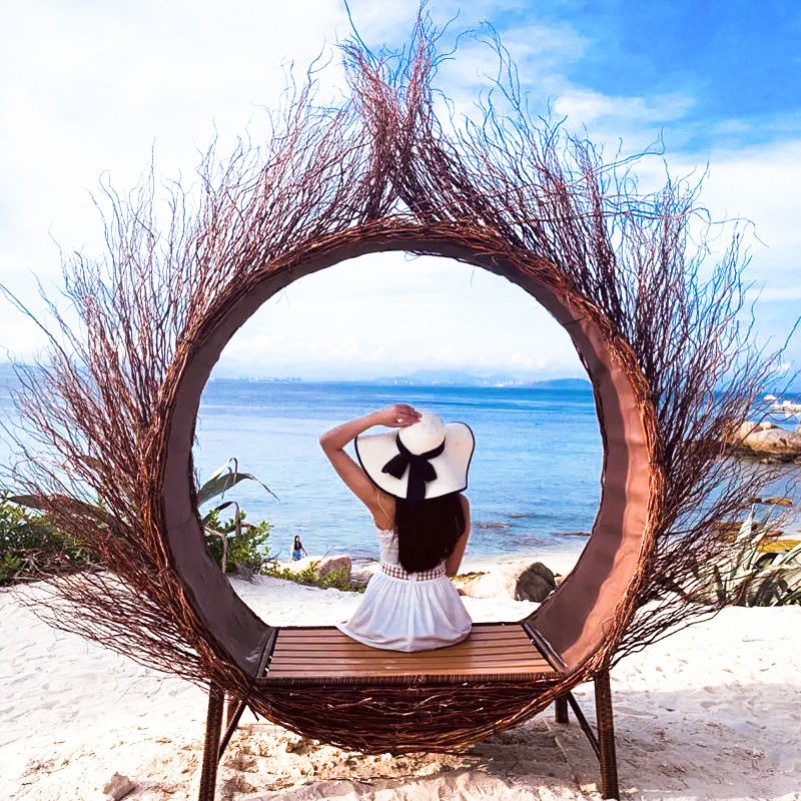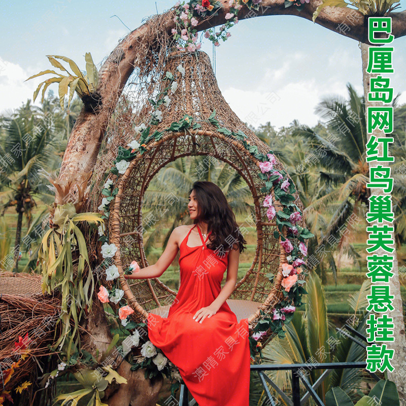 网红鸟巢户外打卡秋千藤编吊椅巴厘岛景区民宿婚纱拍摄藤艺吊篮