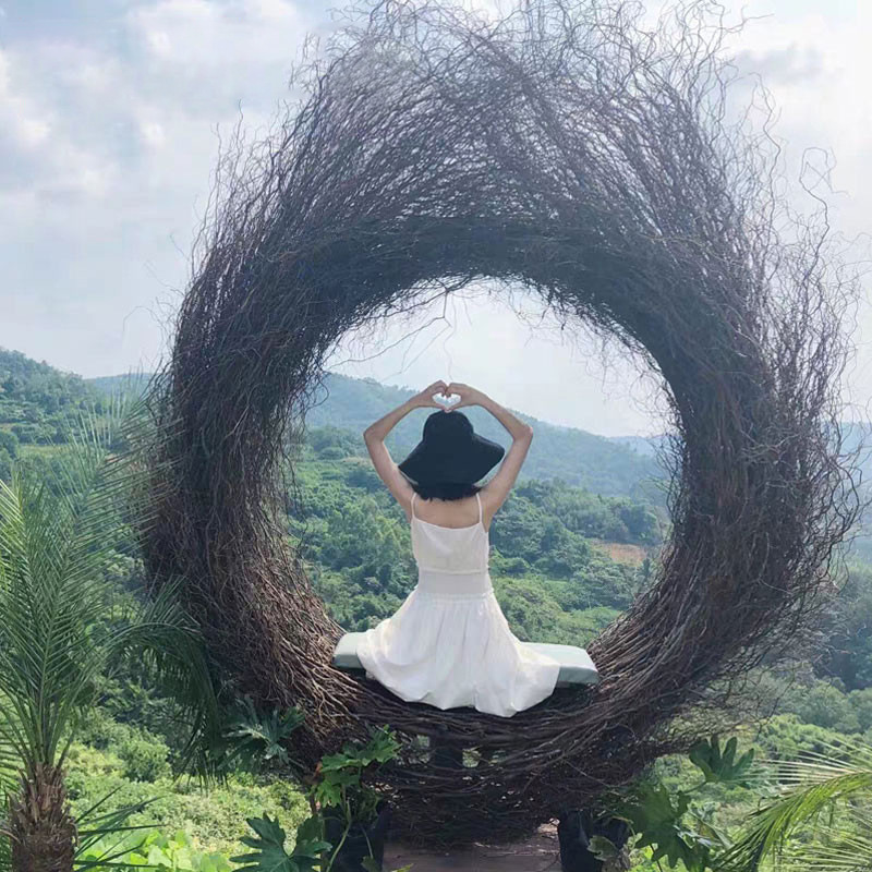 网红巴厘岛鸟巢景区婚纱拍照创意秋千两用鸟巢吊椅民宿藤编织吊篮