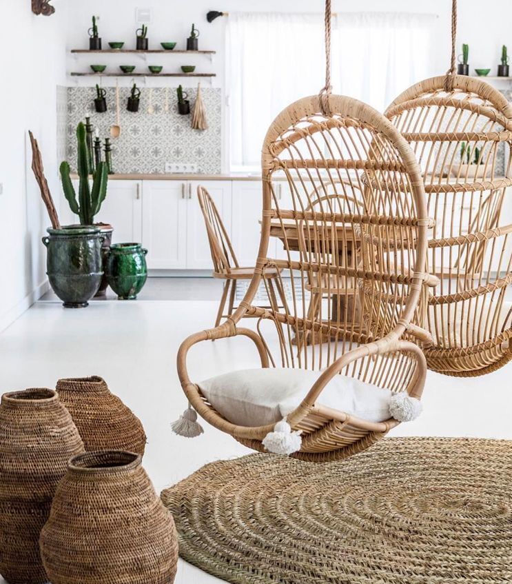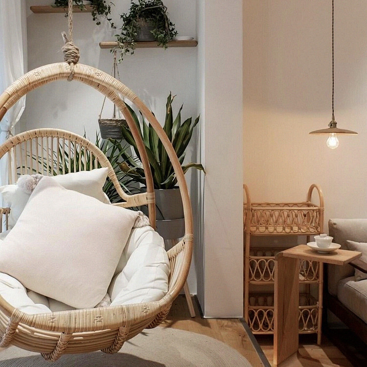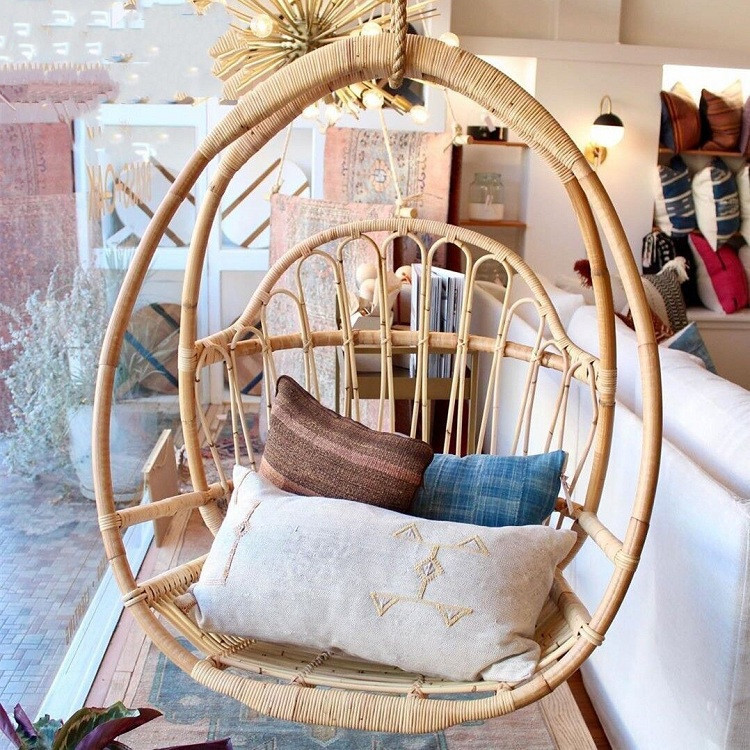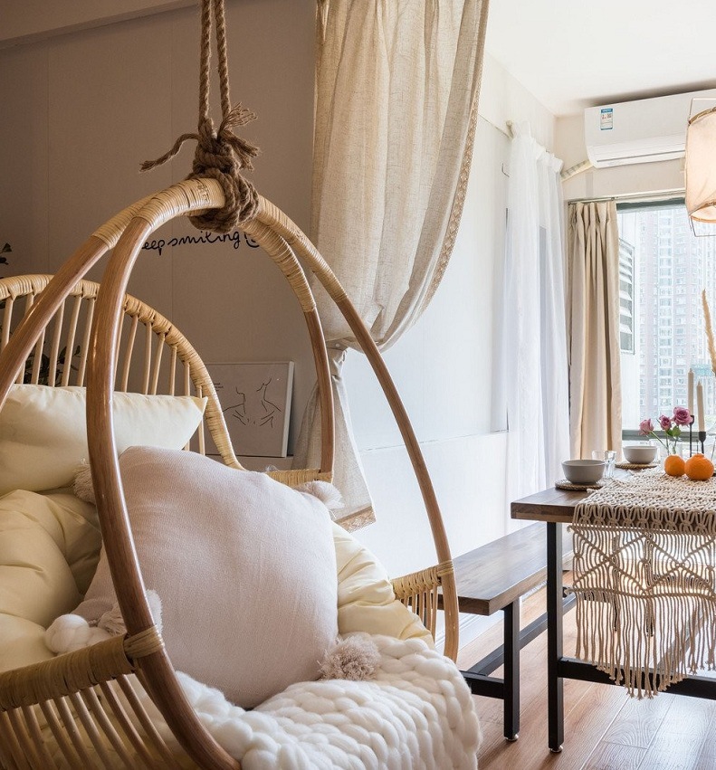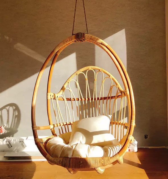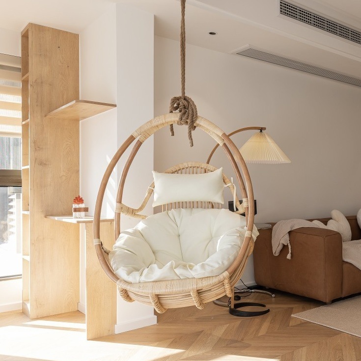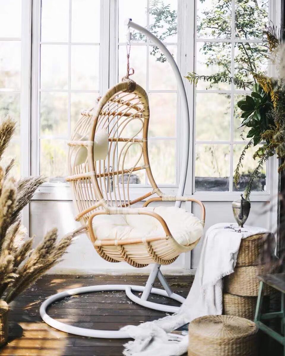 阳台吊篮藤椅北欧简约悬挂吊椅室内秋千手工编织真藤鸟巢摇椅网红