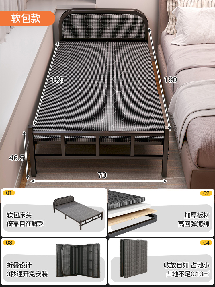 折叠床单人家用简易床陪护1.2米加固午休小床出租屋成人硬板铁床