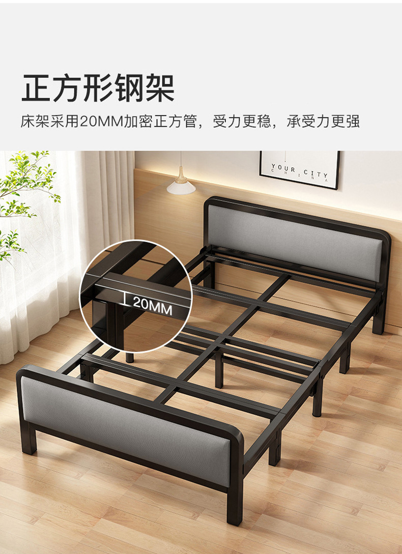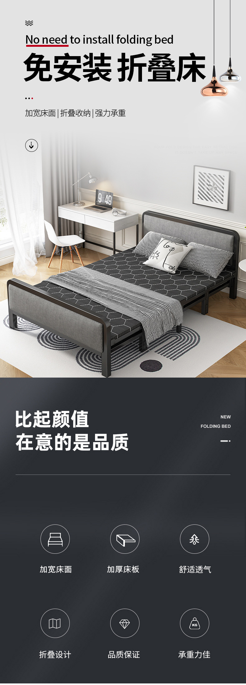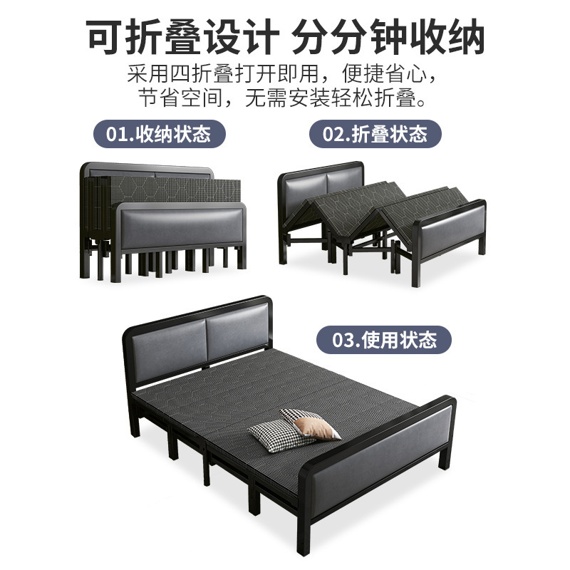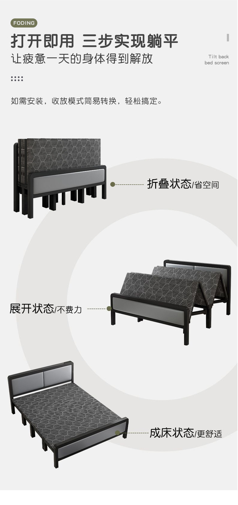 跨境折叠床 双人 四折床 家用1.2米单人床免安装午睡床结实陪护床