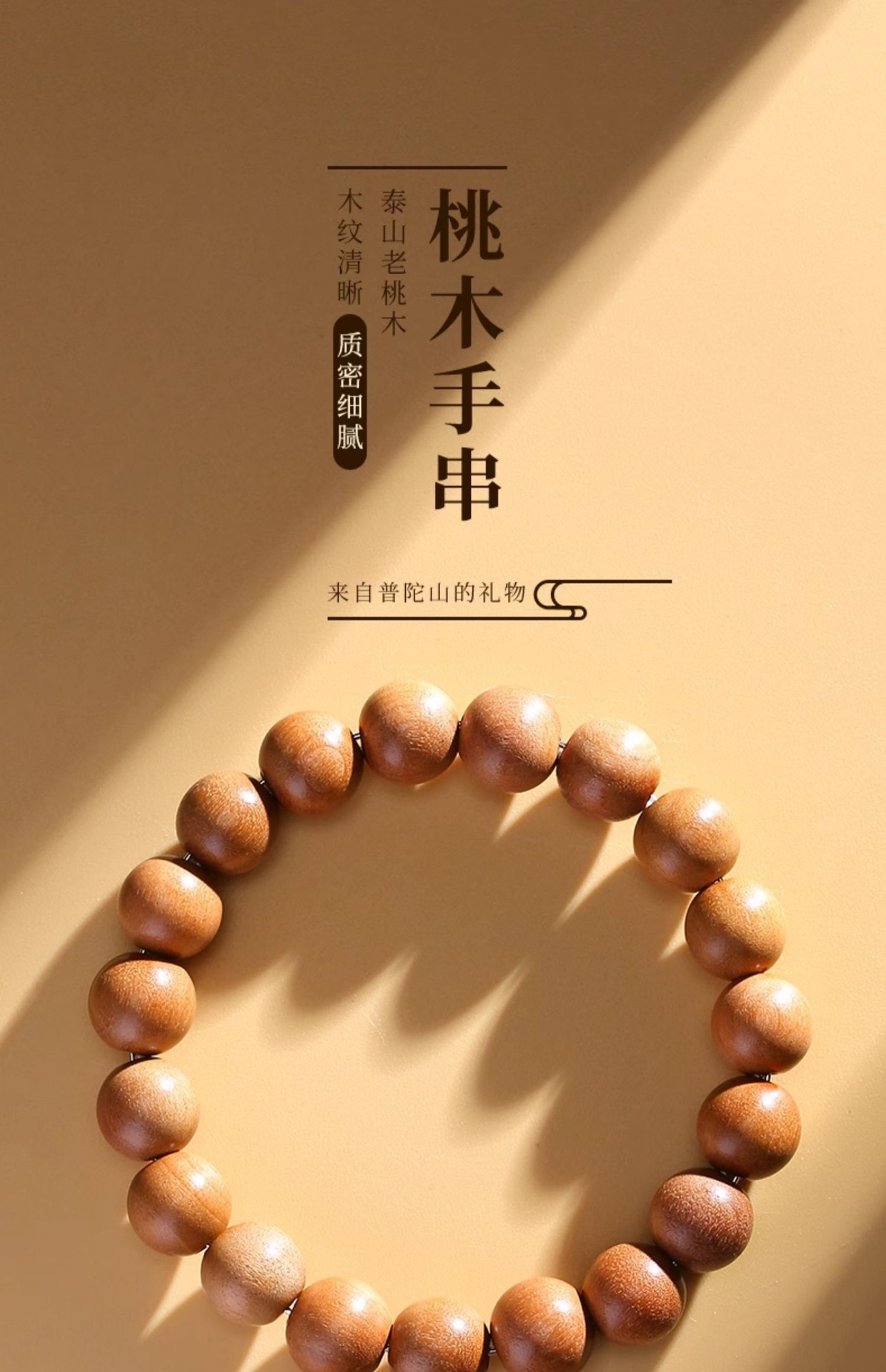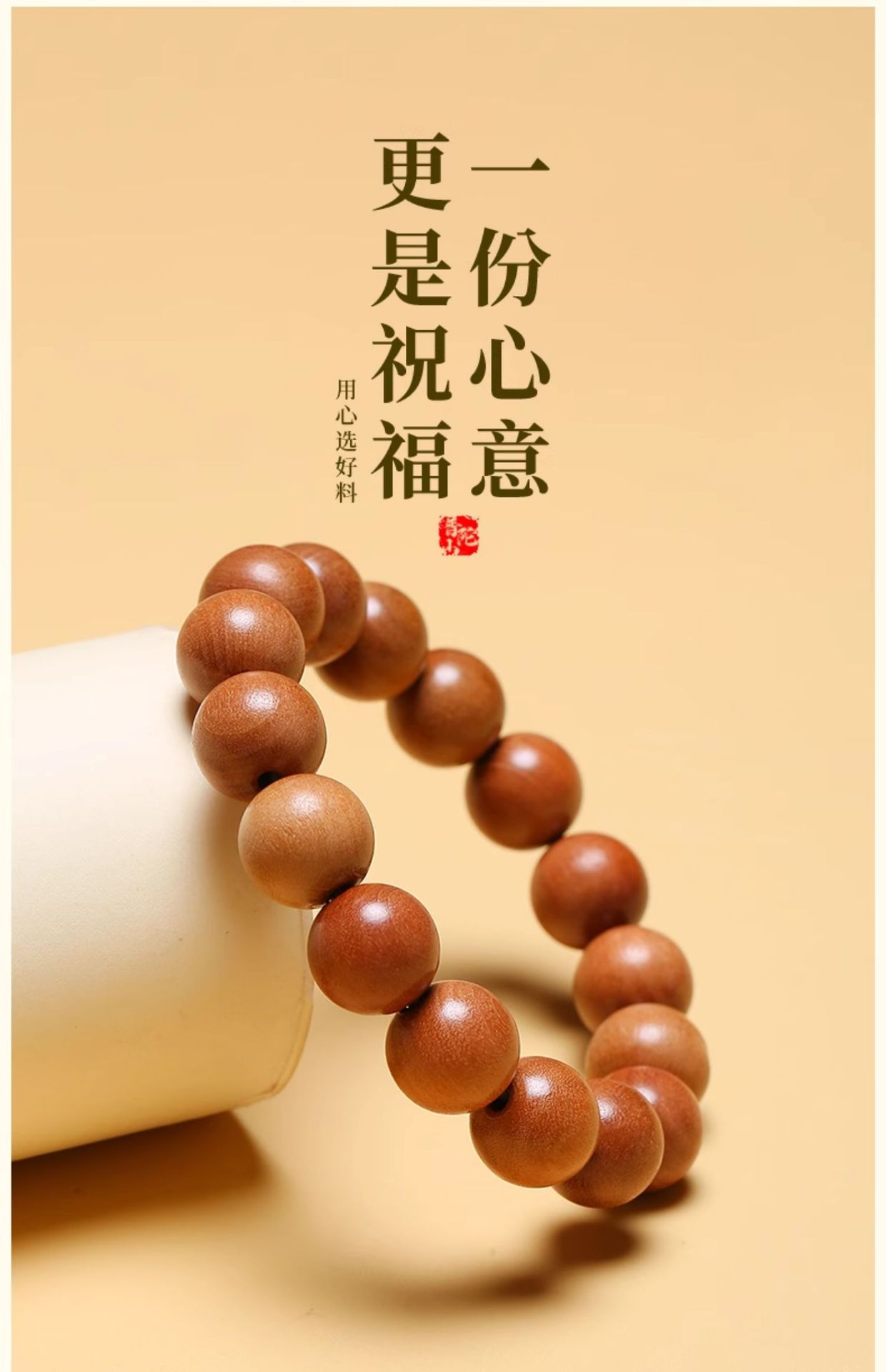 中惠宜 老桃木手串护身新中式手链本命年佛珠单圈6-12mm首饰批发