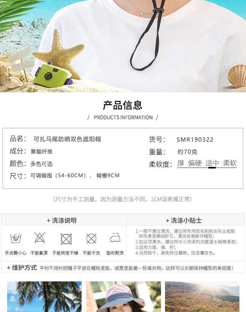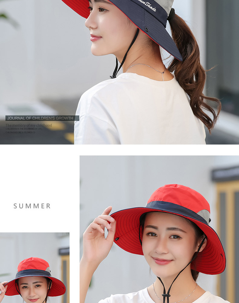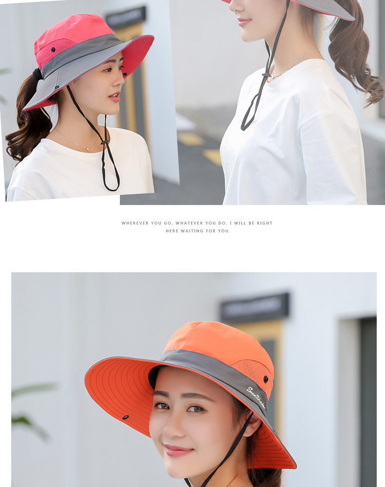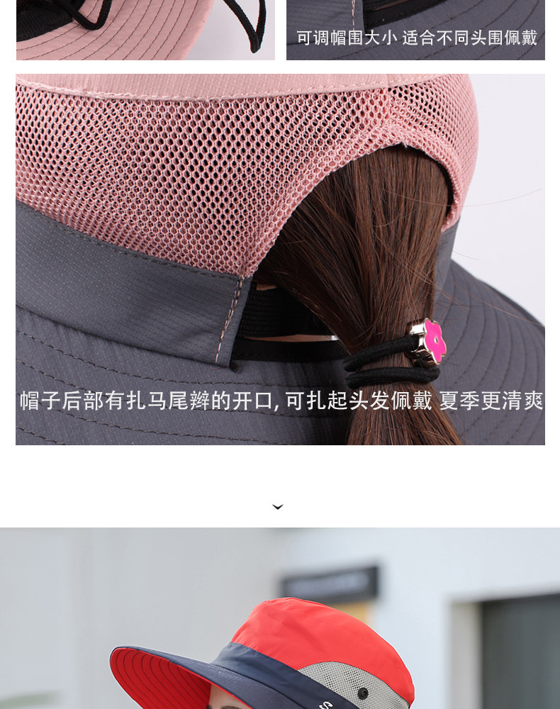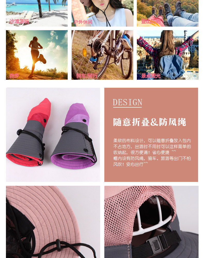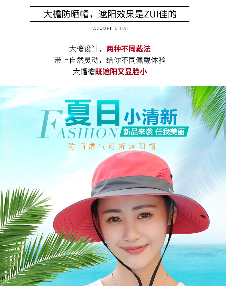 帽子女户外渔夫帽夏透气遮阳盆帽旅游太阳帽骑车防晒海边沙滩护脸