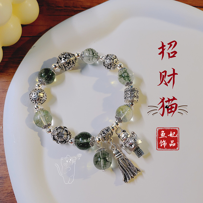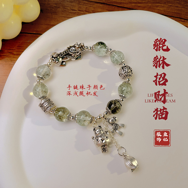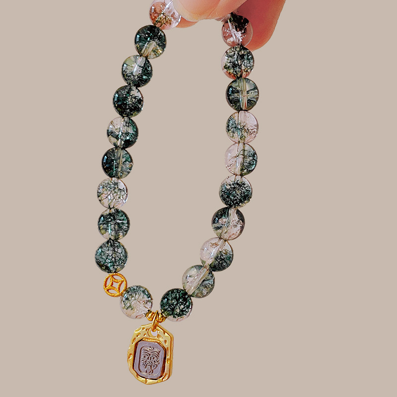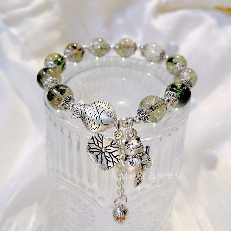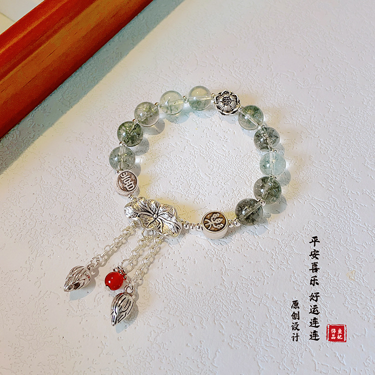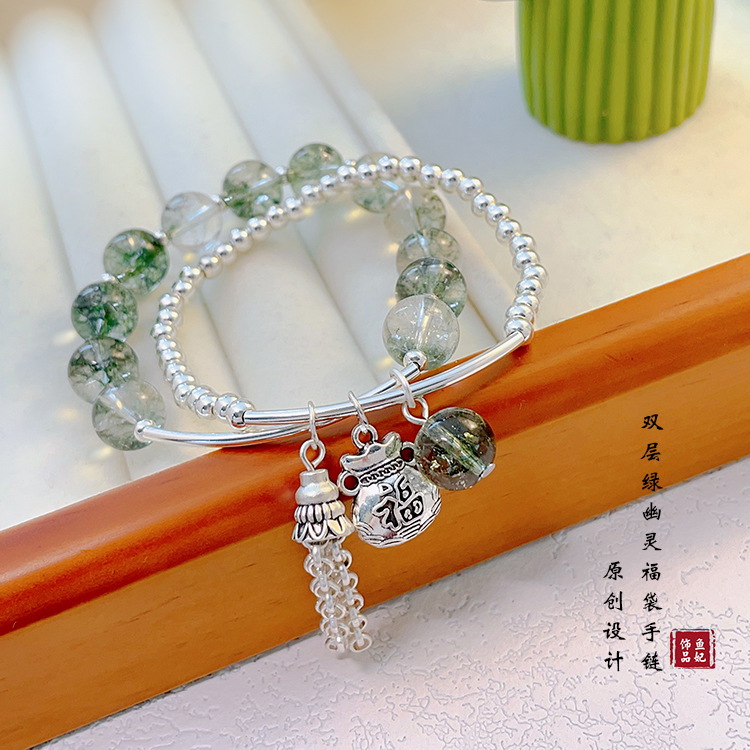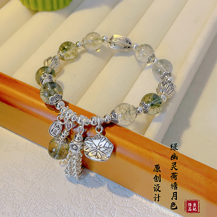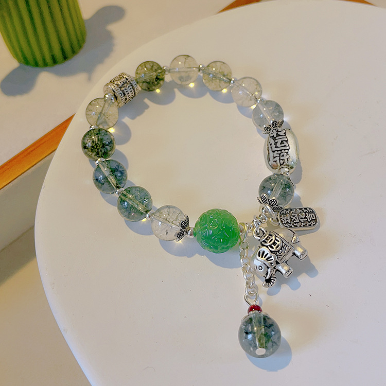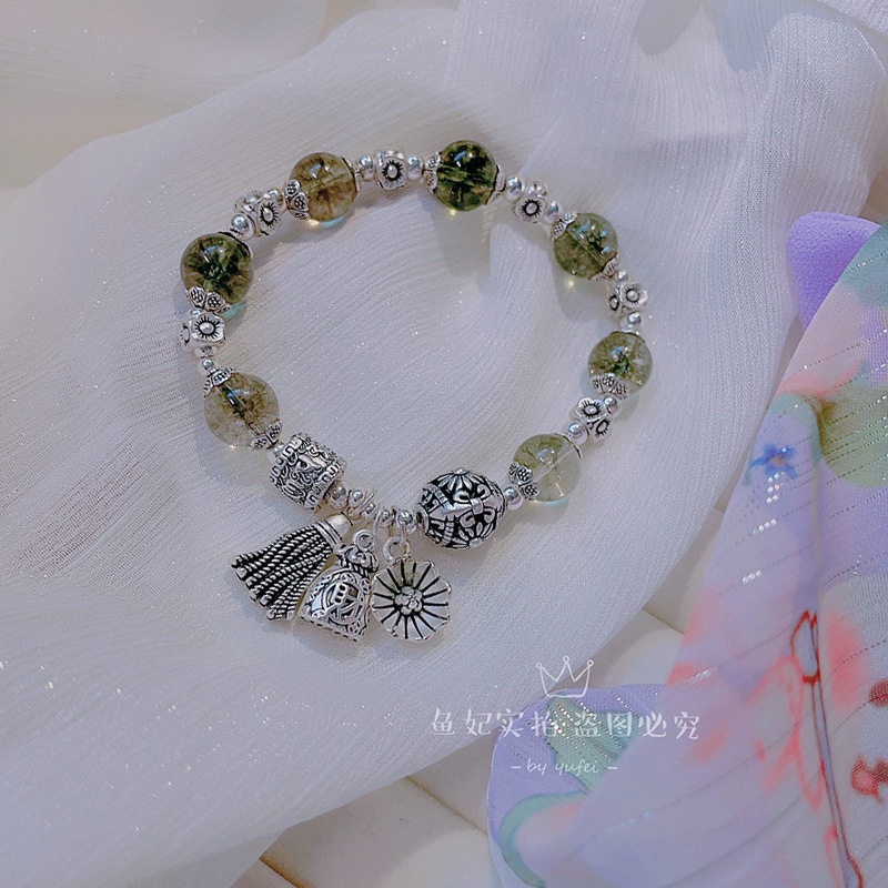 复古风民族风绿幽灵手链女新中式国风景区佛珠文玩藏银手串饰品
