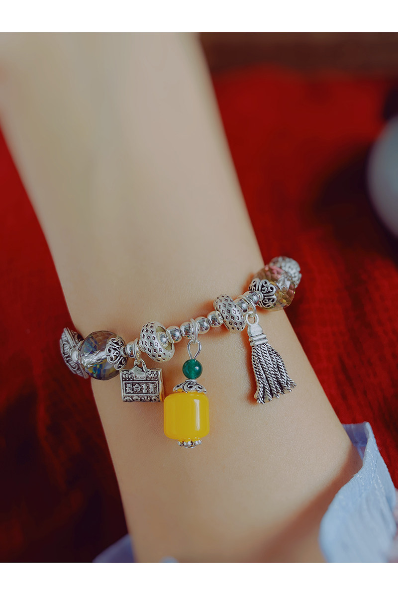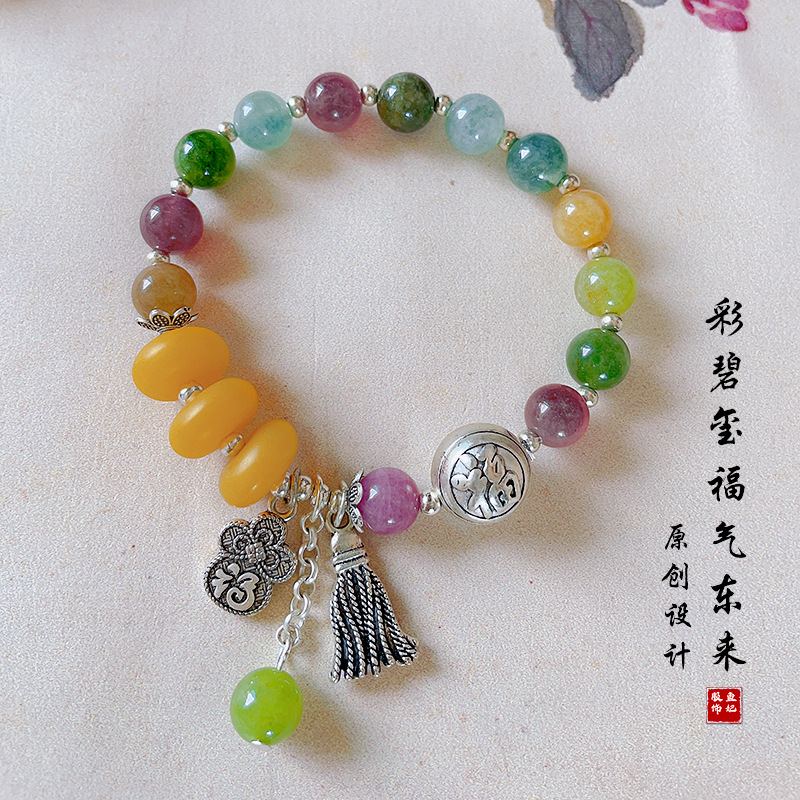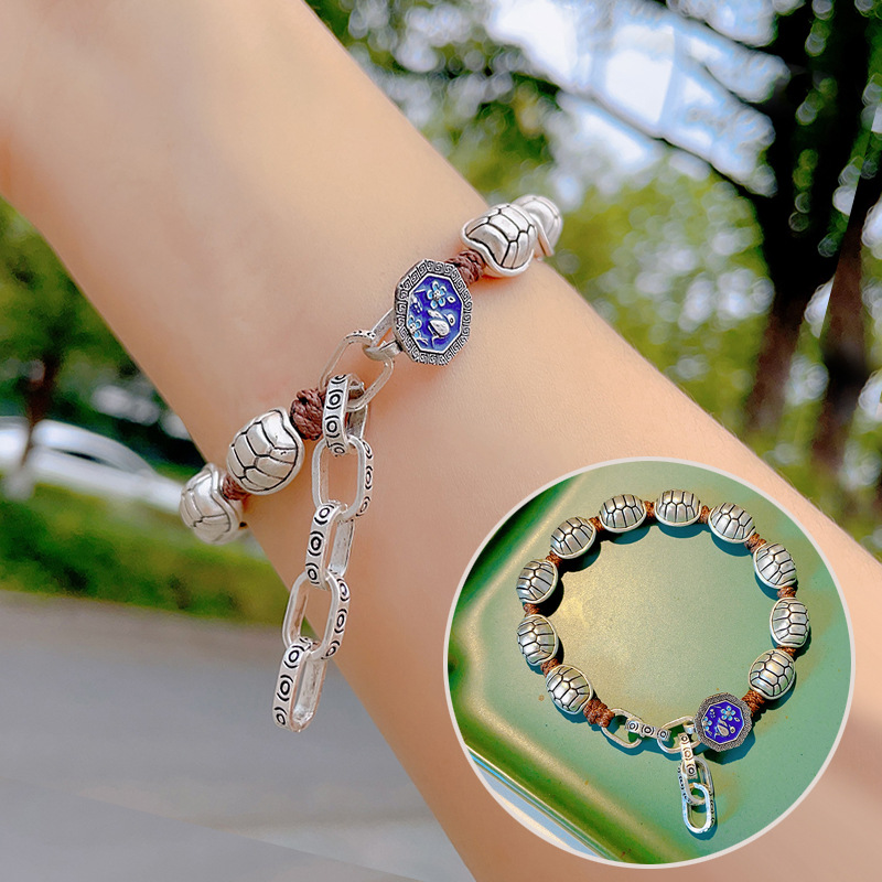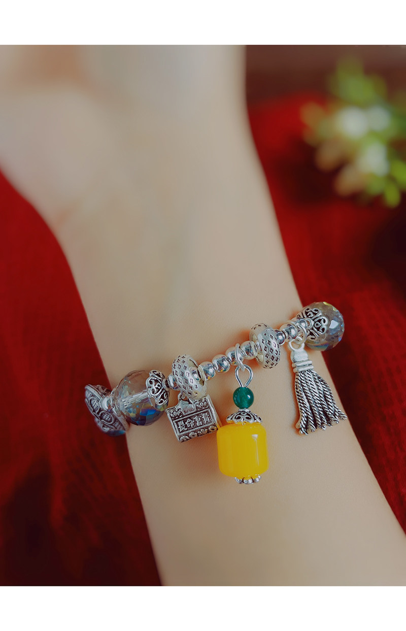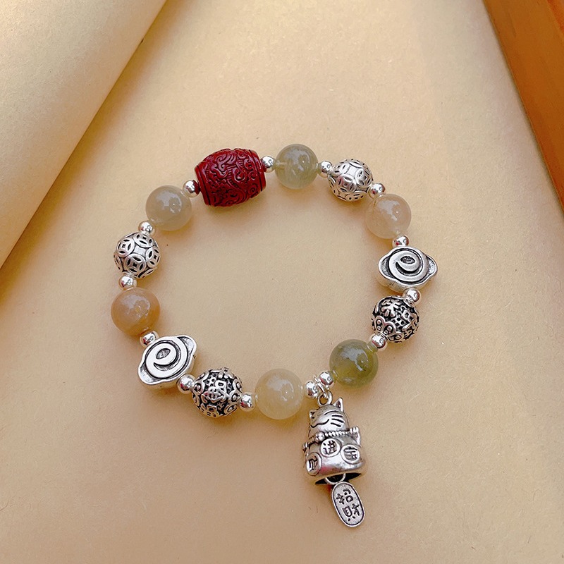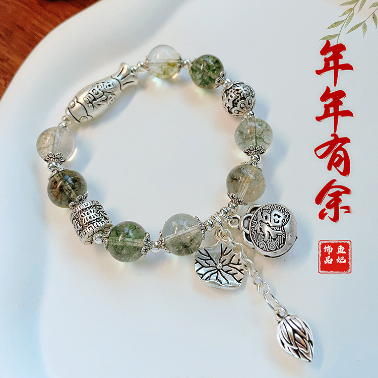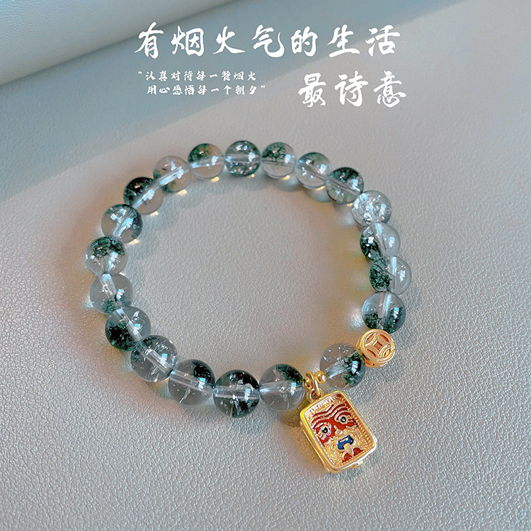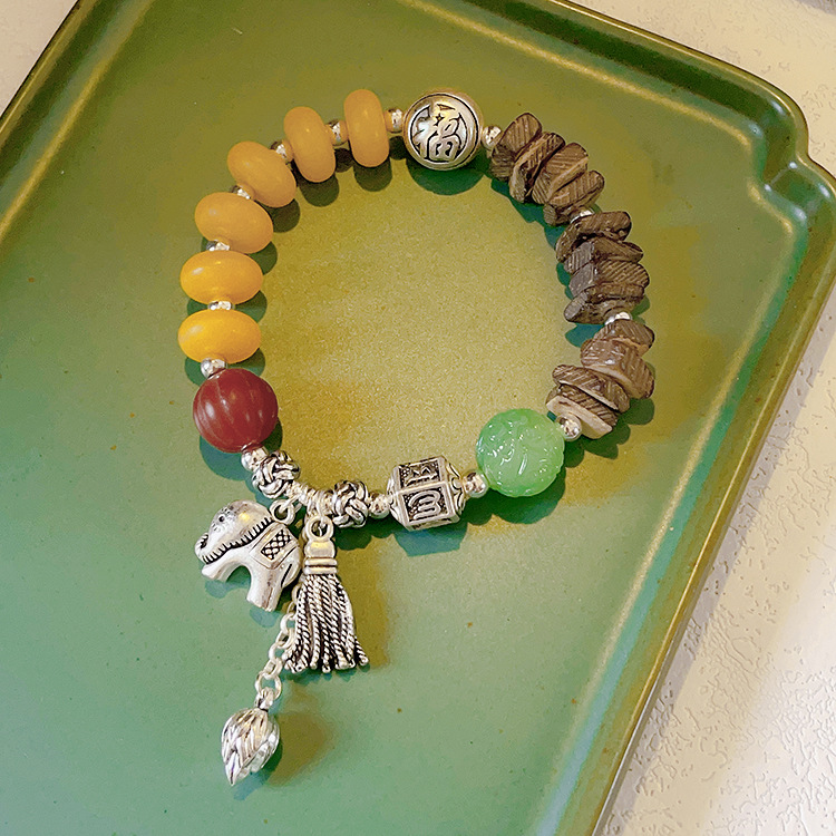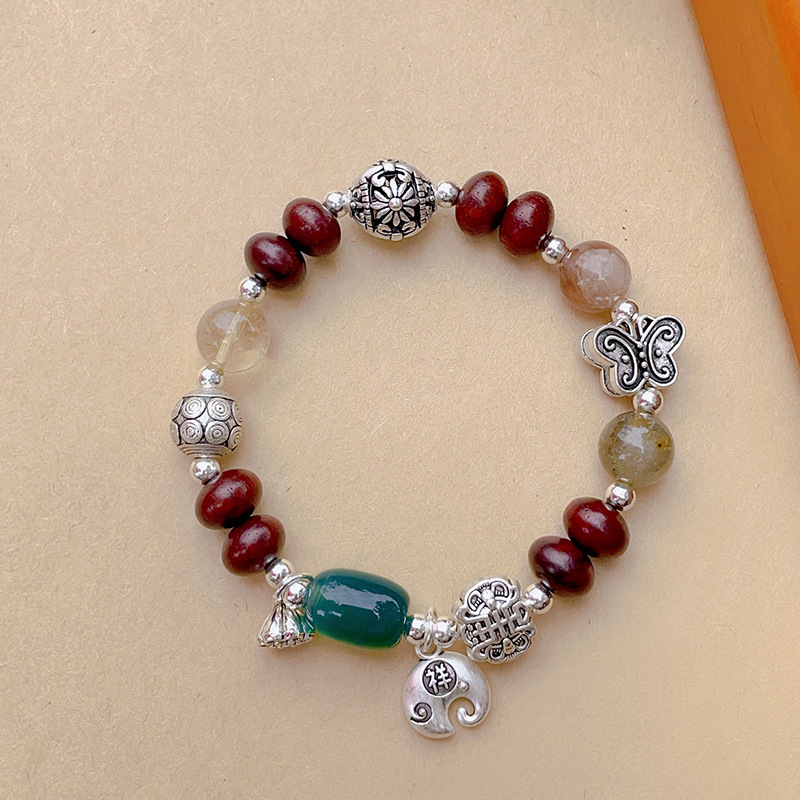 复古风民族风绿幽灵手链女新中式国风景区佛珠文玩藏银手串饰品