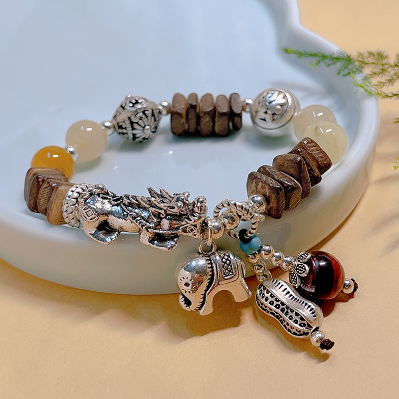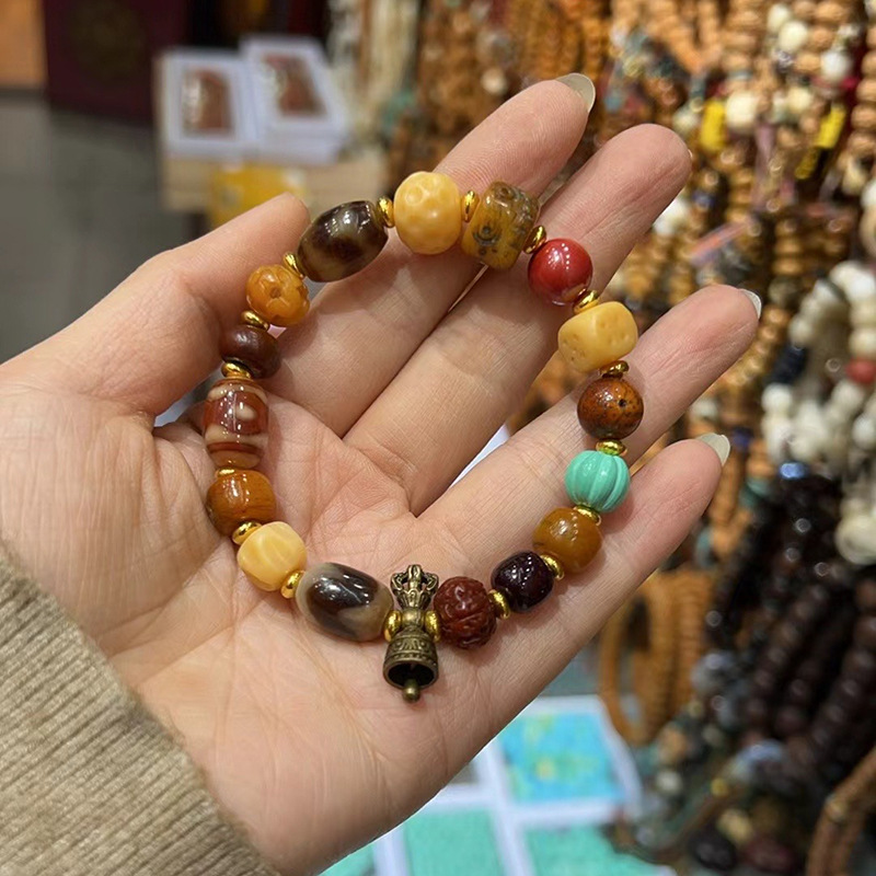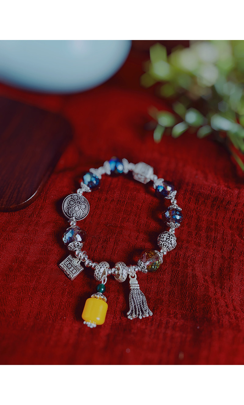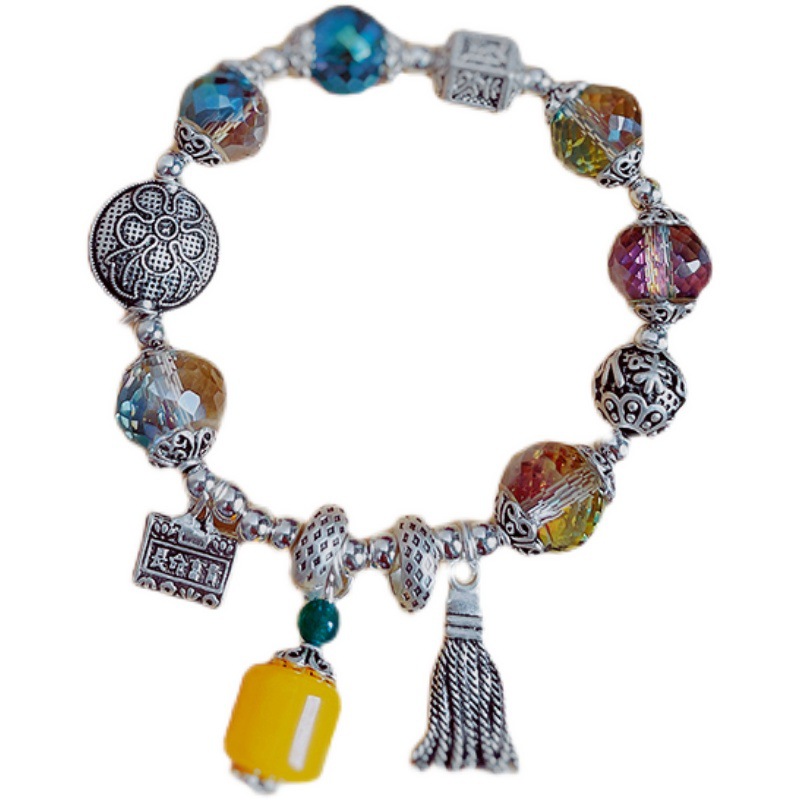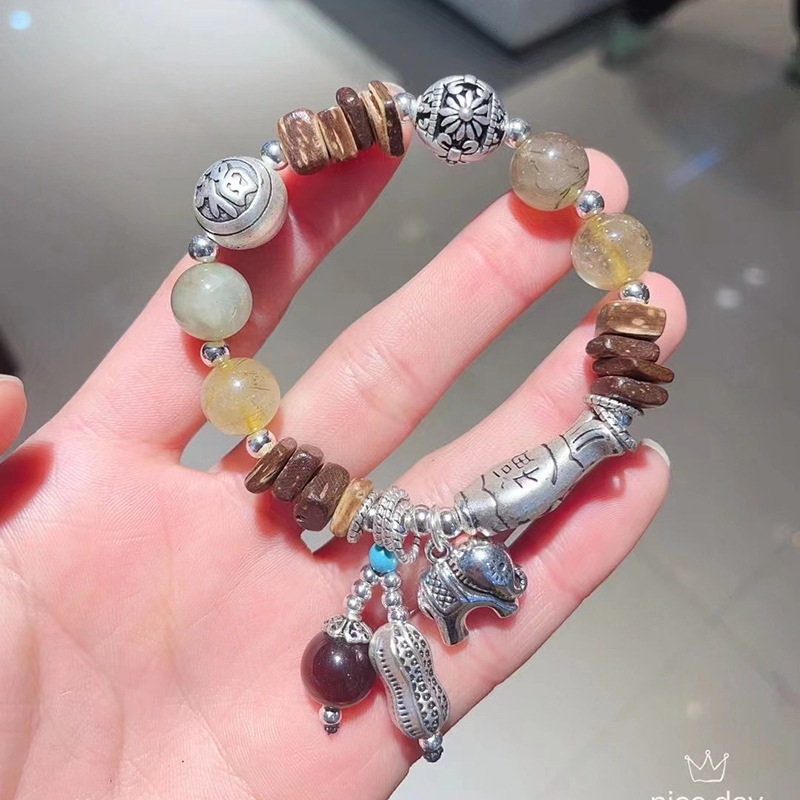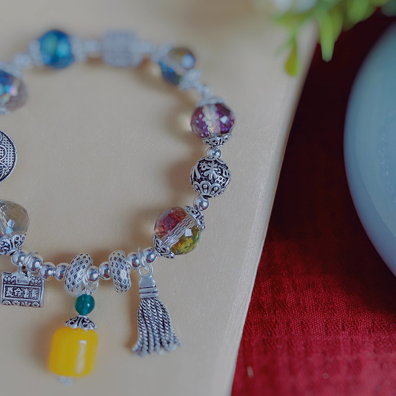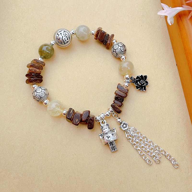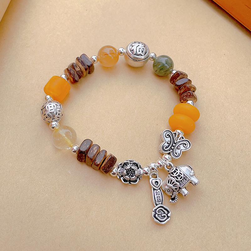 复古风民族风绿幽灵手链女新中式国风景区佛珠文玩藏银手串饰品