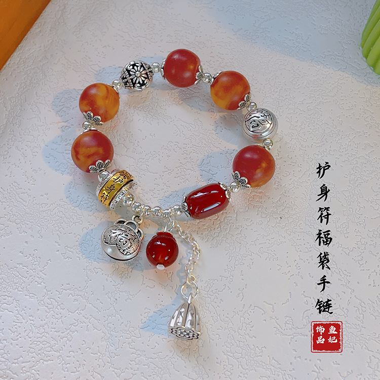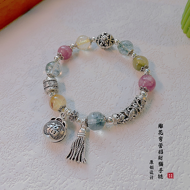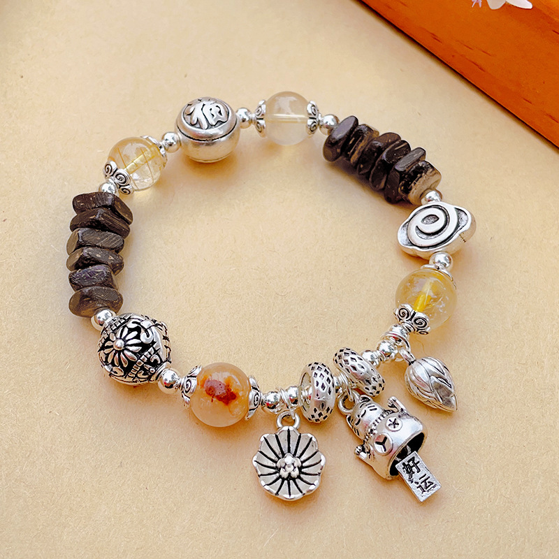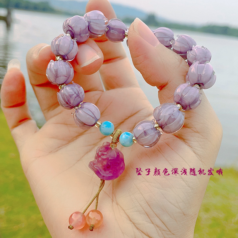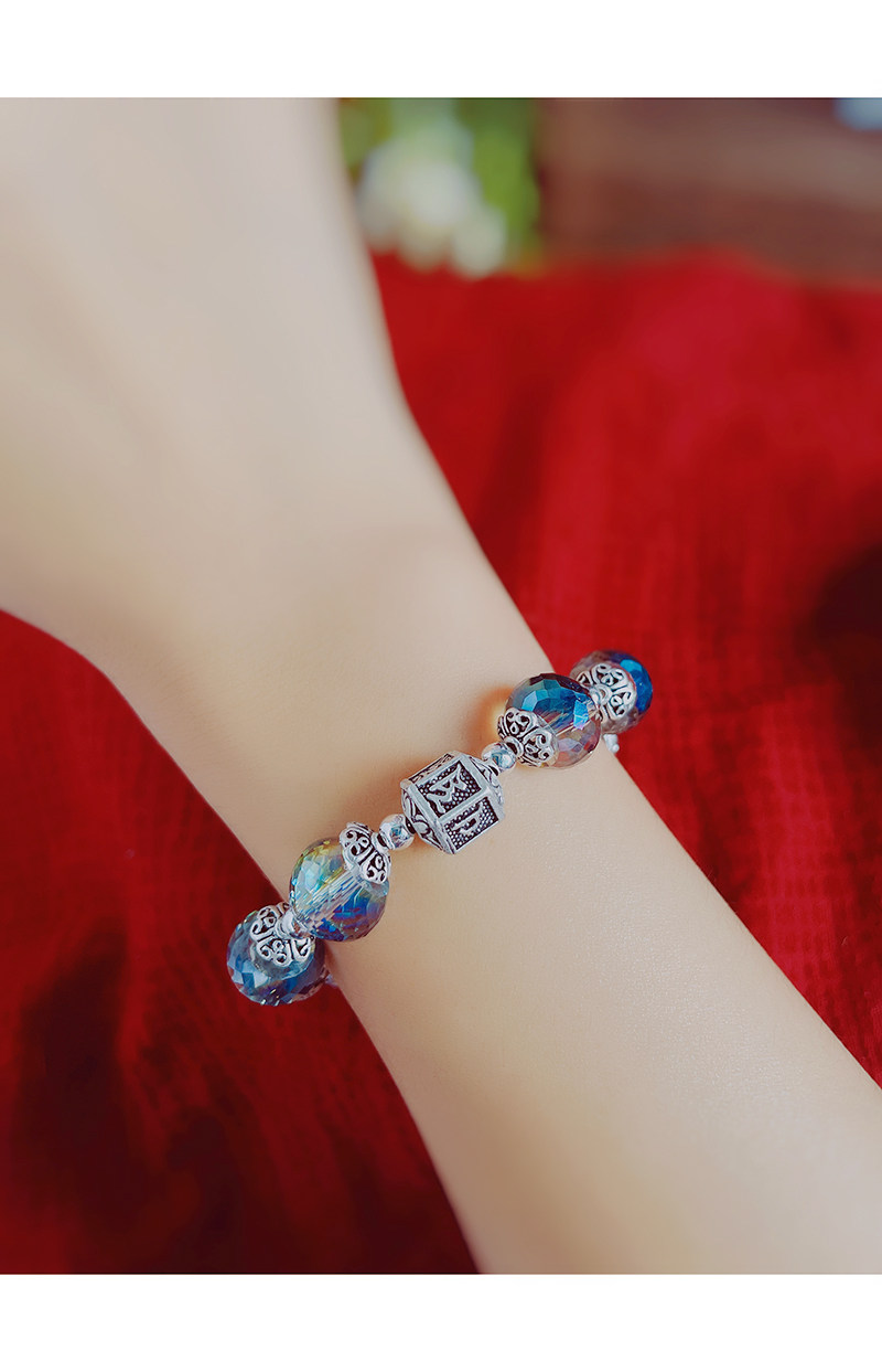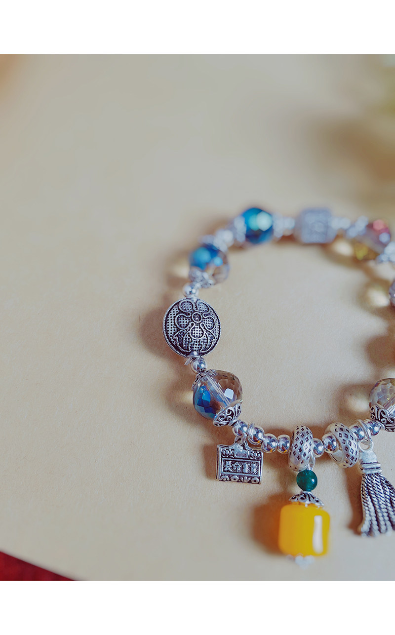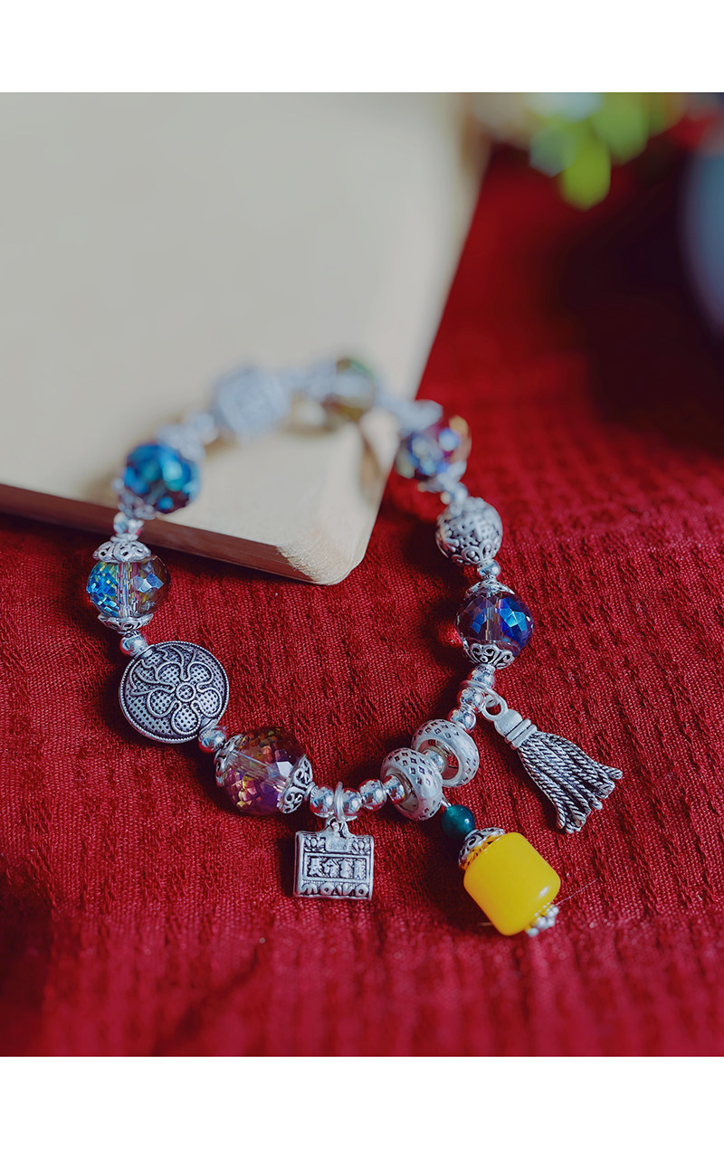 复古风民族风绿幽灵手链女新中式国风景区佛珠文玩藏银手串饰品