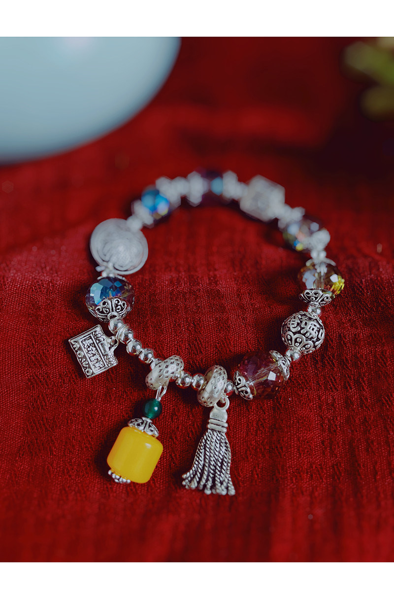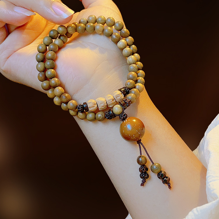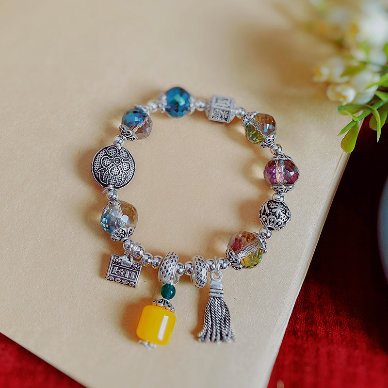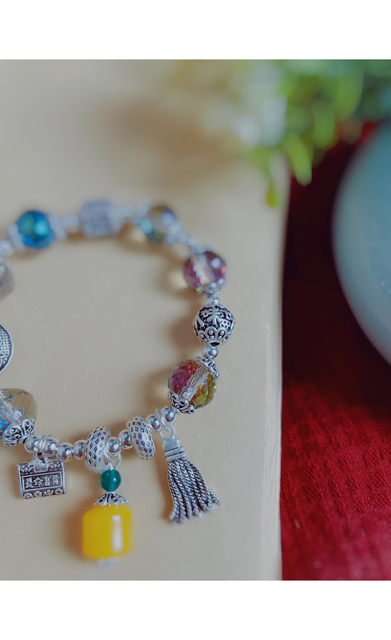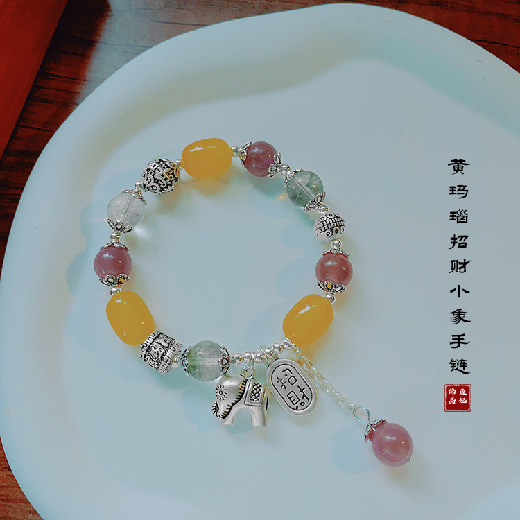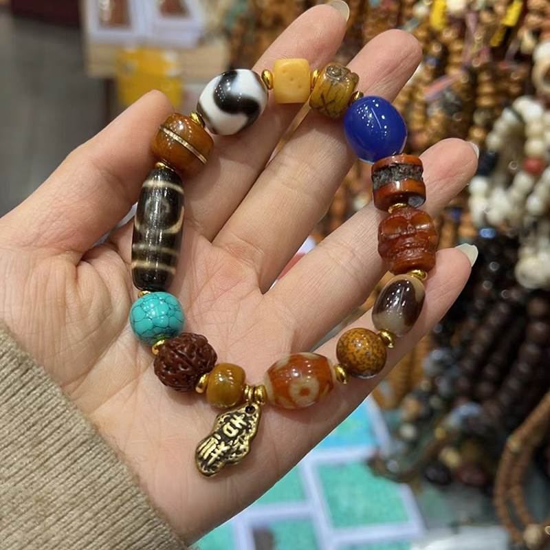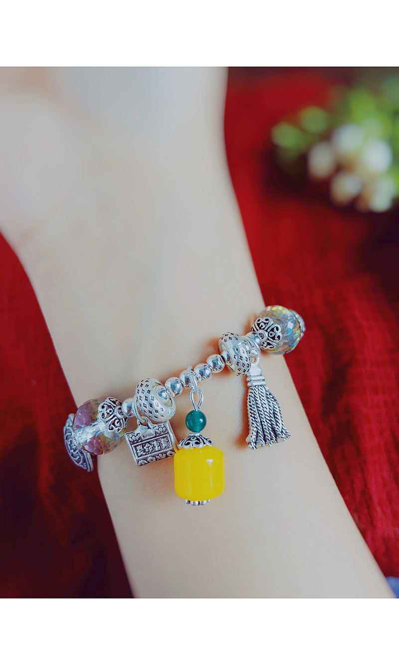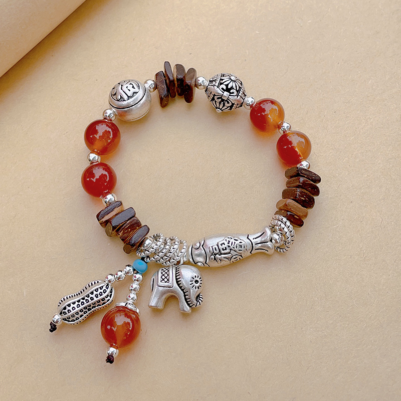 复古风民族风绿幽灵手链女新中式国风景区佛珠文玩藏银手串饰品