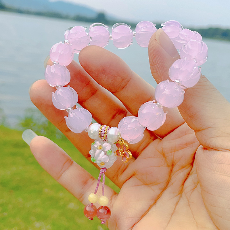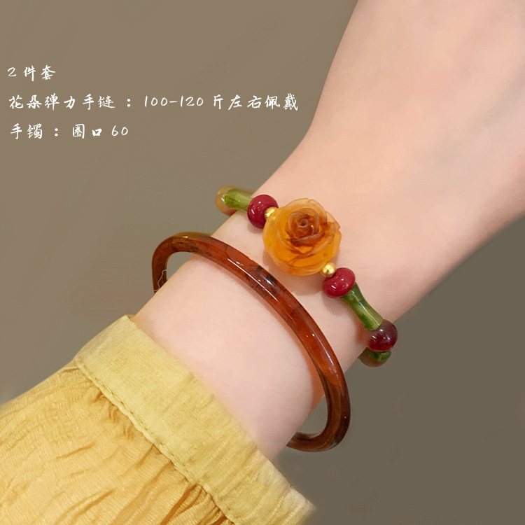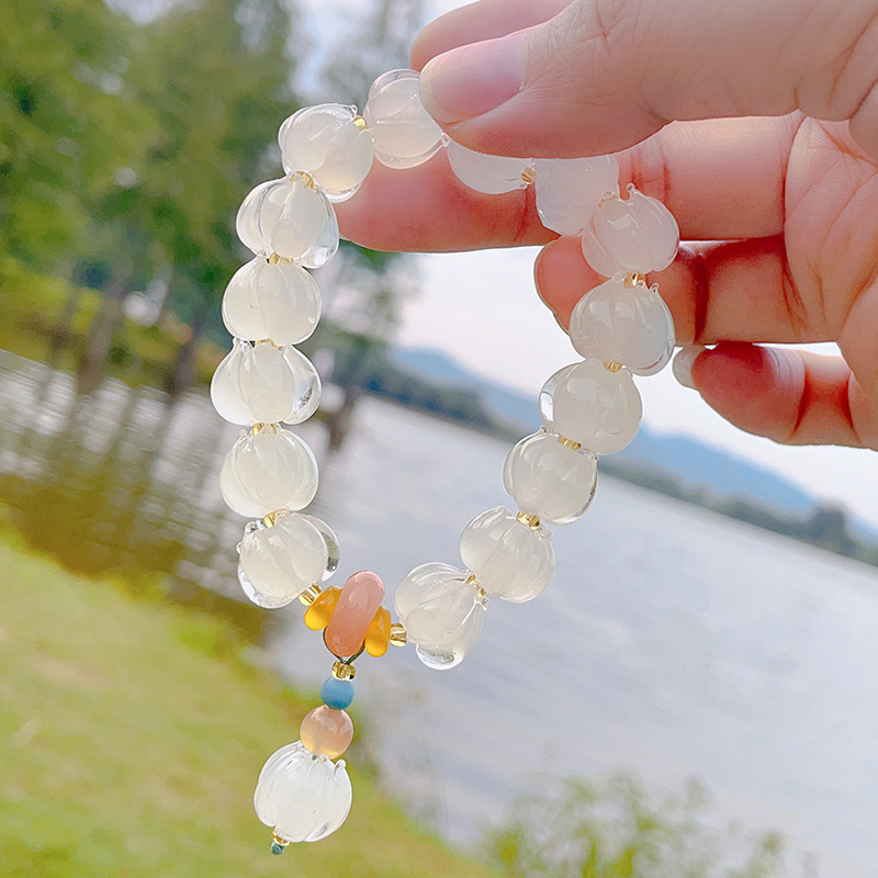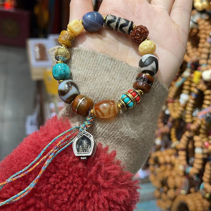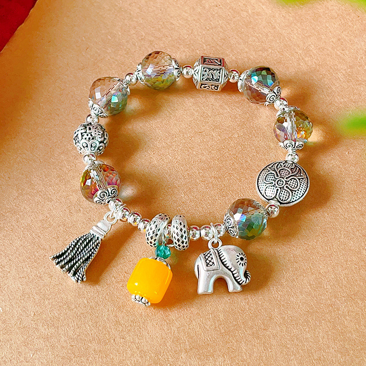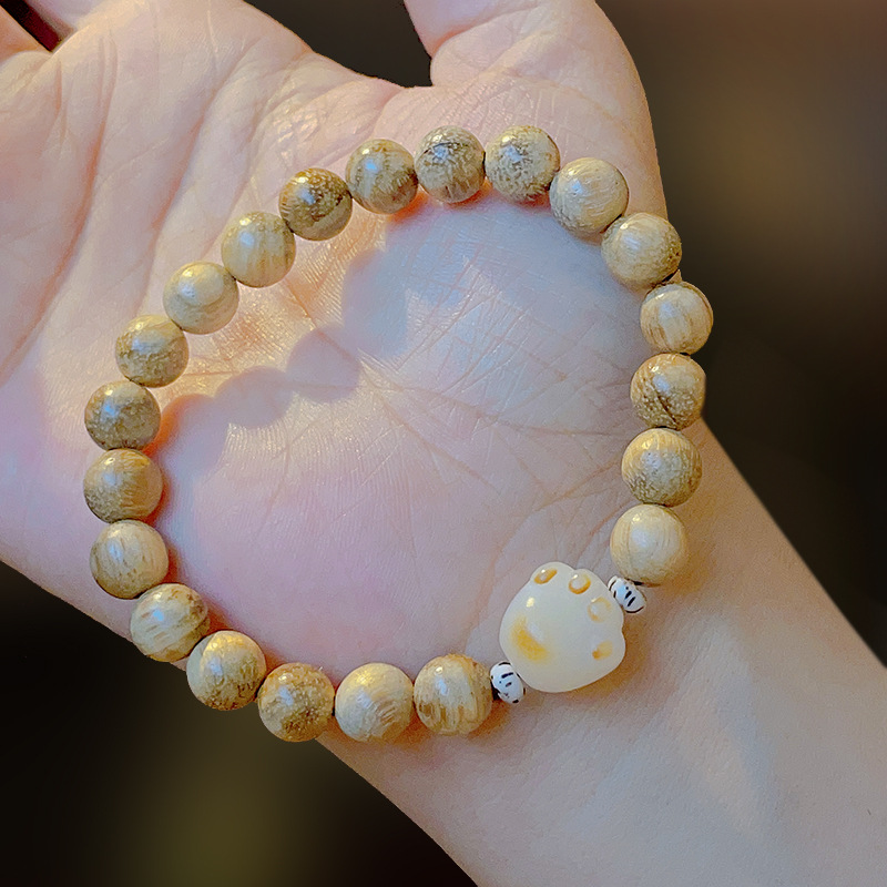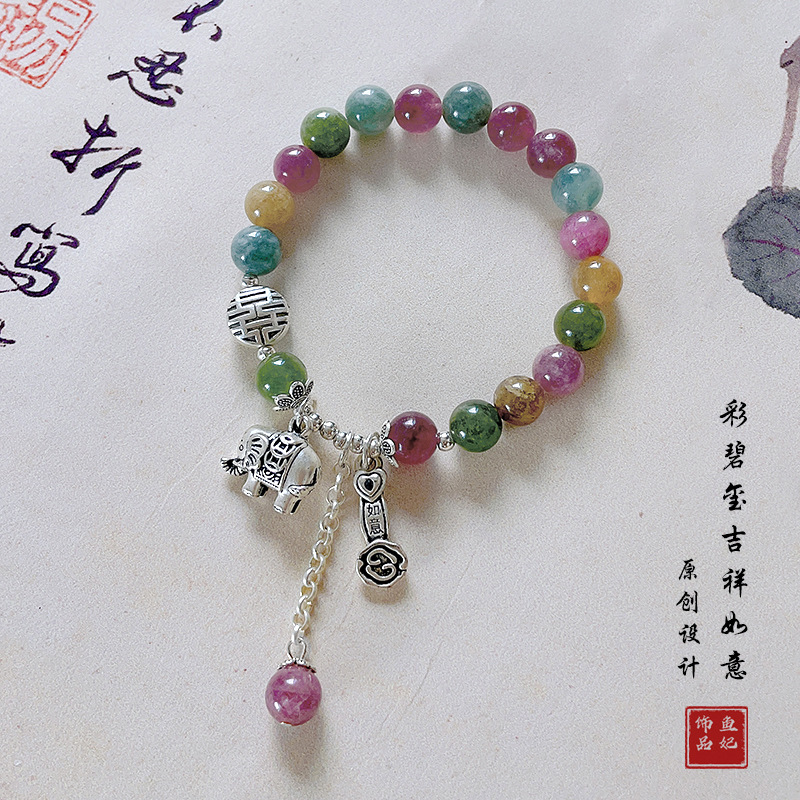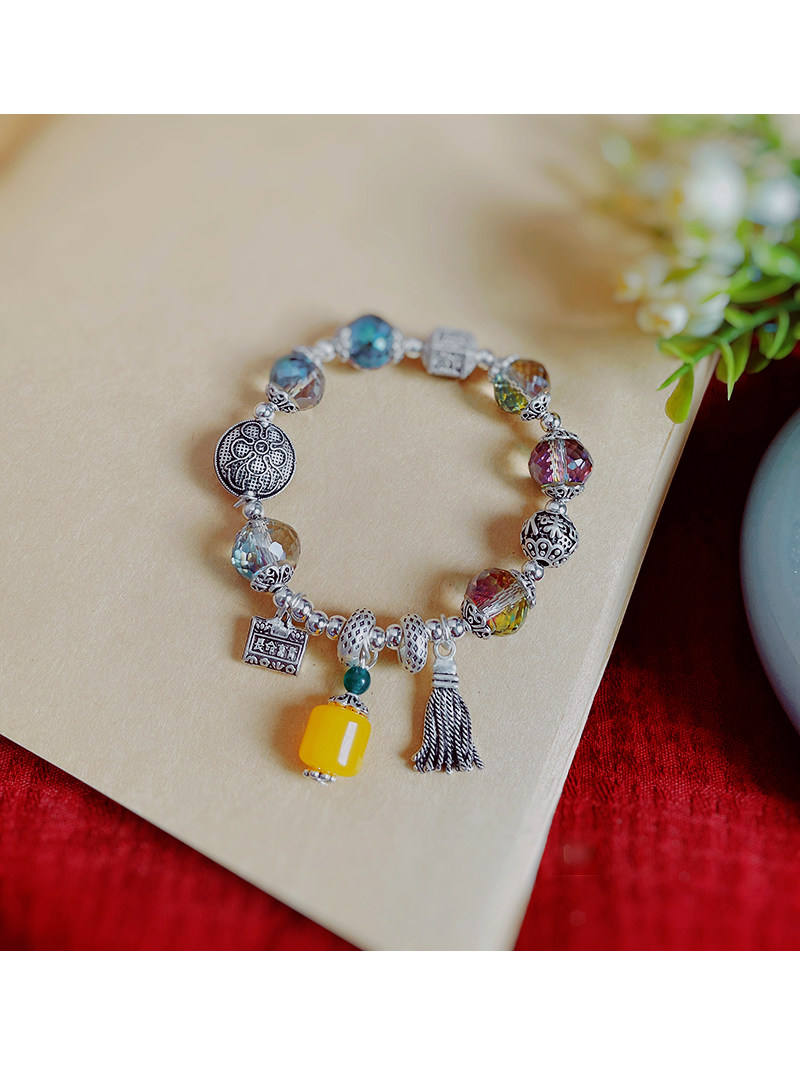 复古风民族风绿幽灵手链女新中式国风景区佛珠文玩藏银手串饰品