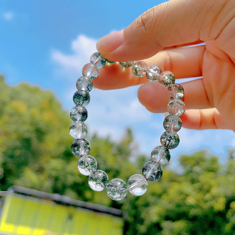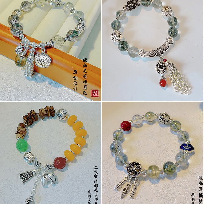 绿幽灵是合成的哦 不是太天然的 发晶和草莓晶玛瑙都是天然的 具体材质可以咨询在线客服