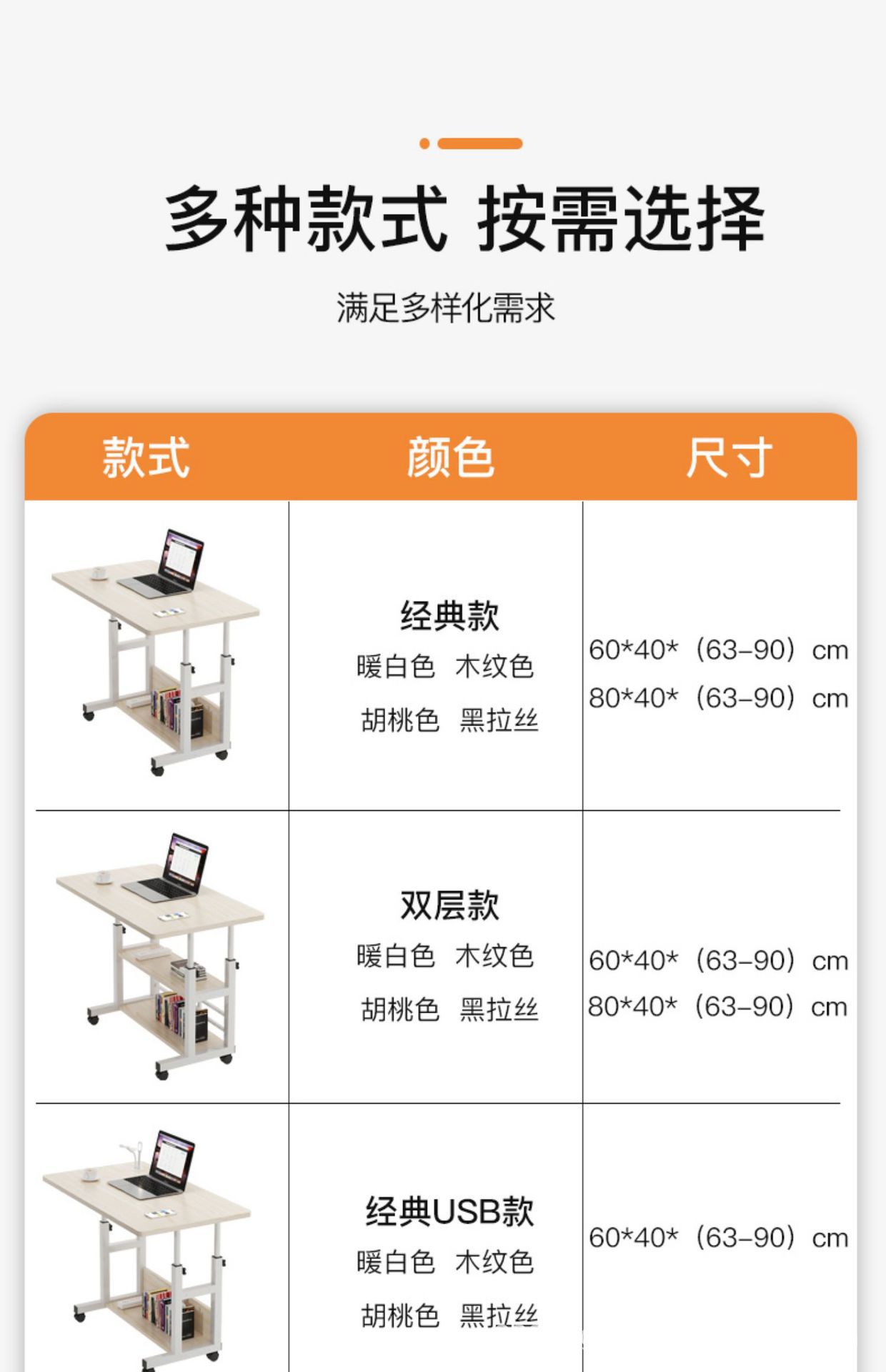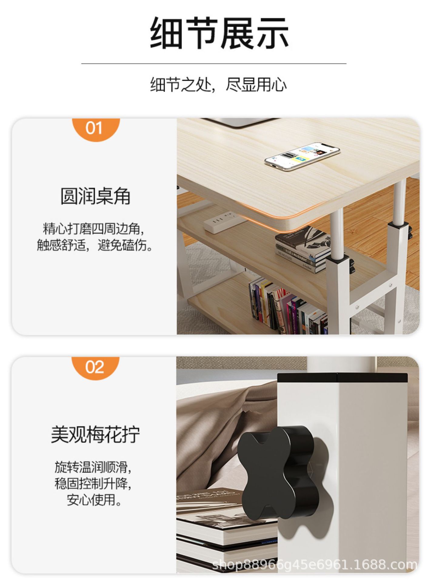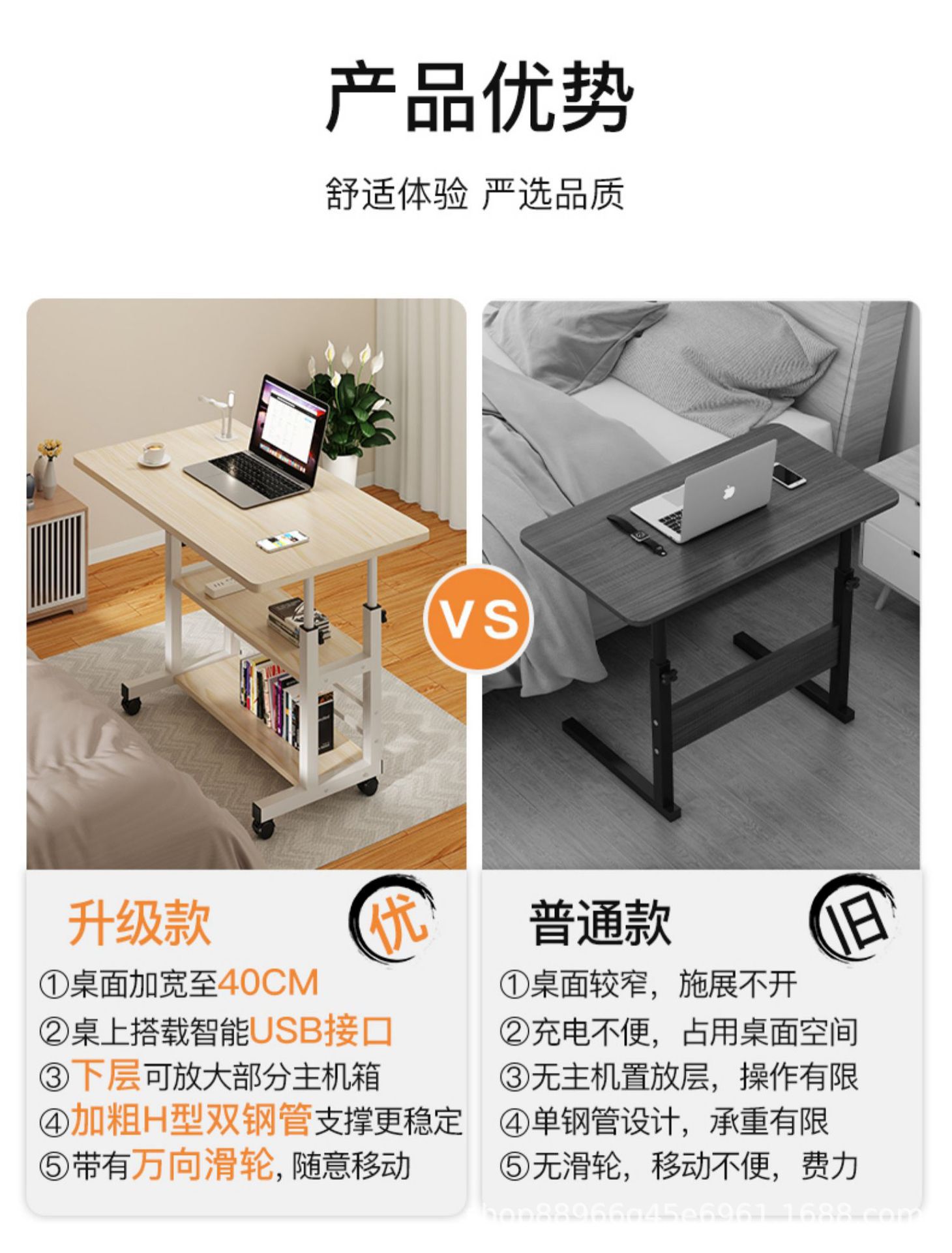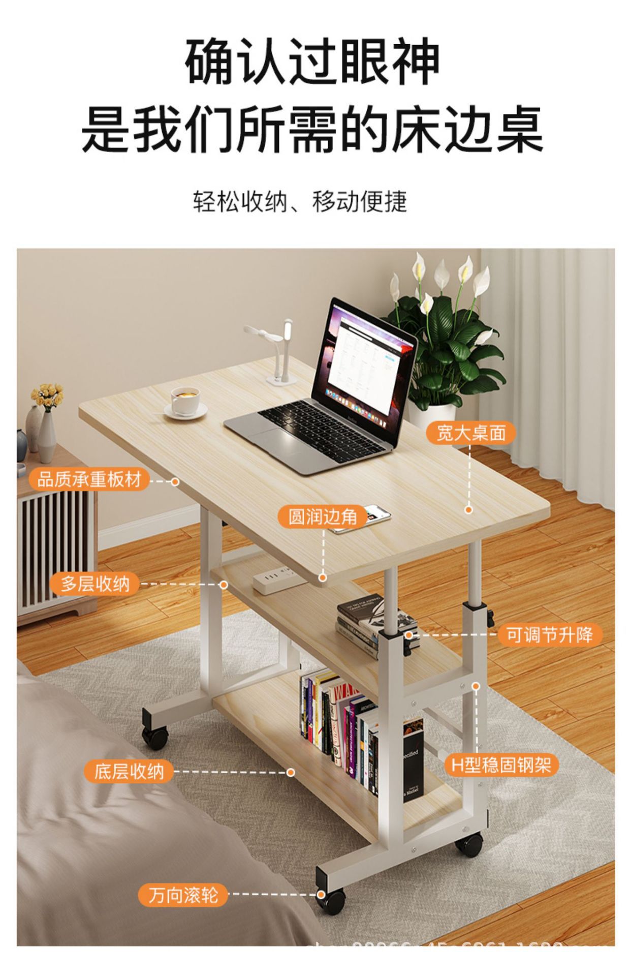 床边升降可移动桌学生书桌置物架笔记本电脑桌面支架收纳落地书桌