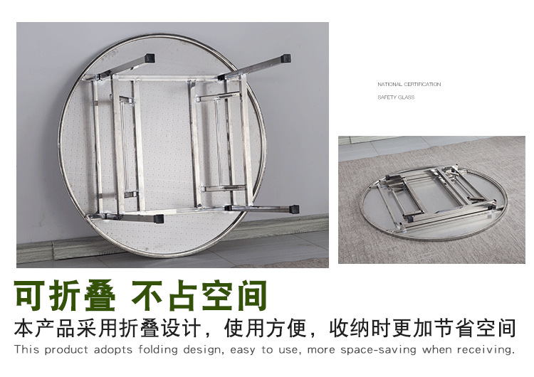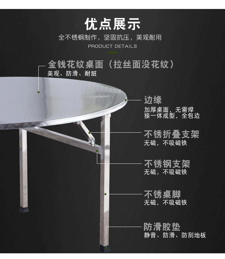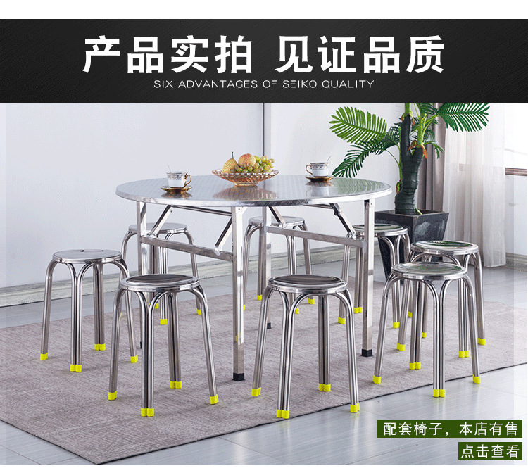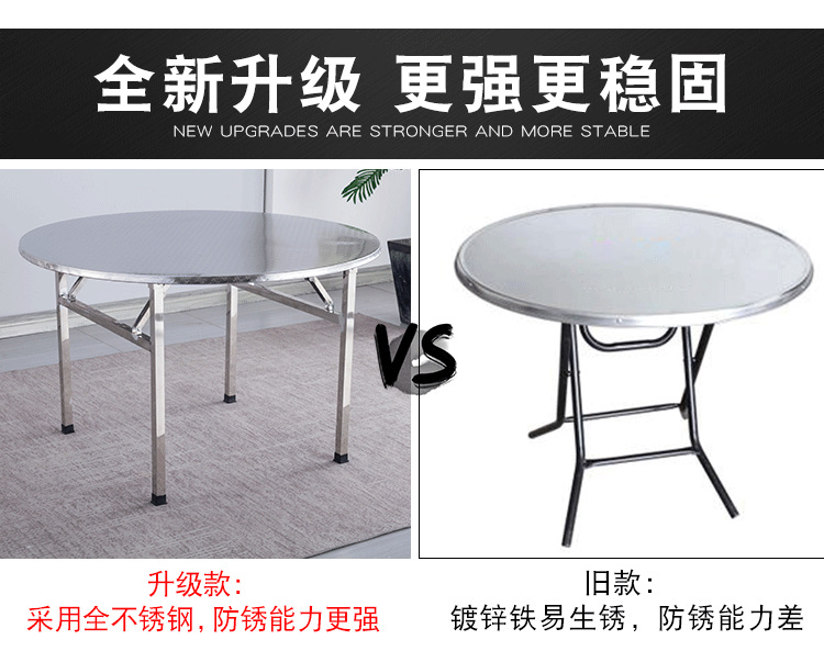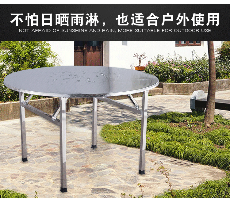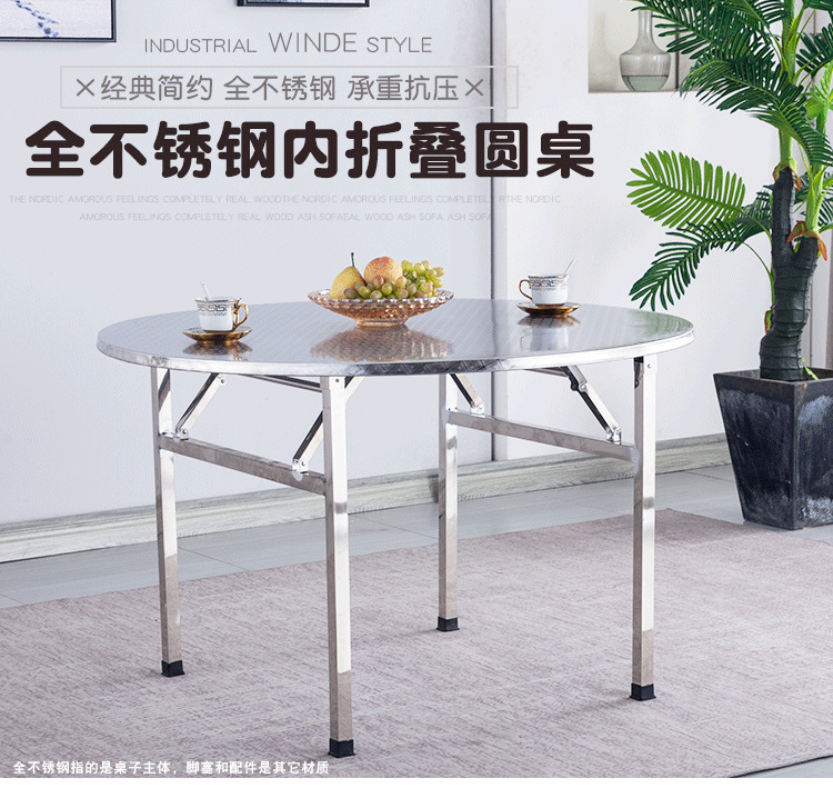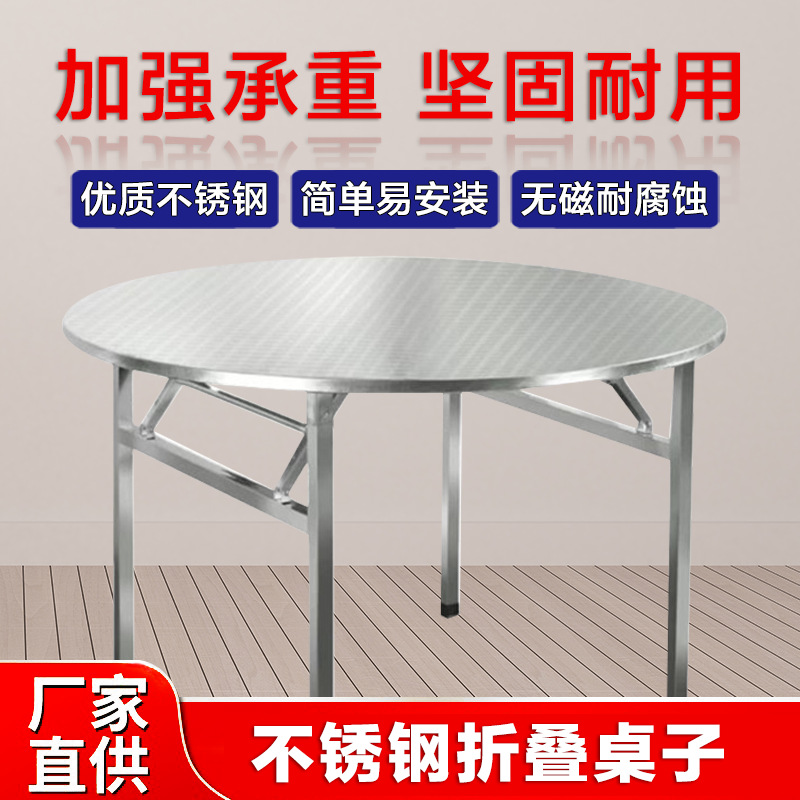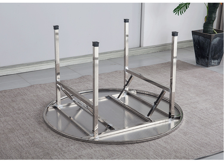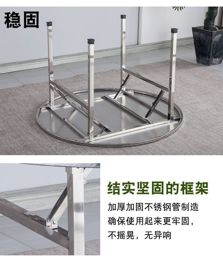 不锈钢折叠圆桌不锈钢圆桌转盘圆桌折叠餐桌外贸代发免费更改高度