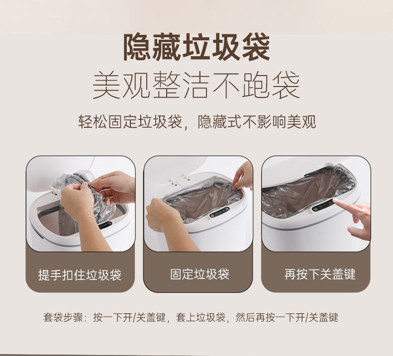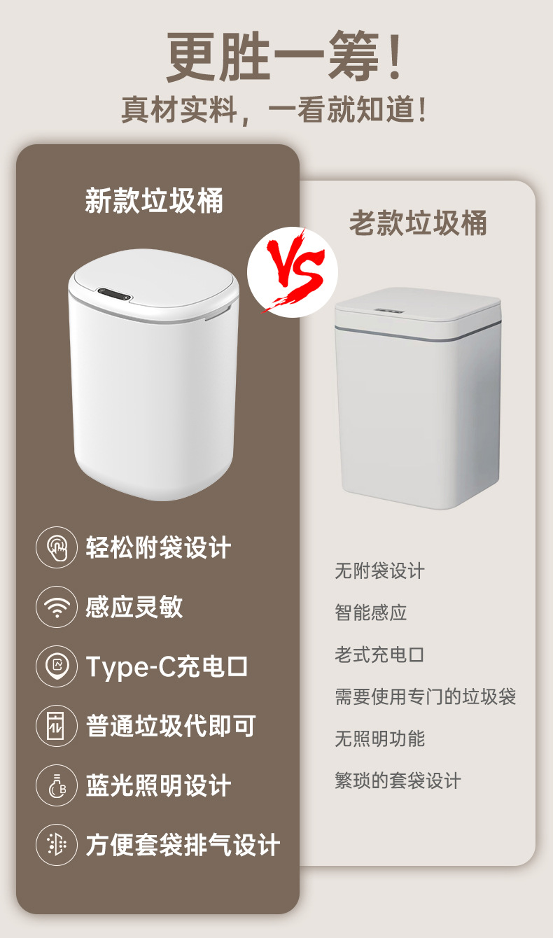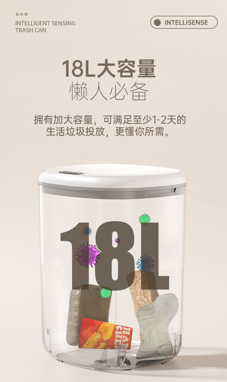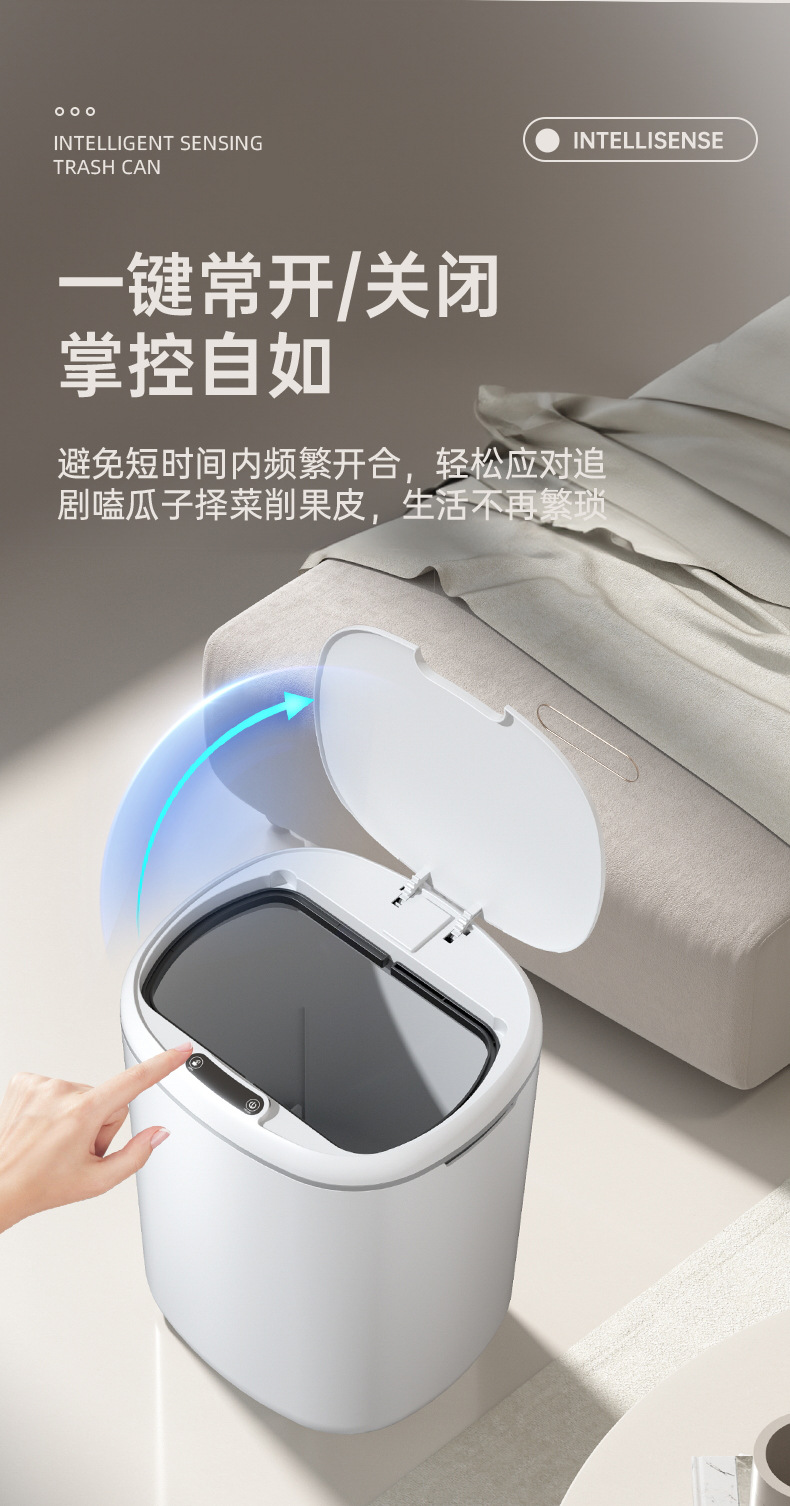 智能垃圾桶家用客厅卫生间带盖全自动轻奢大容量感应式18L垃圾桶