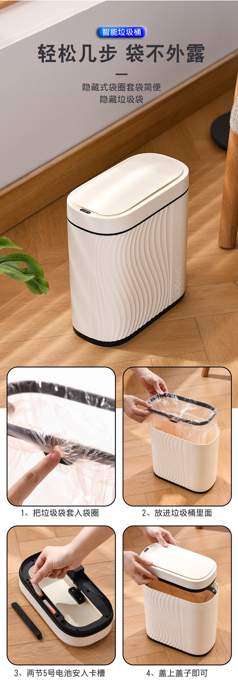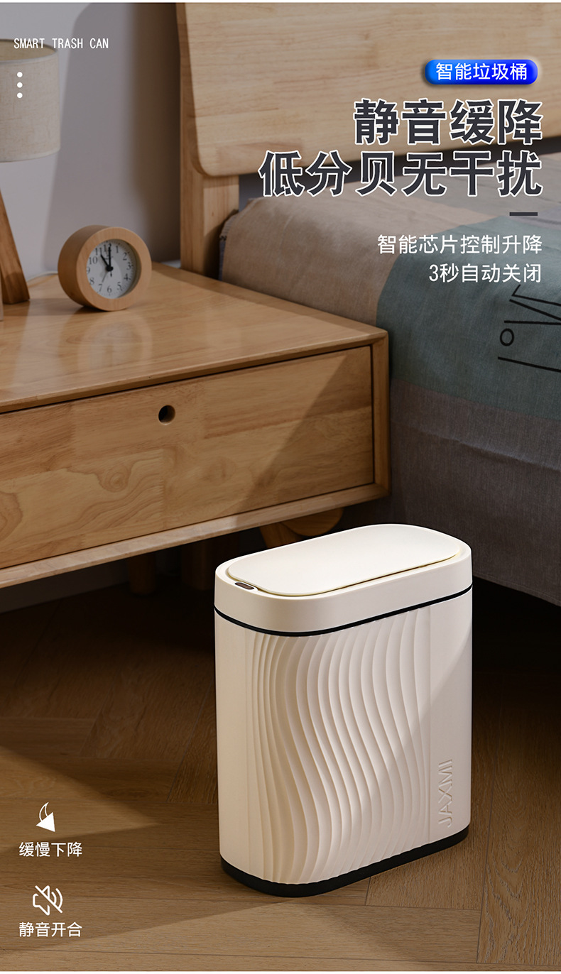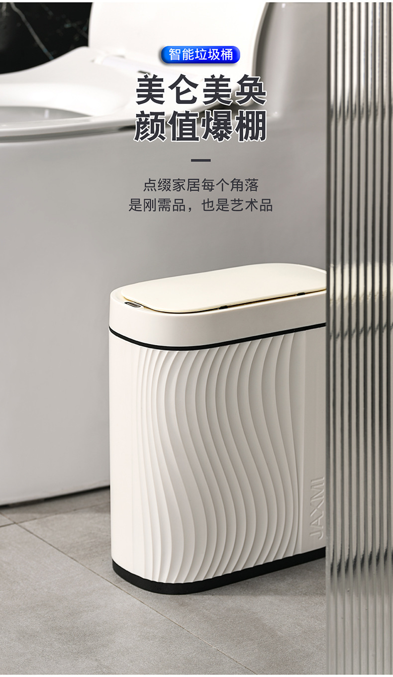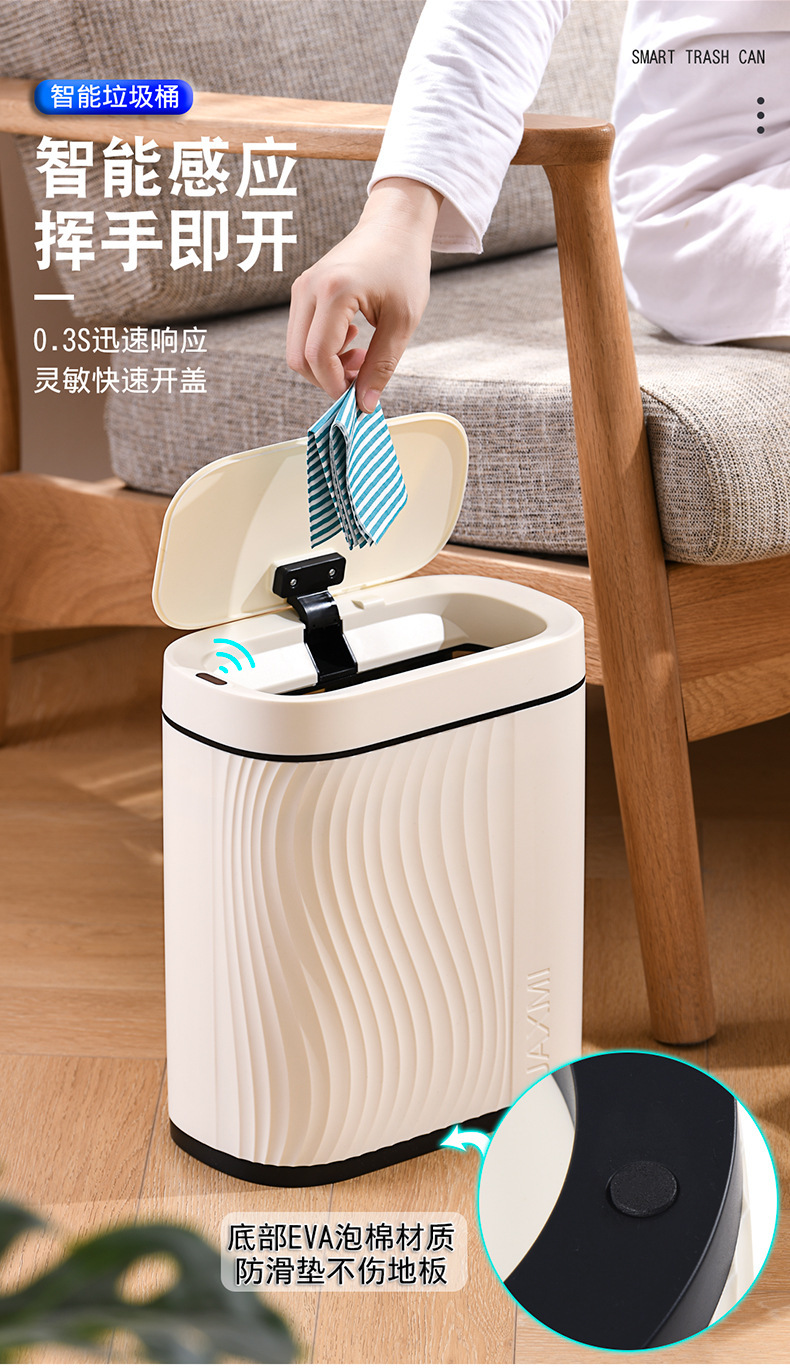 感应垃圾桶家用智能卫生间夹缝窄轻奢带盖客厅全自动电动轻奢纸篓
