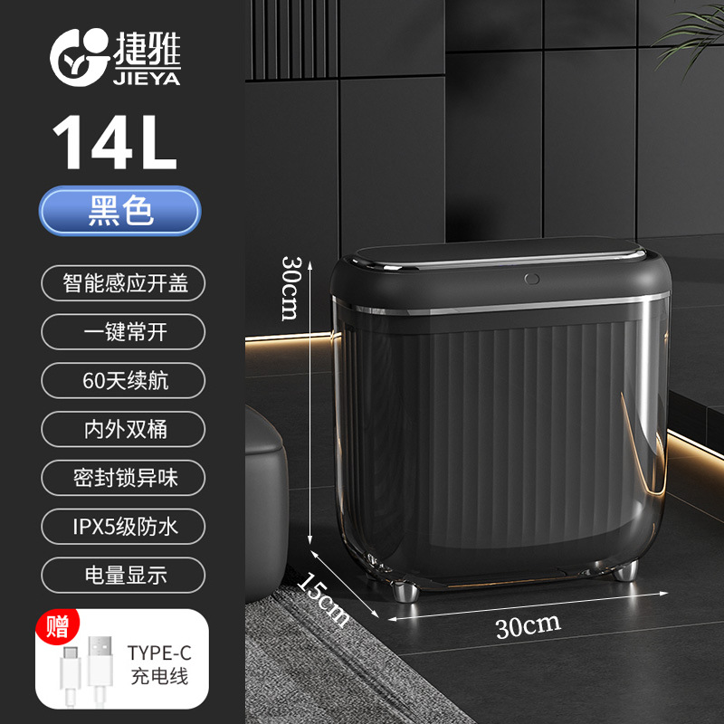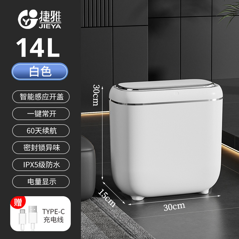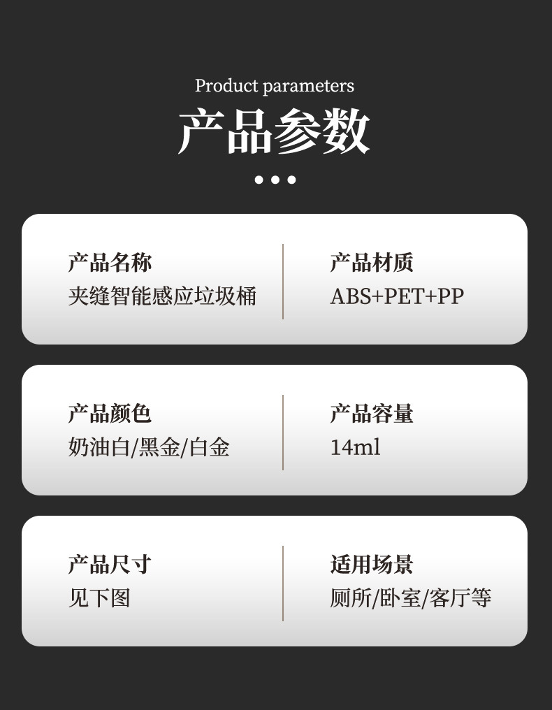 跨境高颜值奶油白垃圾桶 透明pet夹缝带盖家用智能感应自动垃圾桶