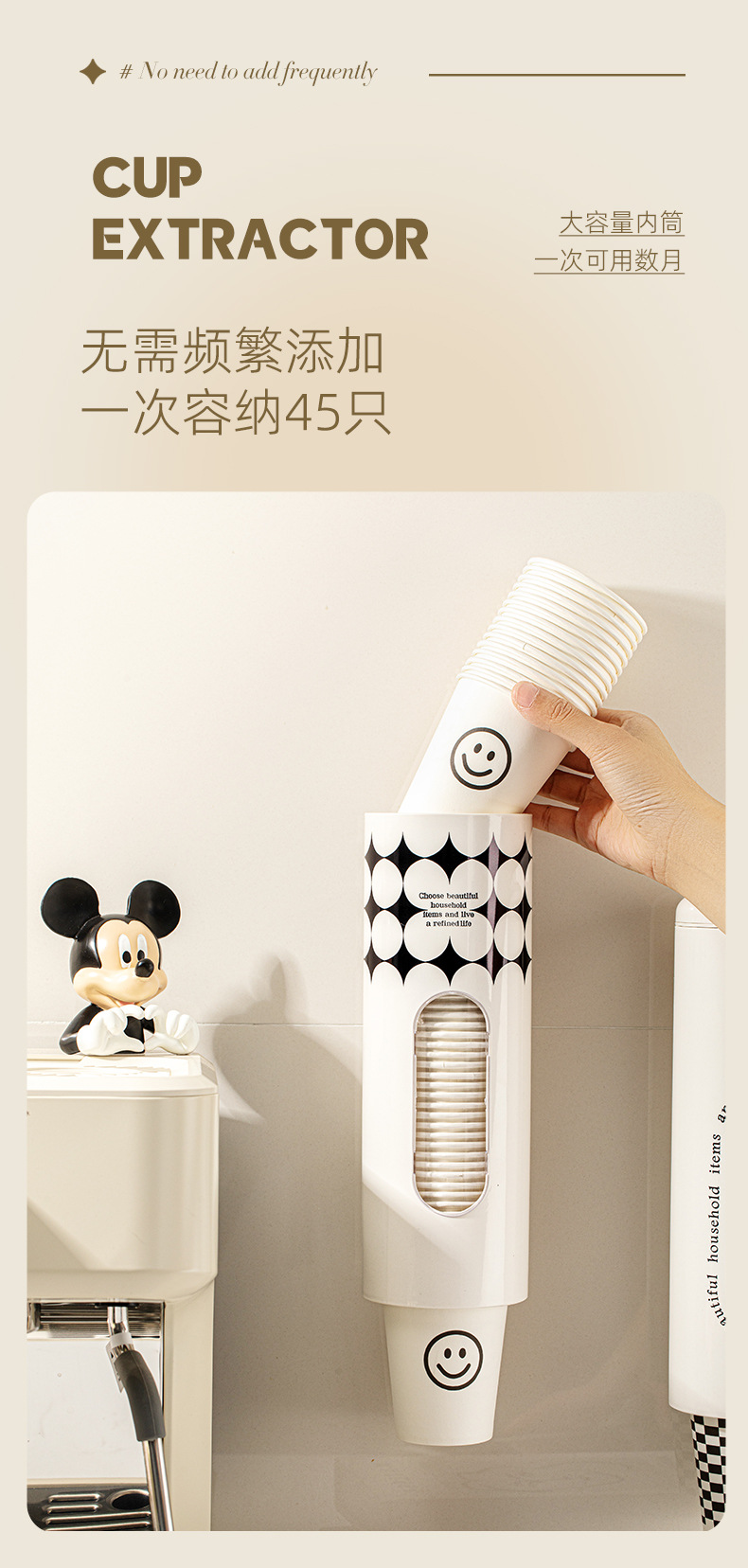 一次性杯子取杯器免打孔水杯桶壁挂式收纳置物架防尘挂取杯纸杯架