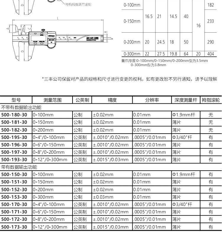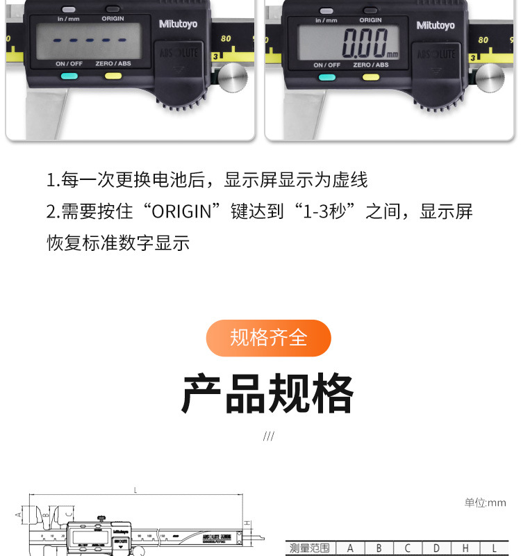 日本三丰数显卡尺 电子深度尺0-150 500-196 不锈钢工业游标卡尺