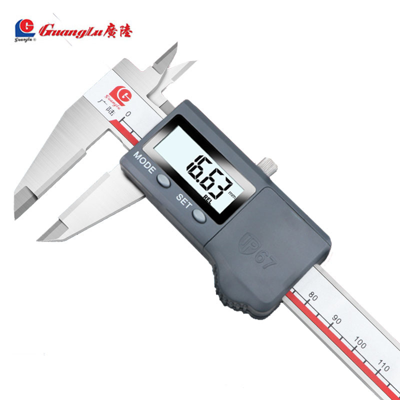广陆数显游标卡尺0- 150高精度防水原点电子数字油标卡尺IP67