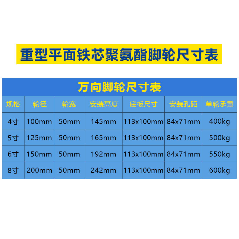 铁芯聚氨酯脚轮 手推车静音pu万向轮子红色重载型铁芯聚氨酯脚轮
