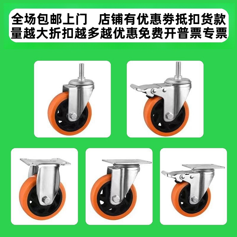 厂家手推车平板车大全轮子工业脚轮 中型聚丙烯橙黄色通花万向轮
