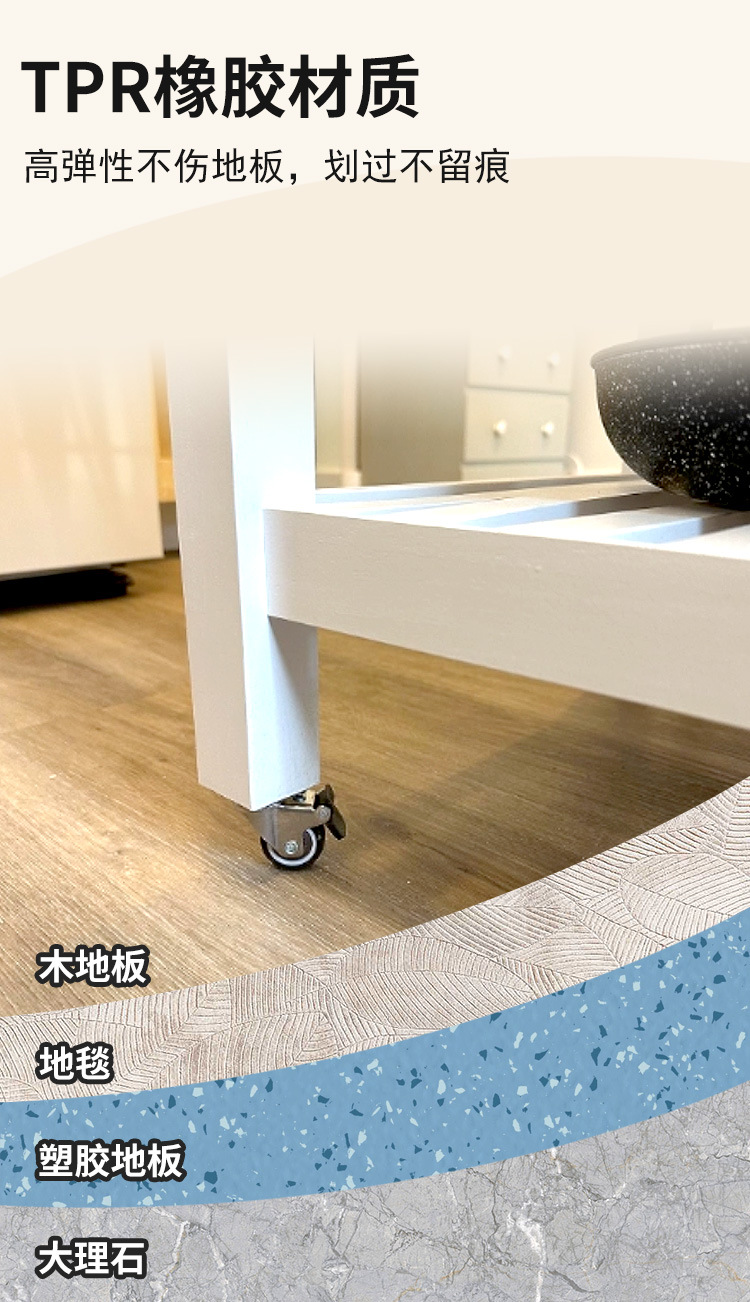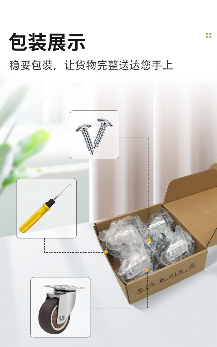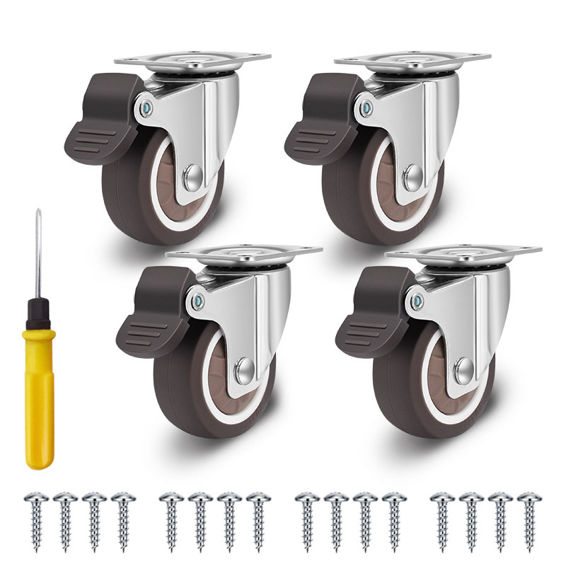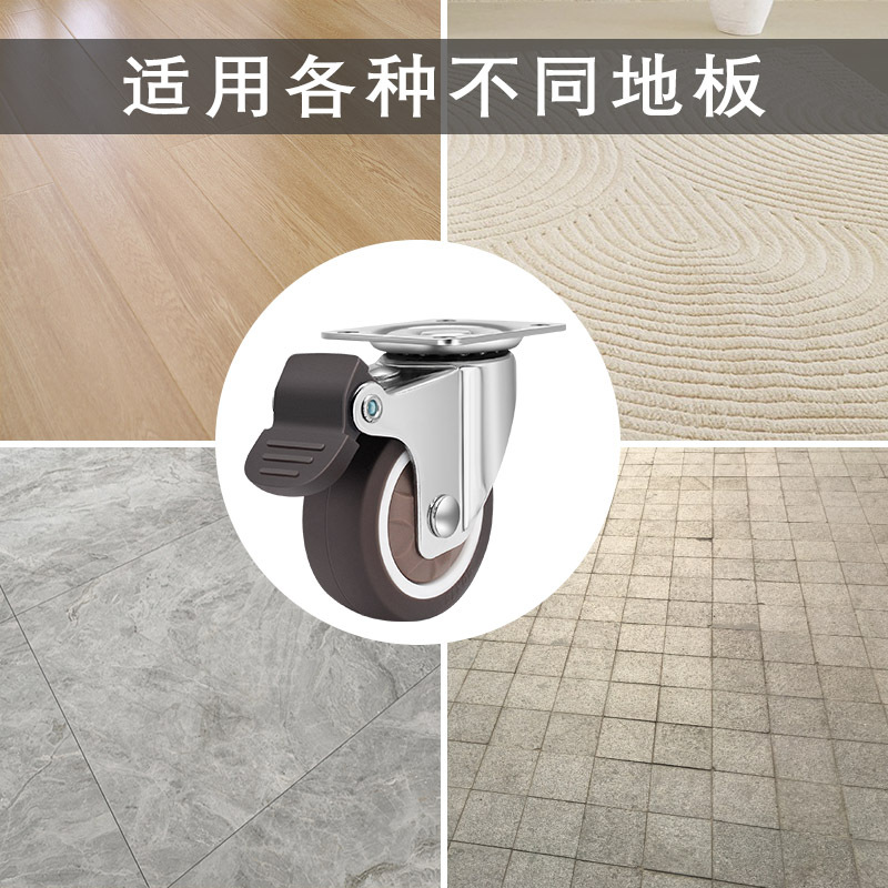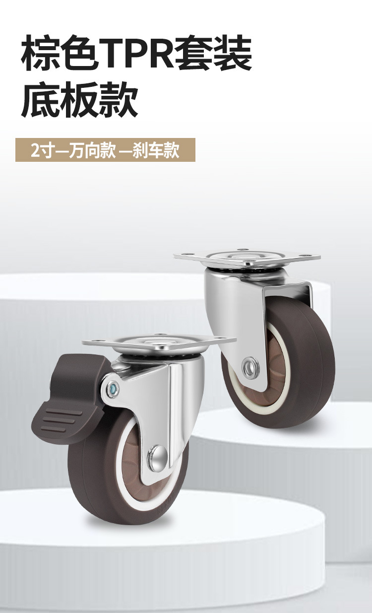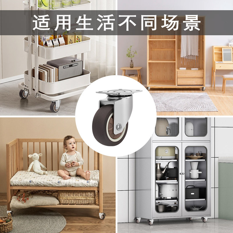 Temu热销轻型平板TPR脚轮静音不伤地板柜子活动带刹车万向轮套装