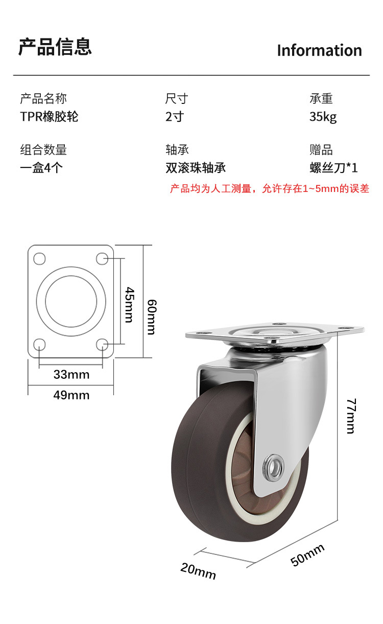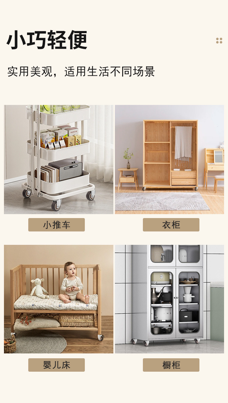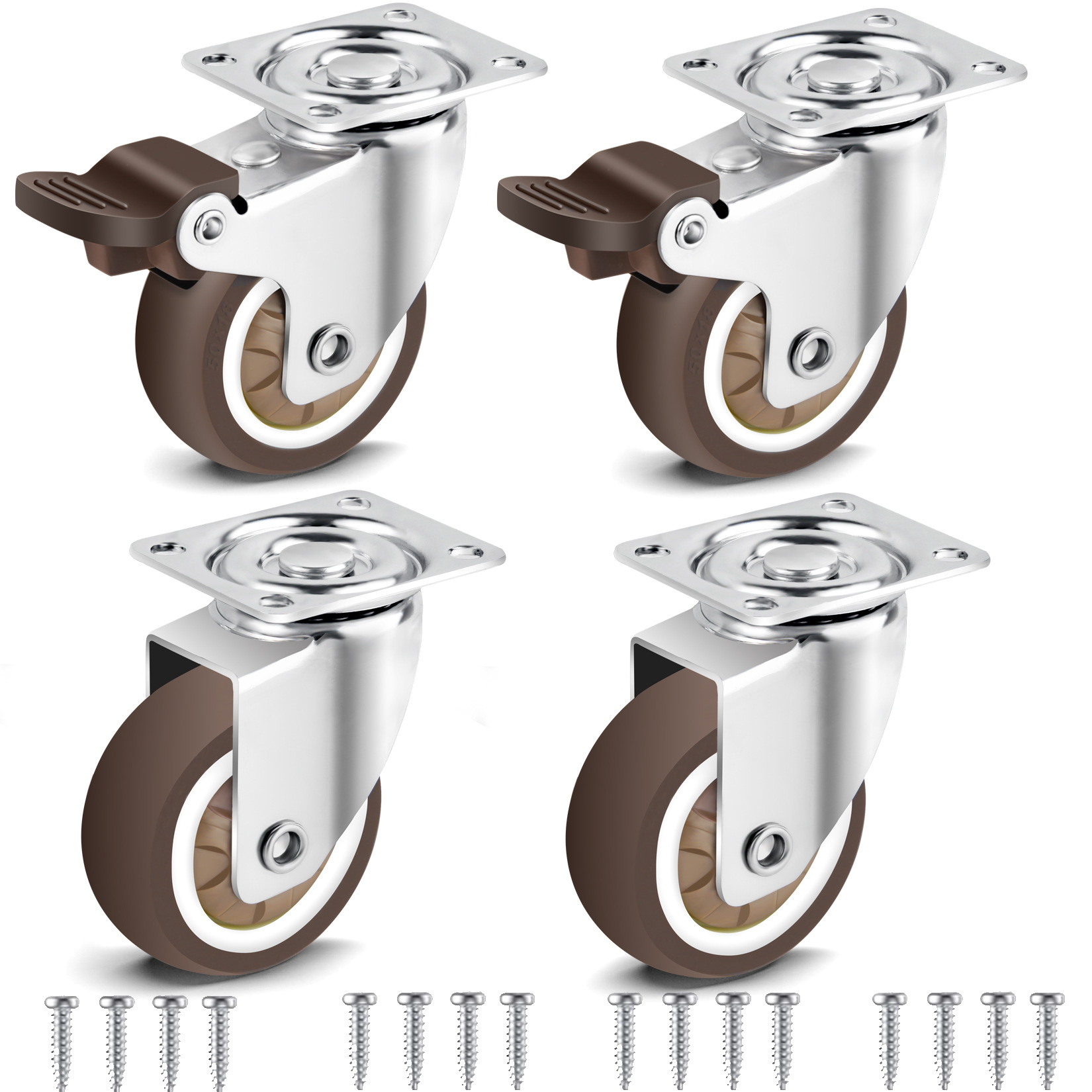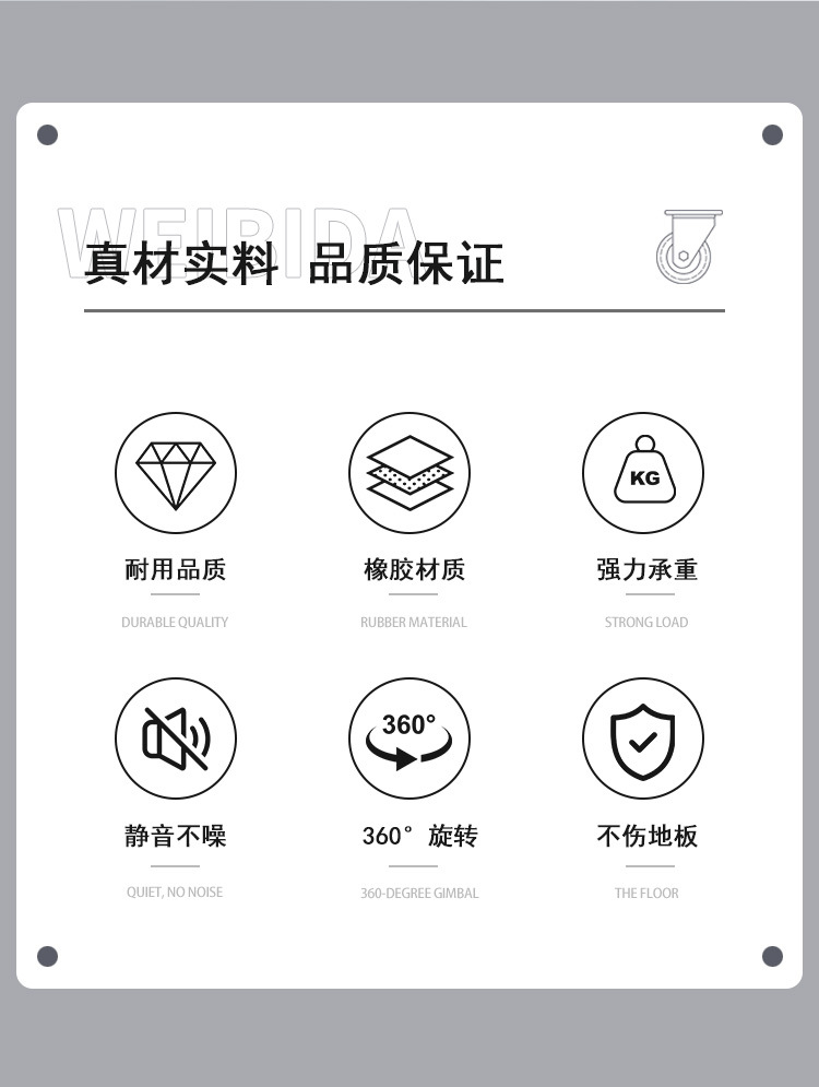 Temu热销轻型平板TPR脚轮静音不伤地板柜子活动带刹车万向轮套装