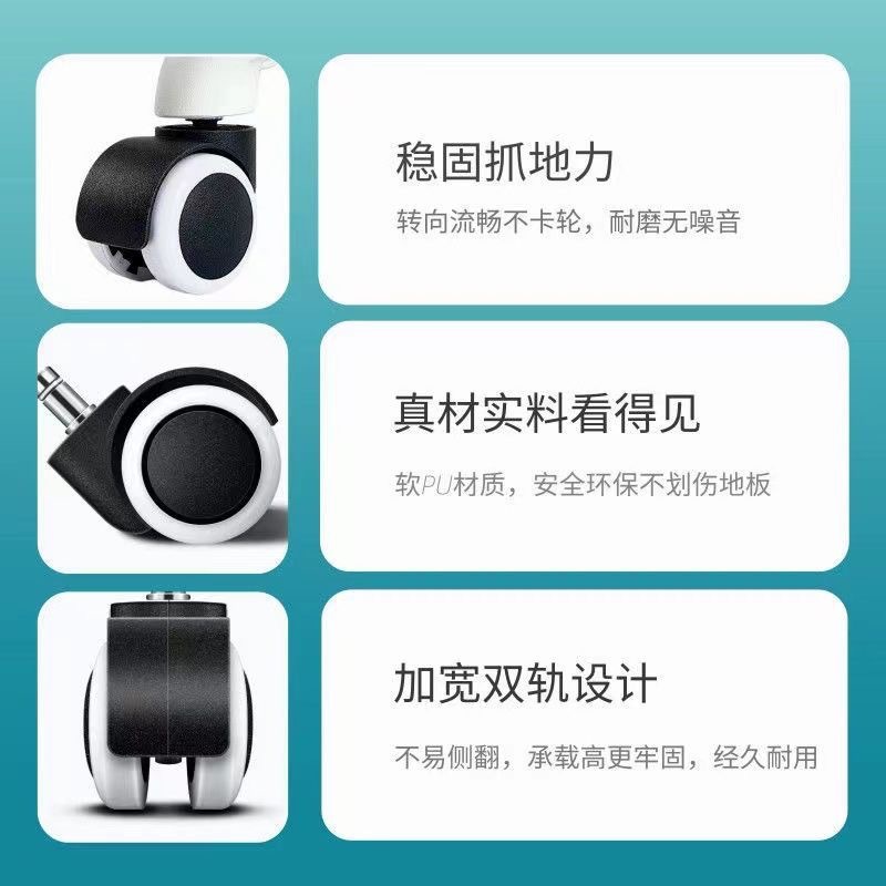 办公椅脚轮2寸PU大班椅轮老板椅滑轮子加厚转椅卡簧万向轮静音轮