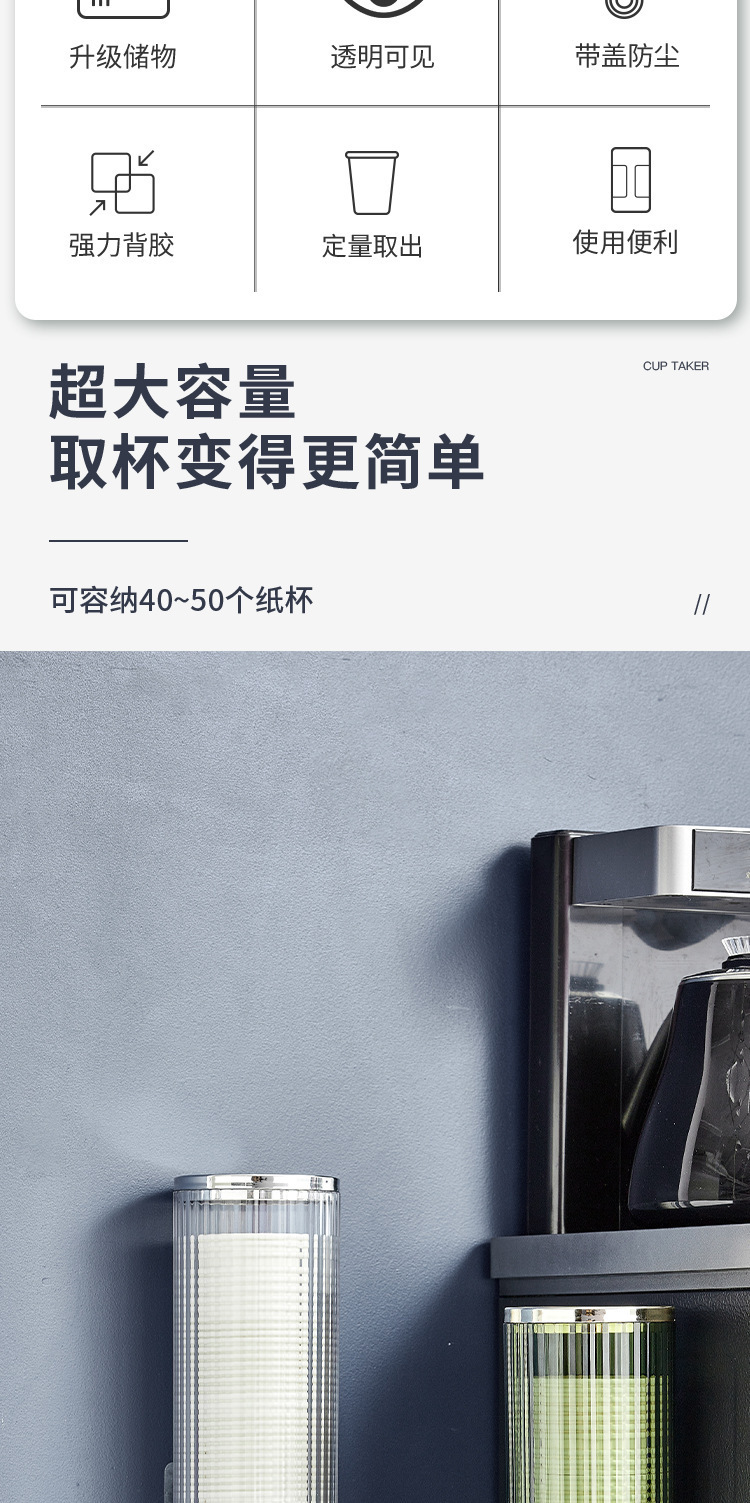 纸杯架取杯架一次性杯子取杯器放杯子收纳置物架防尘免打孔收纳盒