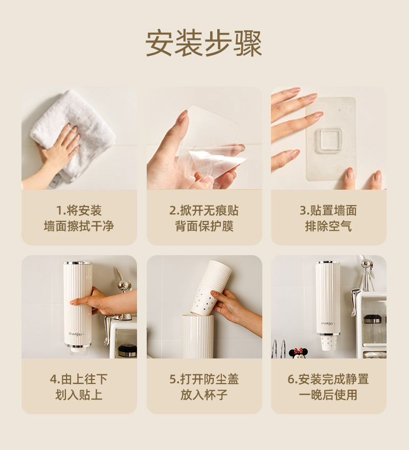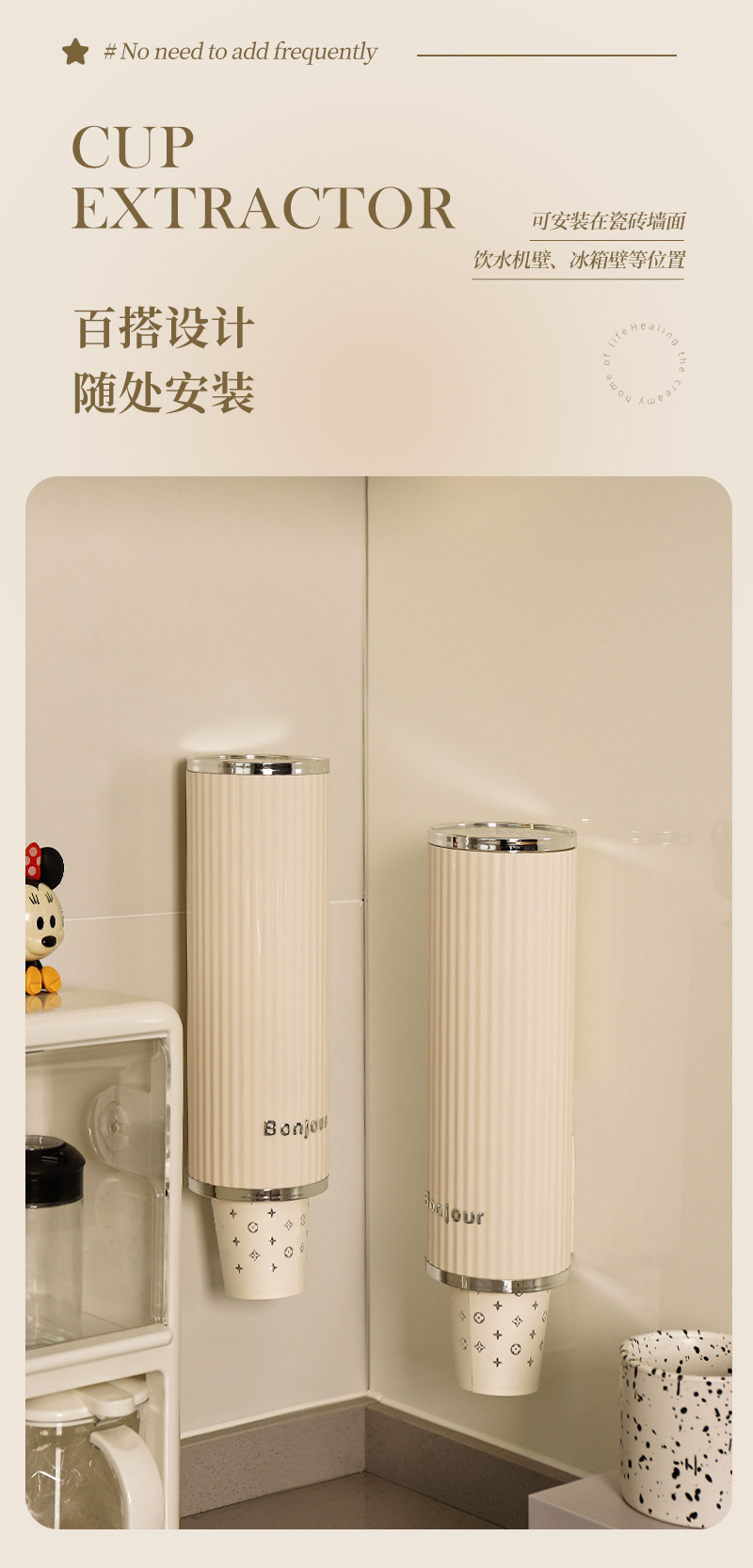 高颜值一次性杯子取杯器壁挂式纸杯架置物架饮水机杯架防尘免打孔