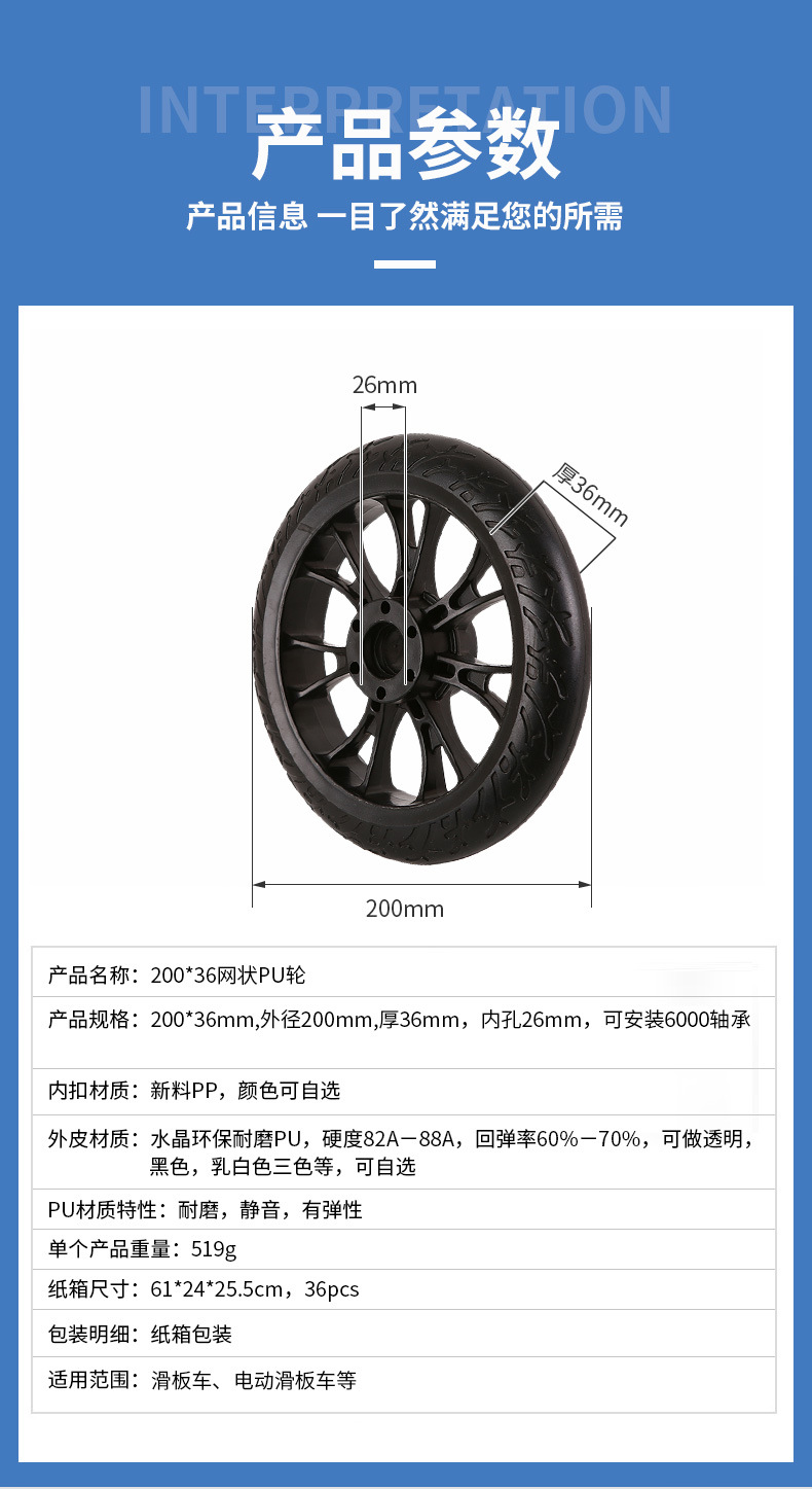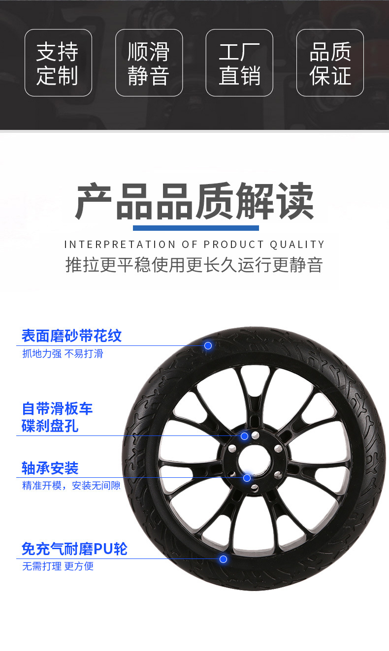 厂家批发8寸实心高耐磨静音灌注轮子免充气成人电动滑板车PU轮