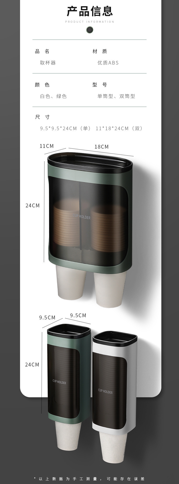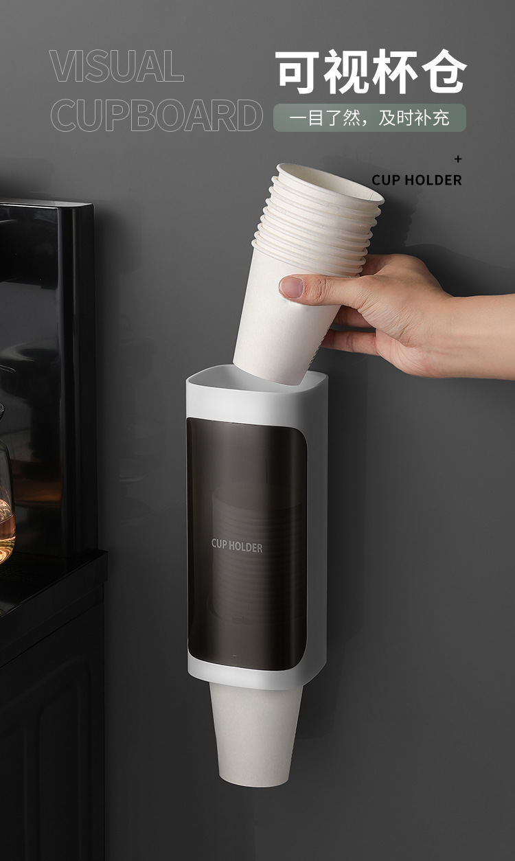 一次性杯子架自动取杯器免打孔壁挂防尘纸杯架饮水机家用收纳架子