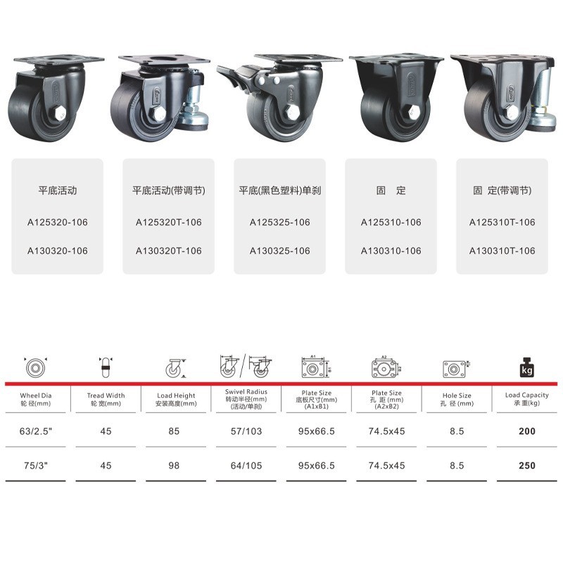 | a125310-106 2.5-inch directional wheel (200kg)(A125310-106 2.5寸定向轮(200kg)) | USD $2.92 | 3552 piece available |