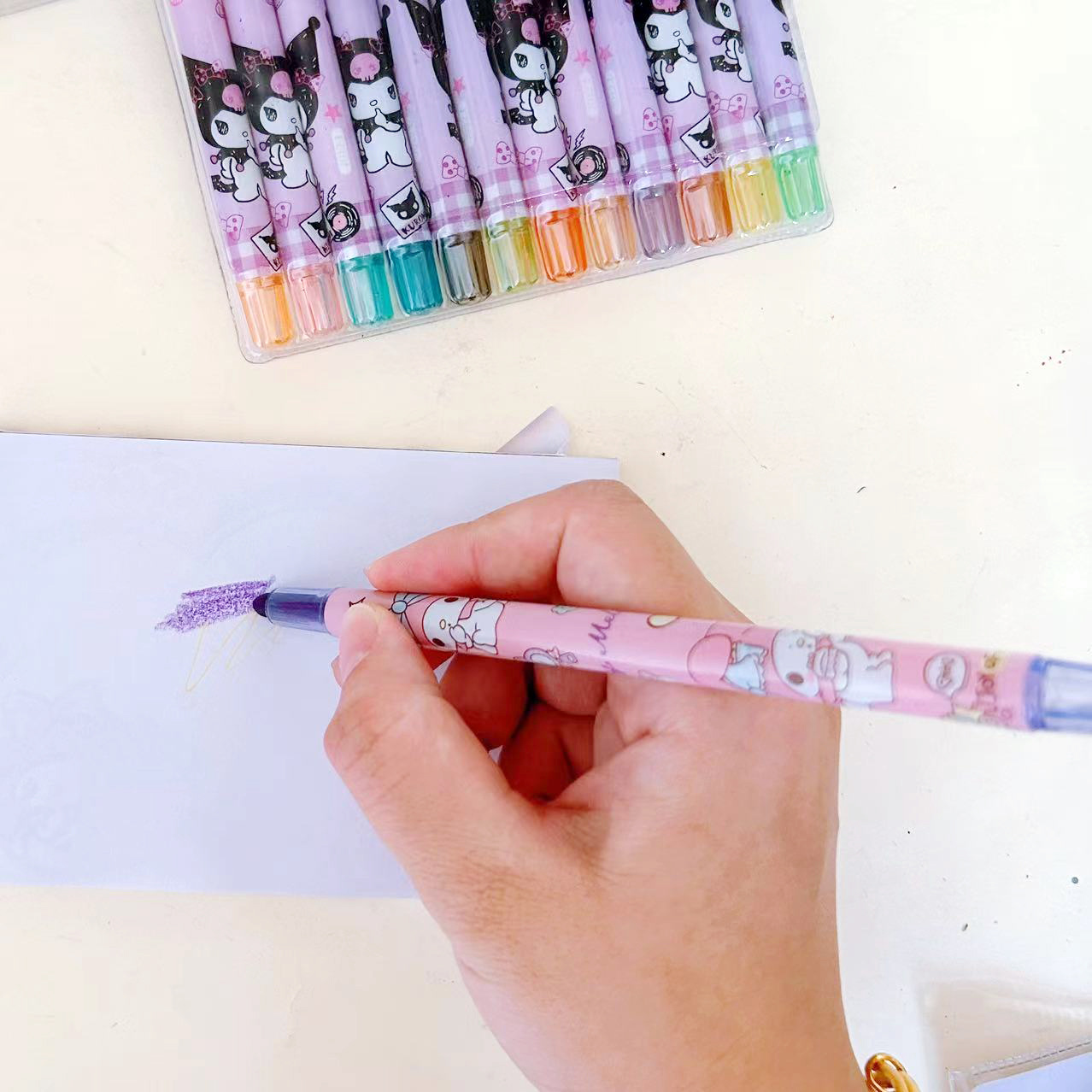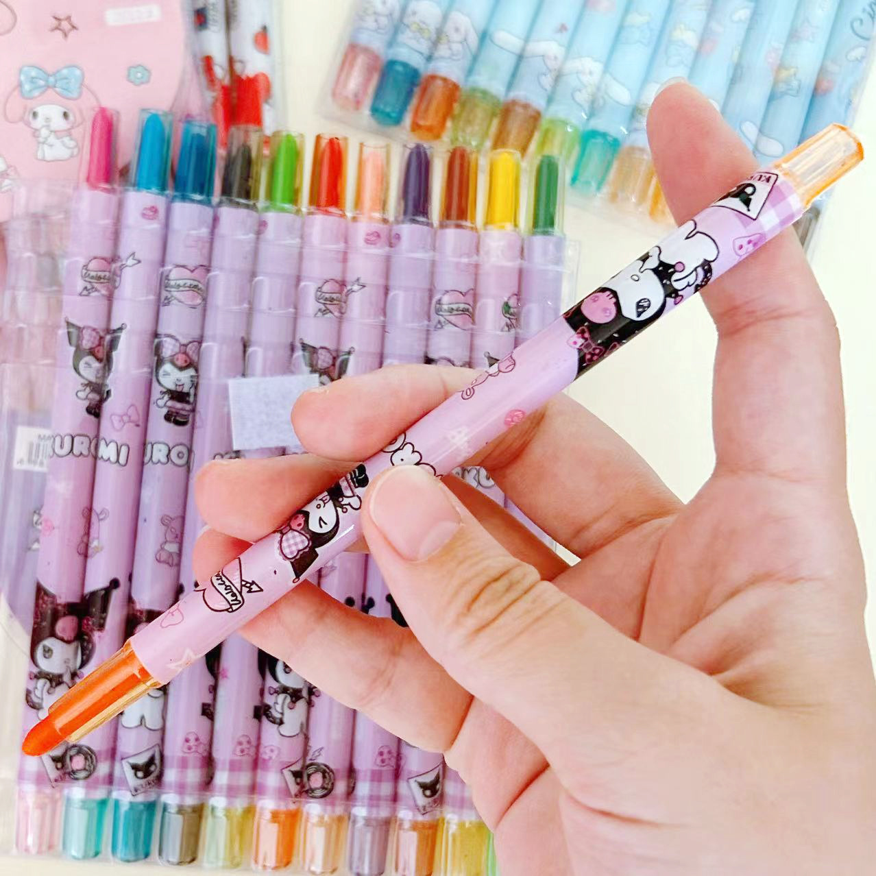 三丽鸥蜡笔12色可爱库洛米儿童礼品绘画笔旋转蜡笔油画棒长款蜡笔