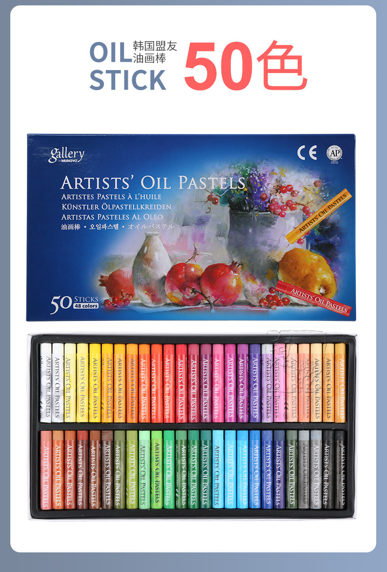 韩国盟友油画棒MOPS50色学生蜡笔涂鸦笔软蜡笔彩色儿童油画棒批发