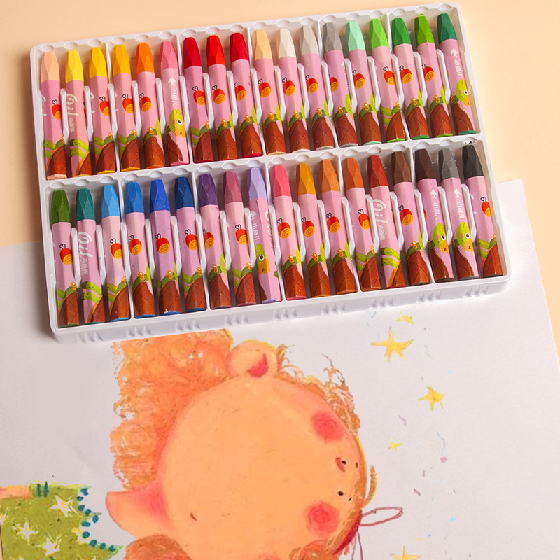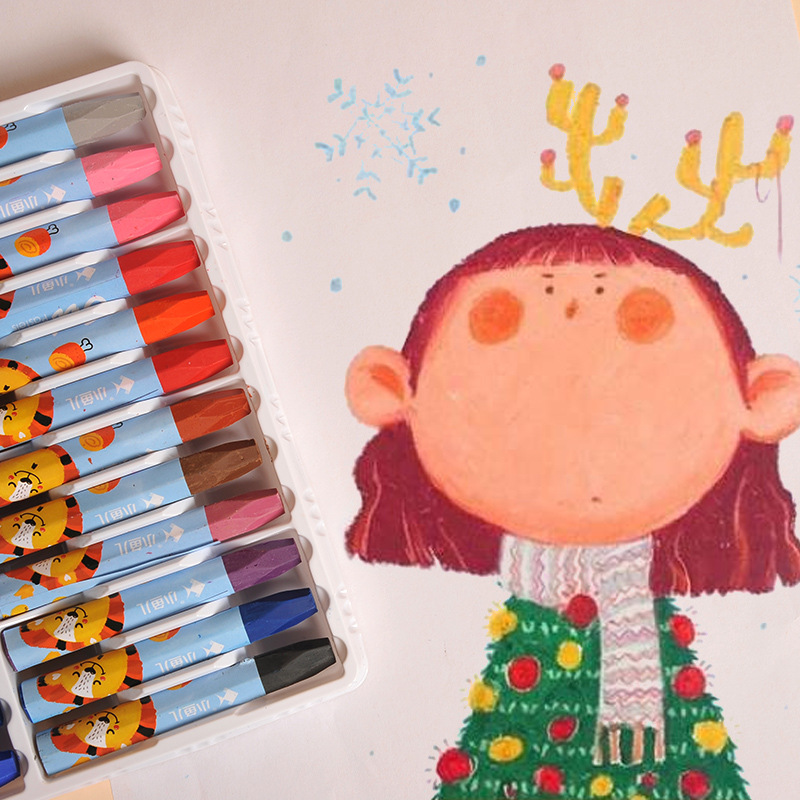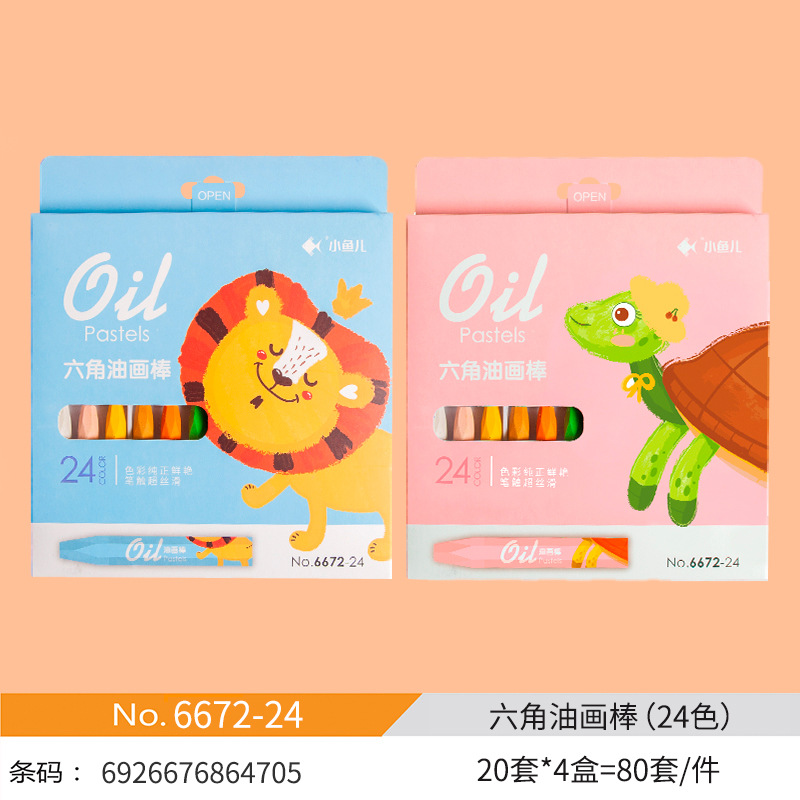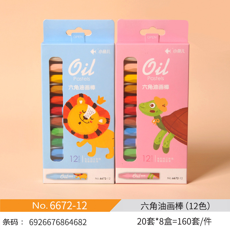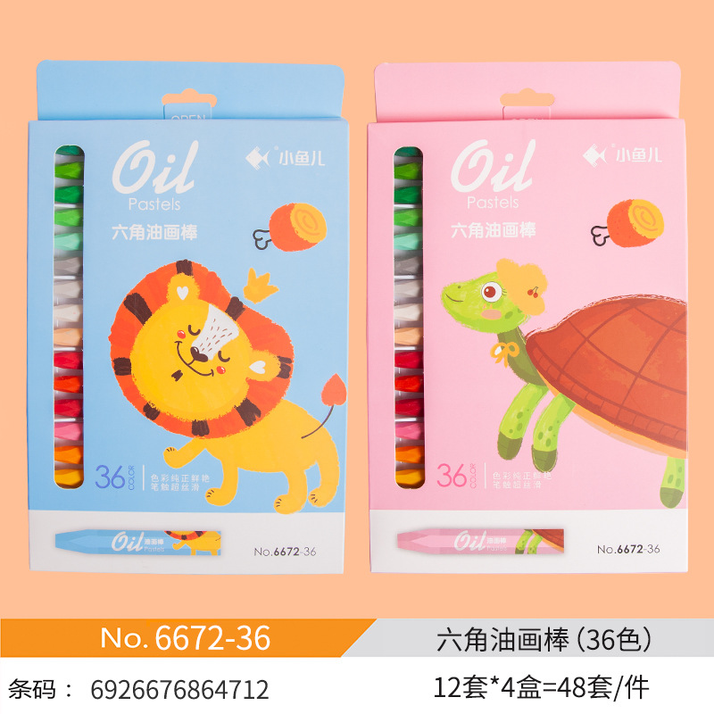 小鱼儿油画棒12色18色24色36色六角画笔儿童美术绘画油性重彩蜡笔