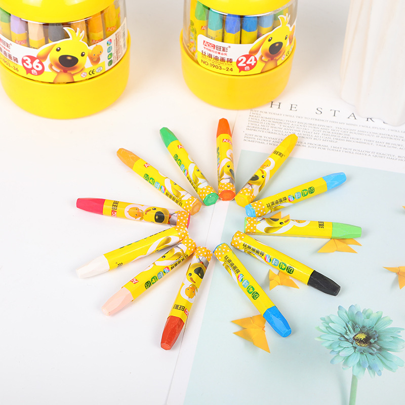 旺彩桶装可提式油画棒儿童涂鸦多色画画笔幼儿园水溶性彩色蜡笔