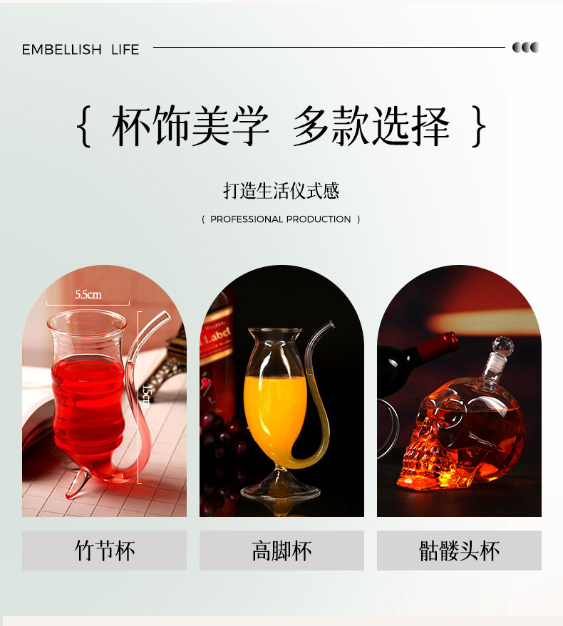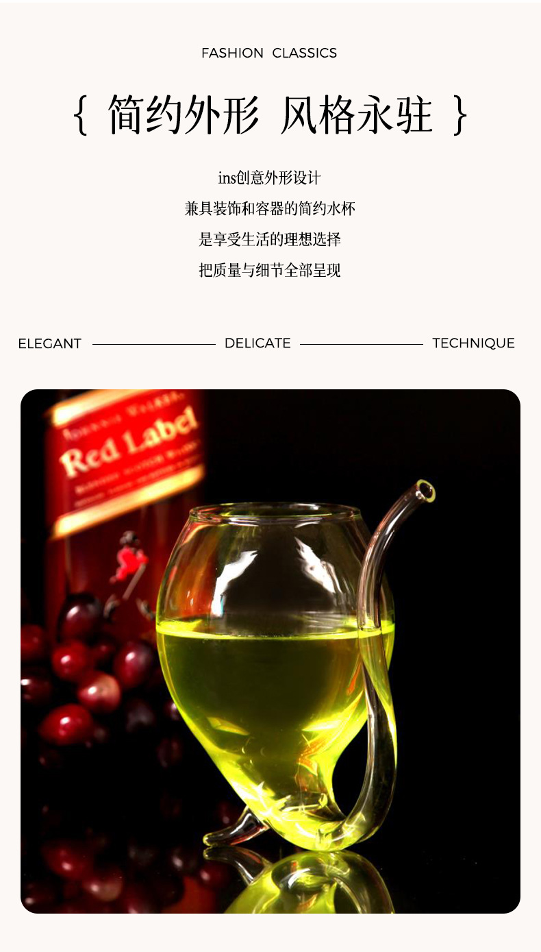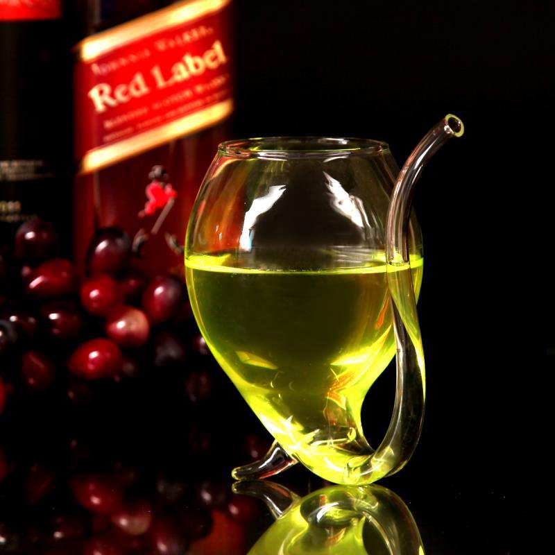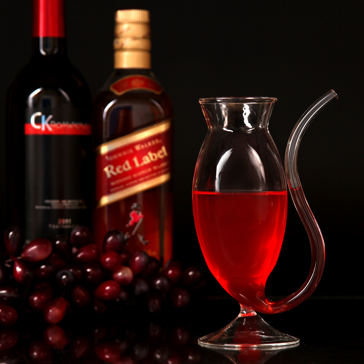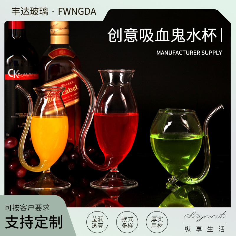 透明玻璃吸血鬼酒杯 创意红酒杯 吸管果汁杯子 高硼硅小鸟杯