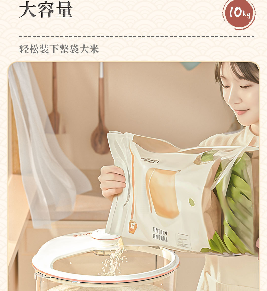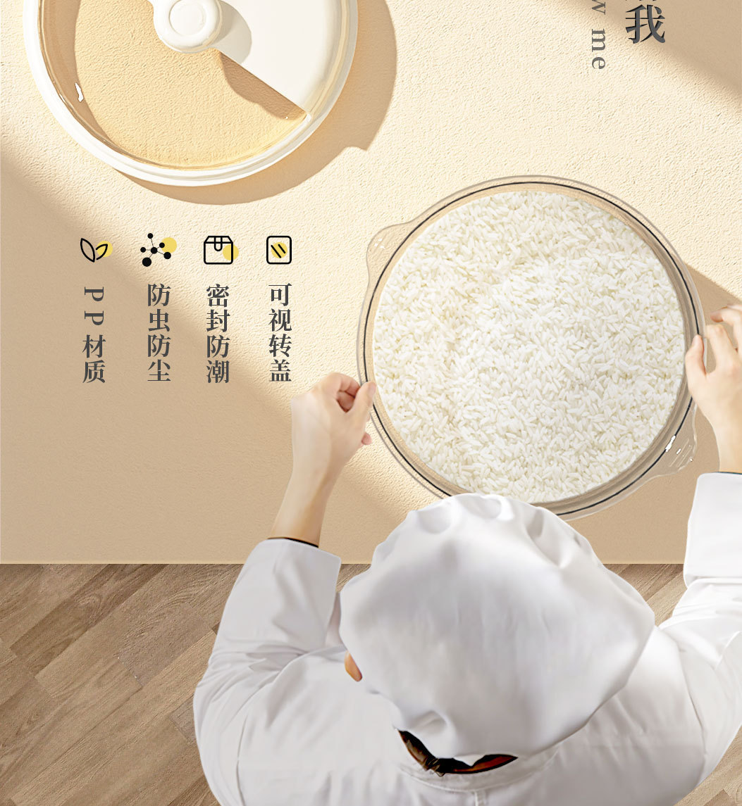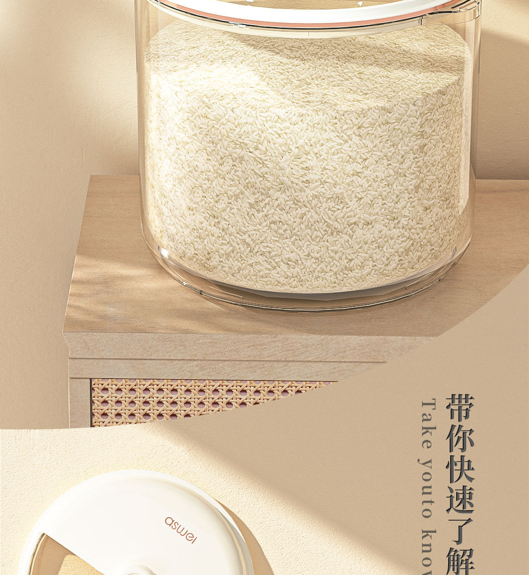厨房米桶家用防虫防潮透明旋转盖密封食品级储米箱装大米面粉存储