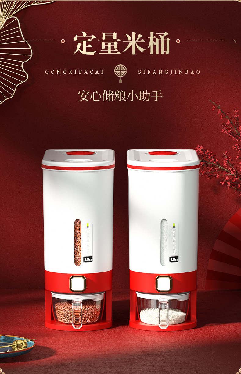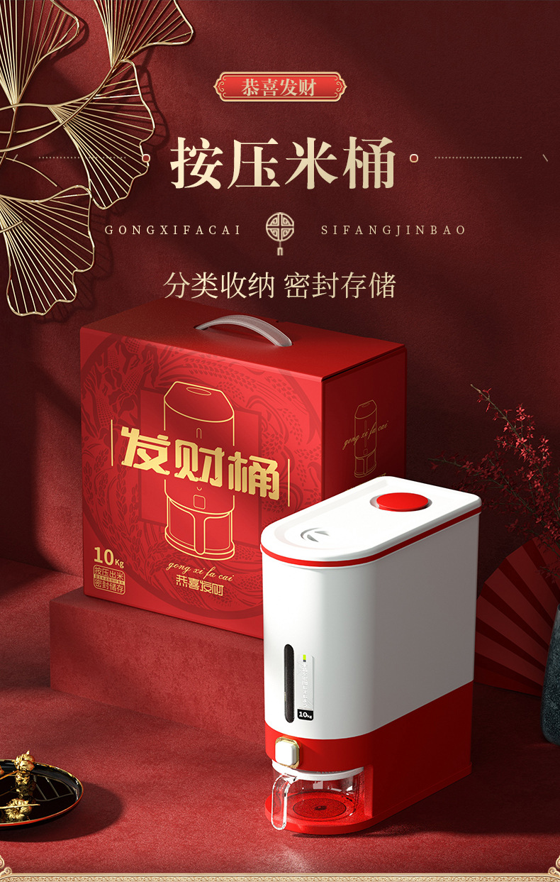 按压米桶储粮密封罐防虫防潮厨房收纳盒家用整理箱居家礼品发财桶