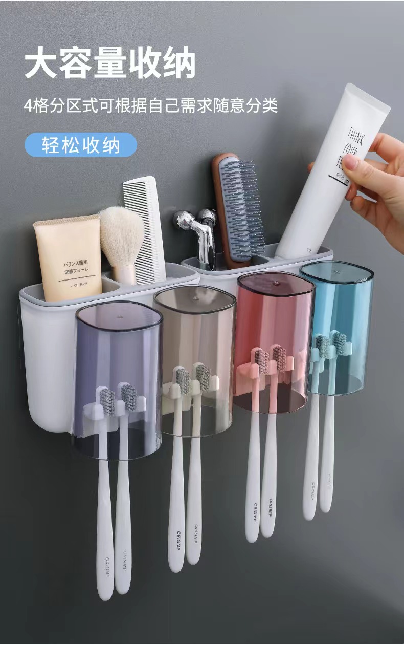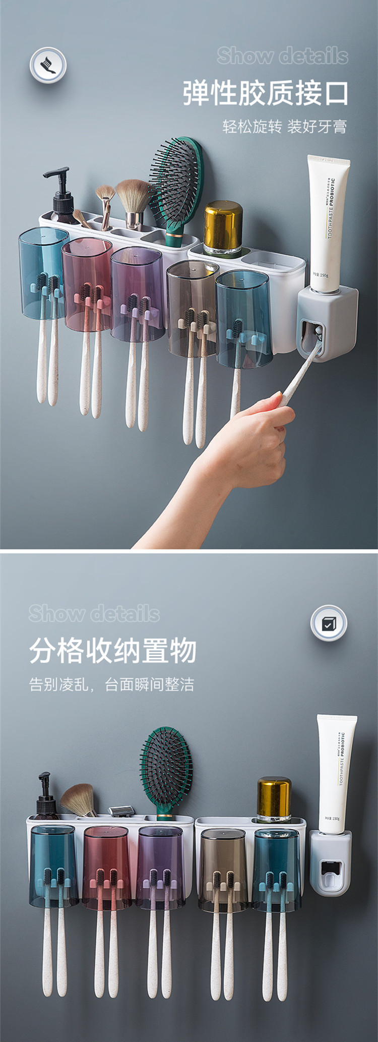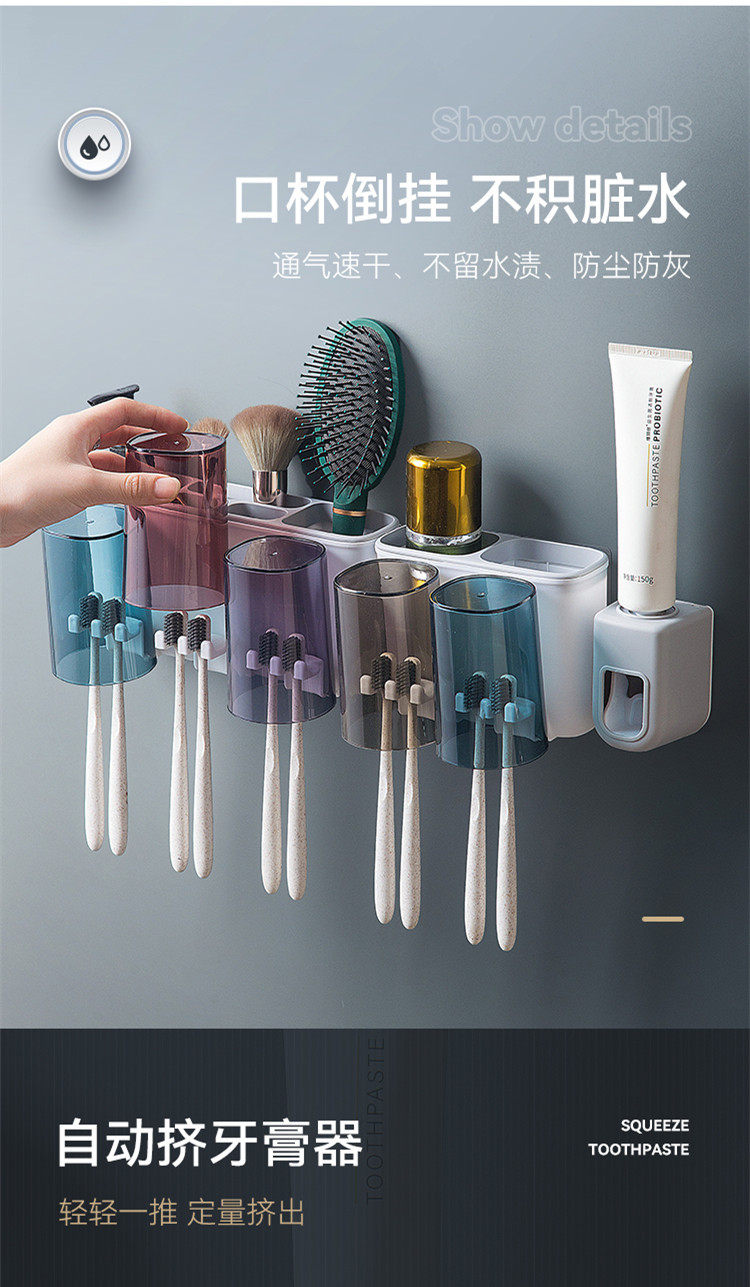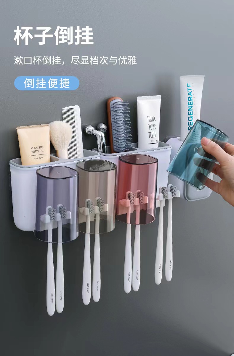 抖音爆款牙刷置物架免打孔漱口杯刷牙杯子挤牙膏神器牙刷杯洗漱杯