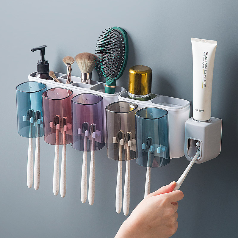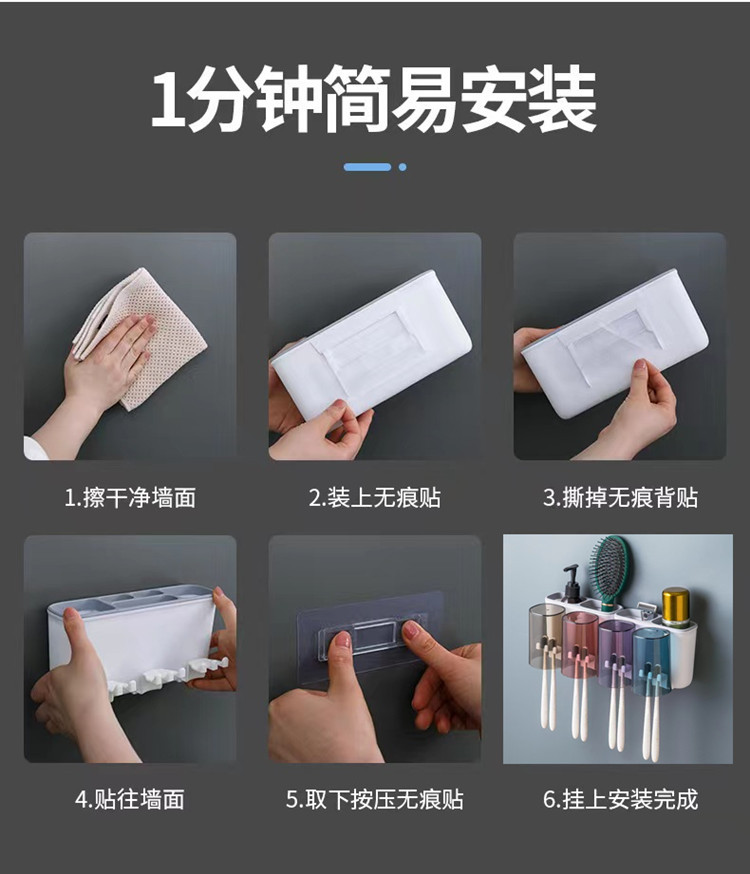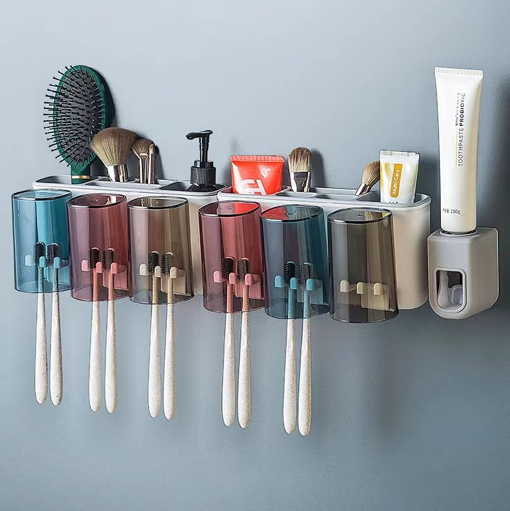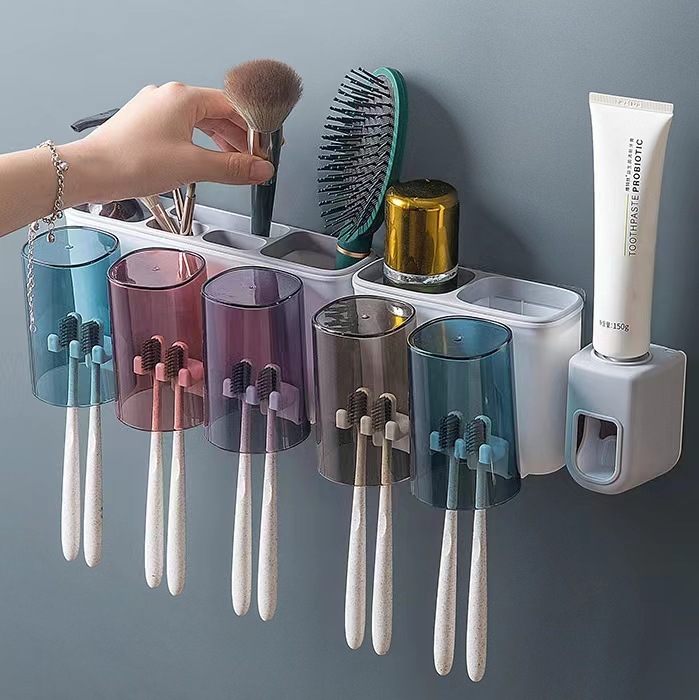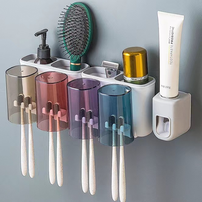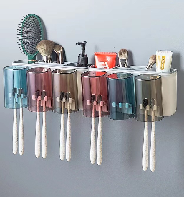 抖音爆款牙刷置物架免打孔漱口杯刷牙杯子挤牙膏神器牙刷杯洗漱杯