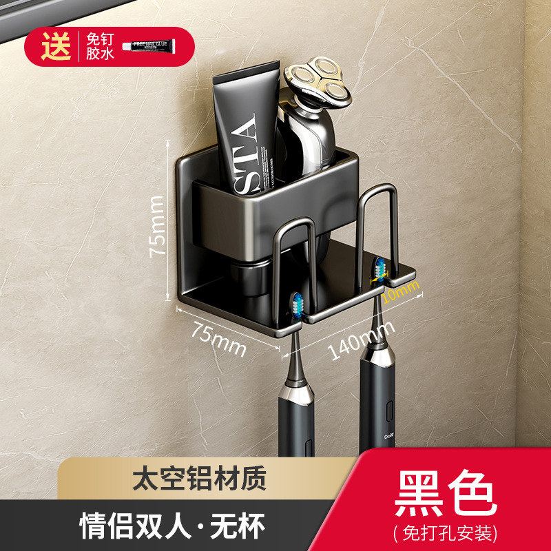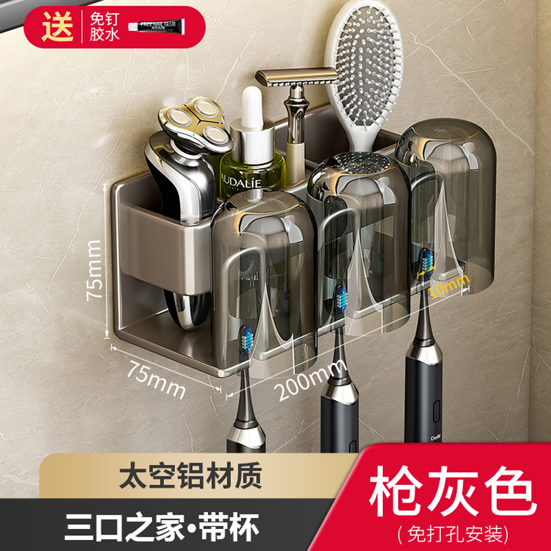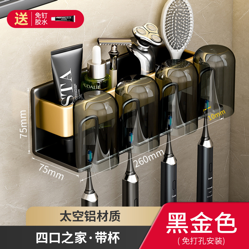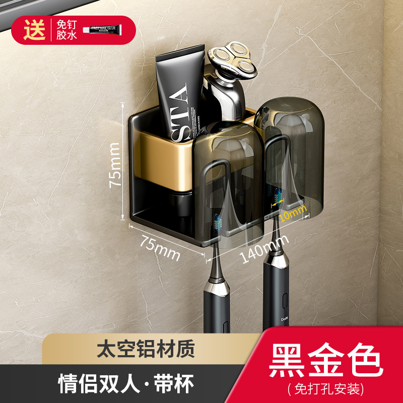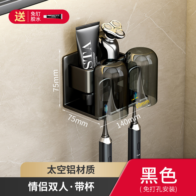 奶油风牙刷置物架卫生间免打孔电动刷牙杯漱口杯收纳墙壁挂式架子