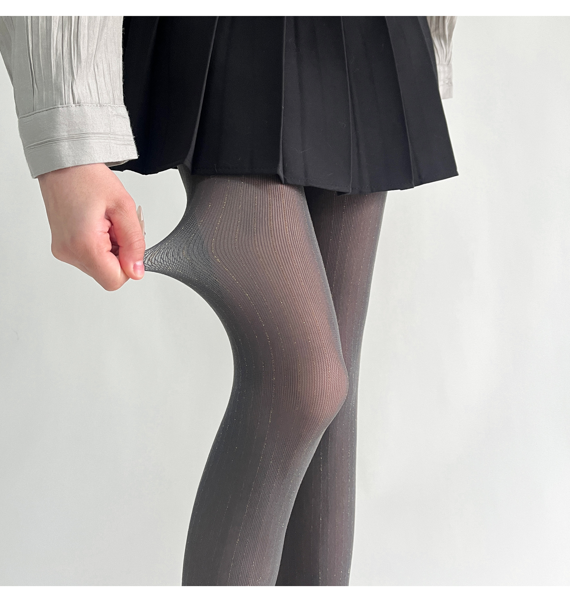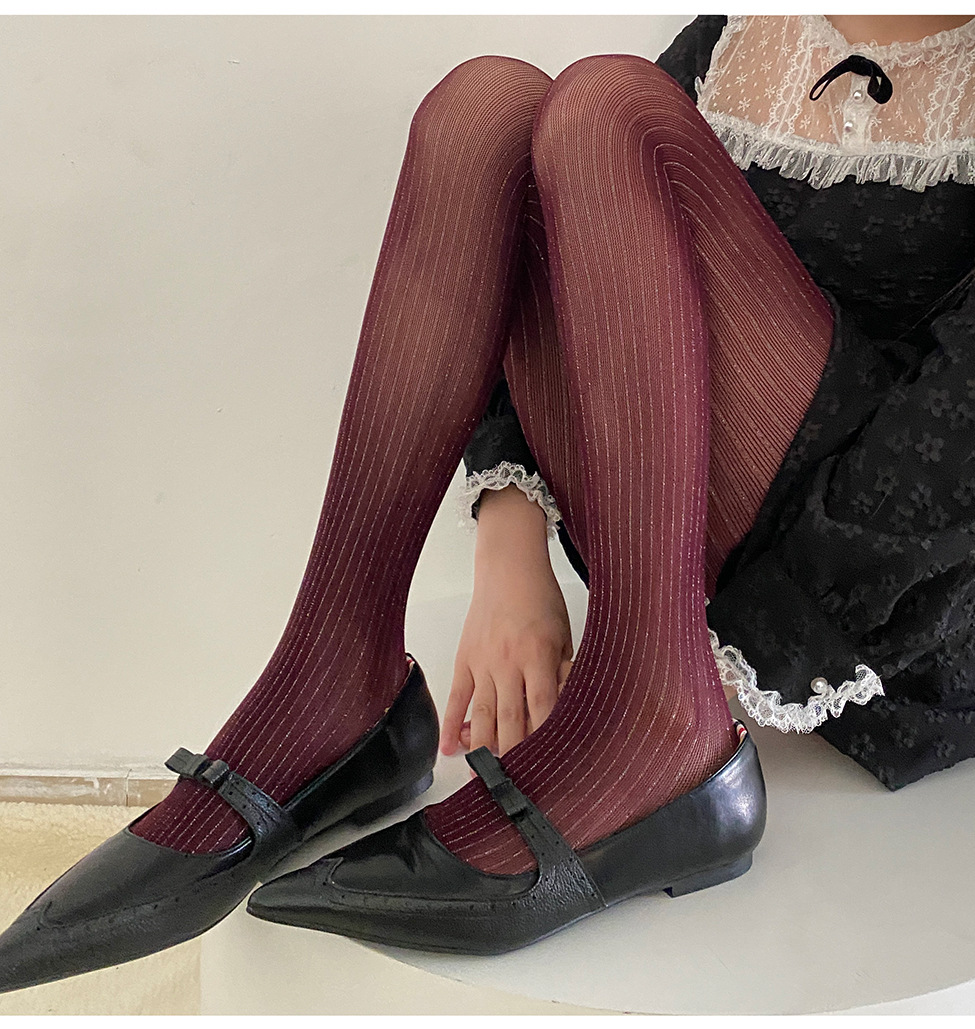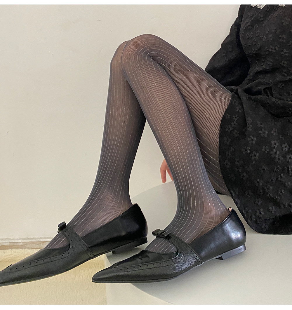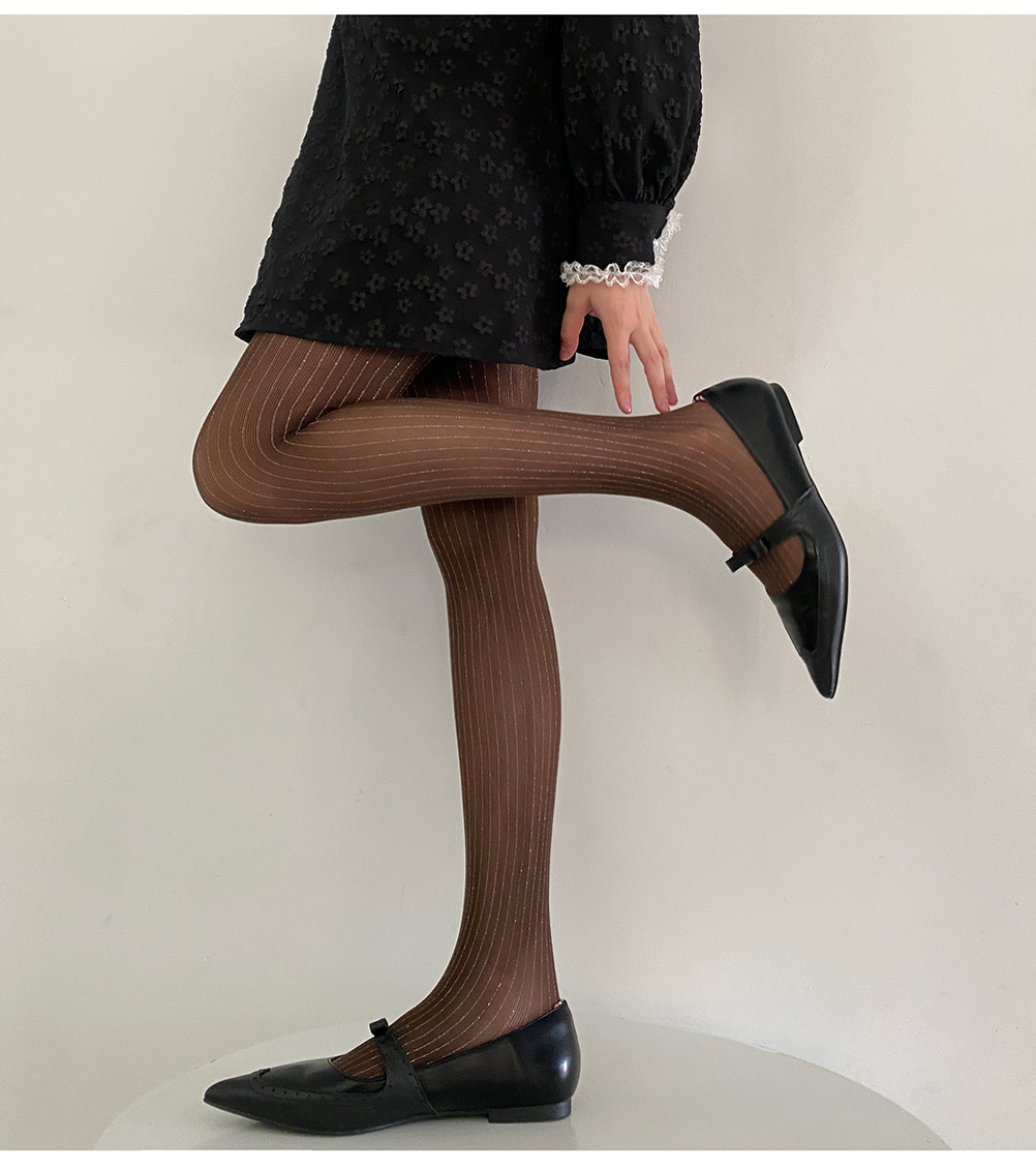 春夏新品奢华黑丝袜银丝竖纹连裤袜亮丝耐穿防勾丝