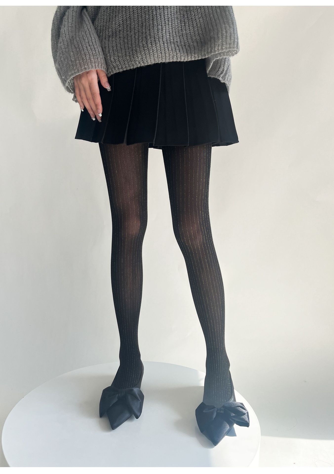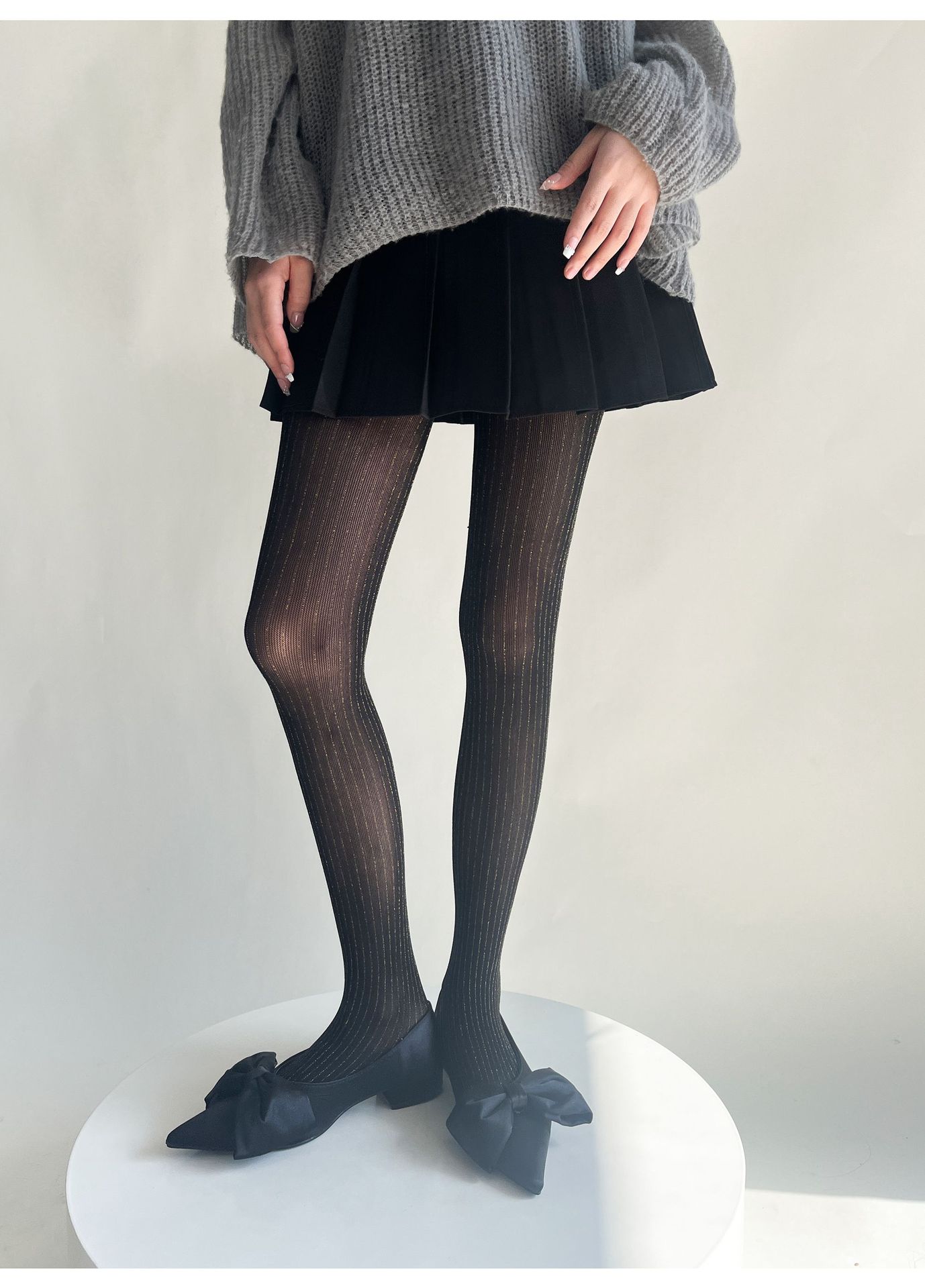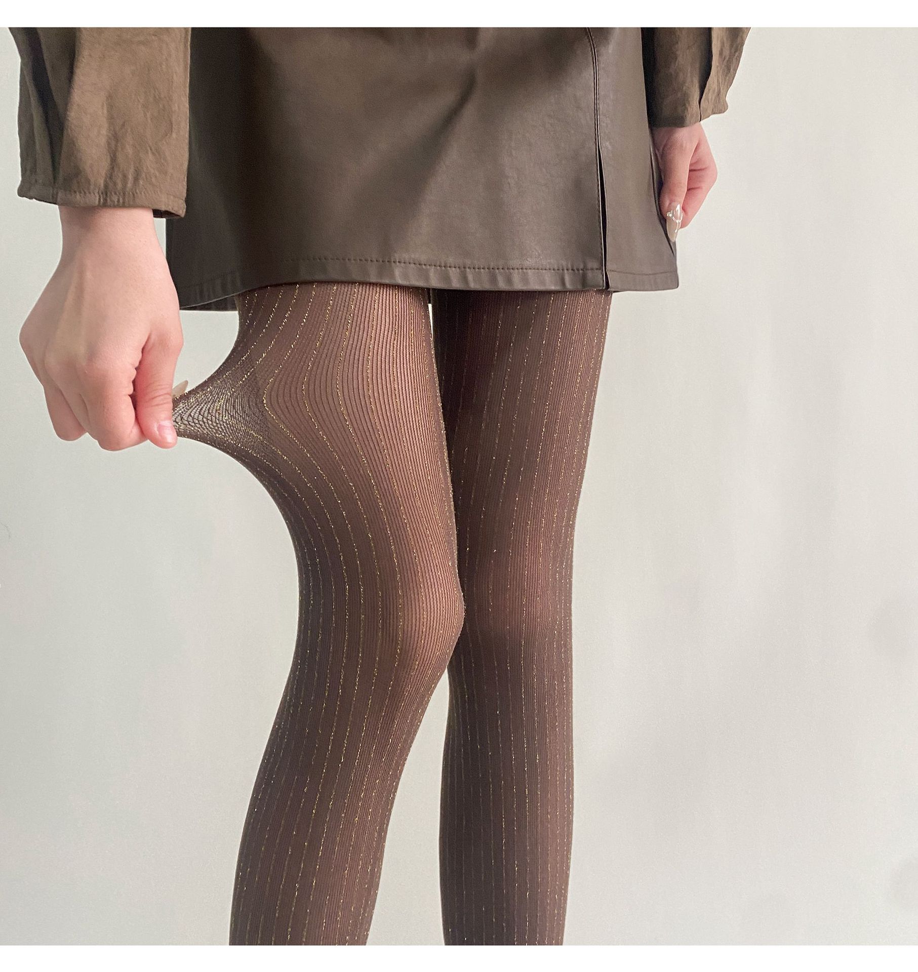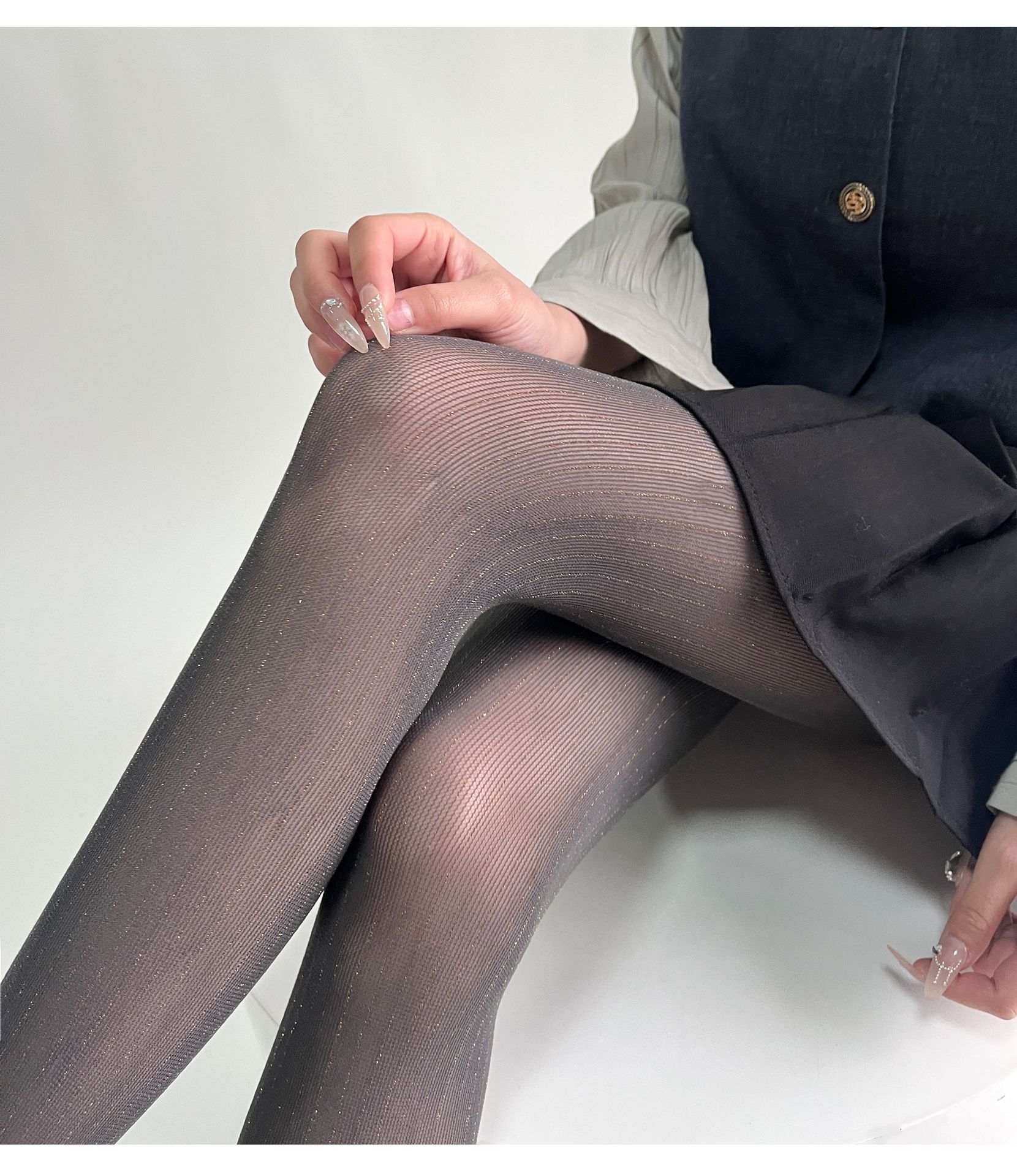 春夏新品奢华黑丝袜银丝竖纹连裤袜亮丝耐穿防勾丝