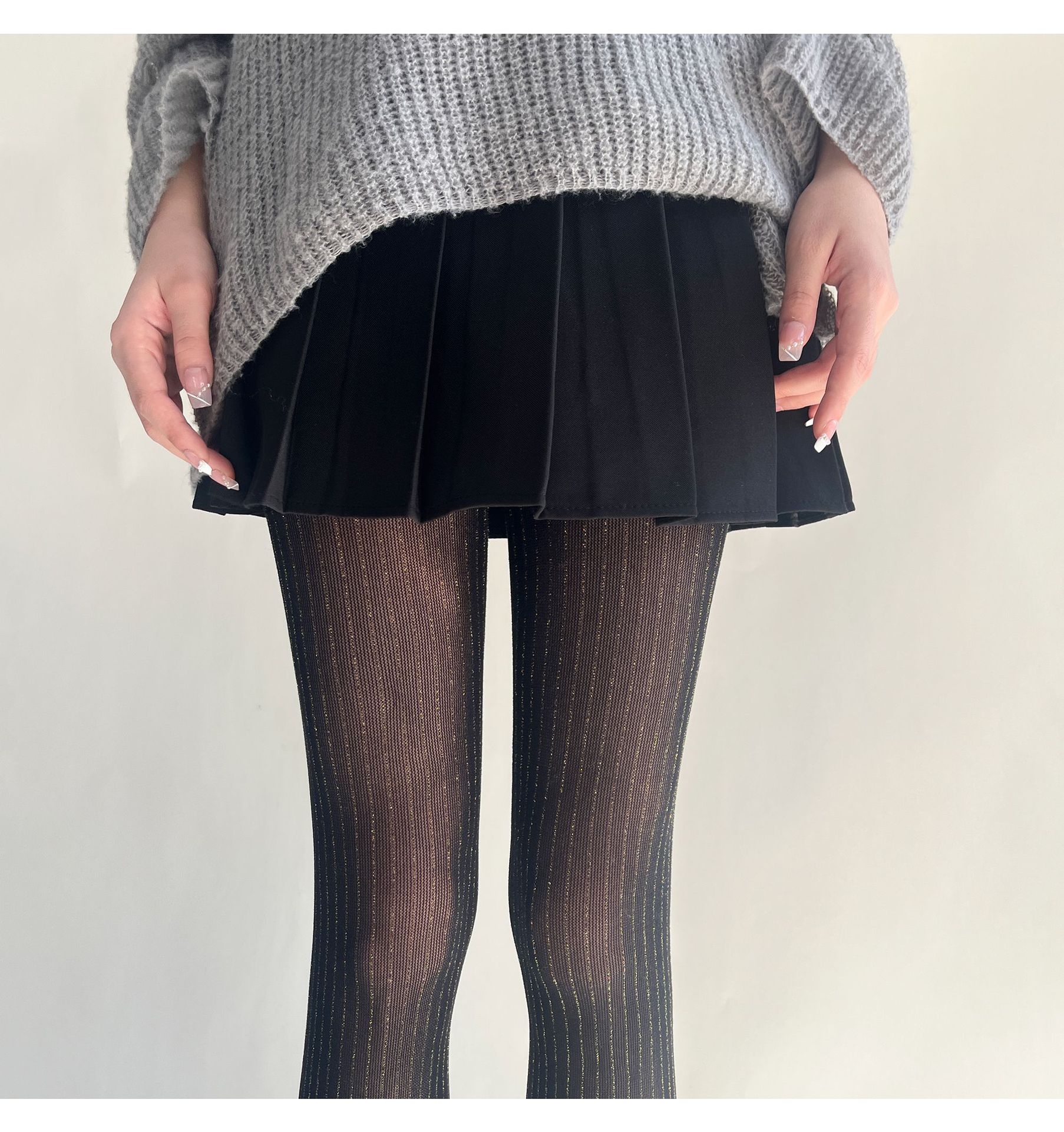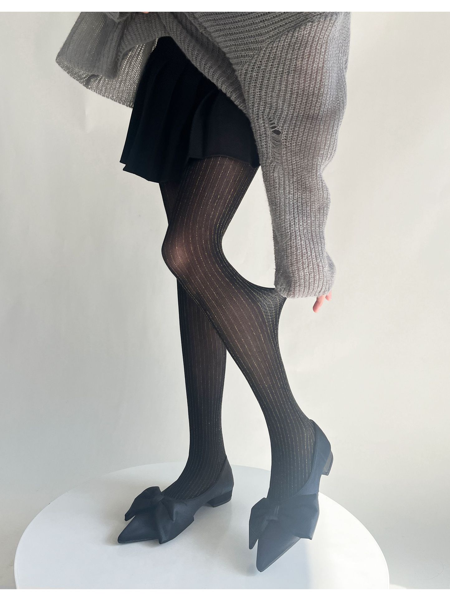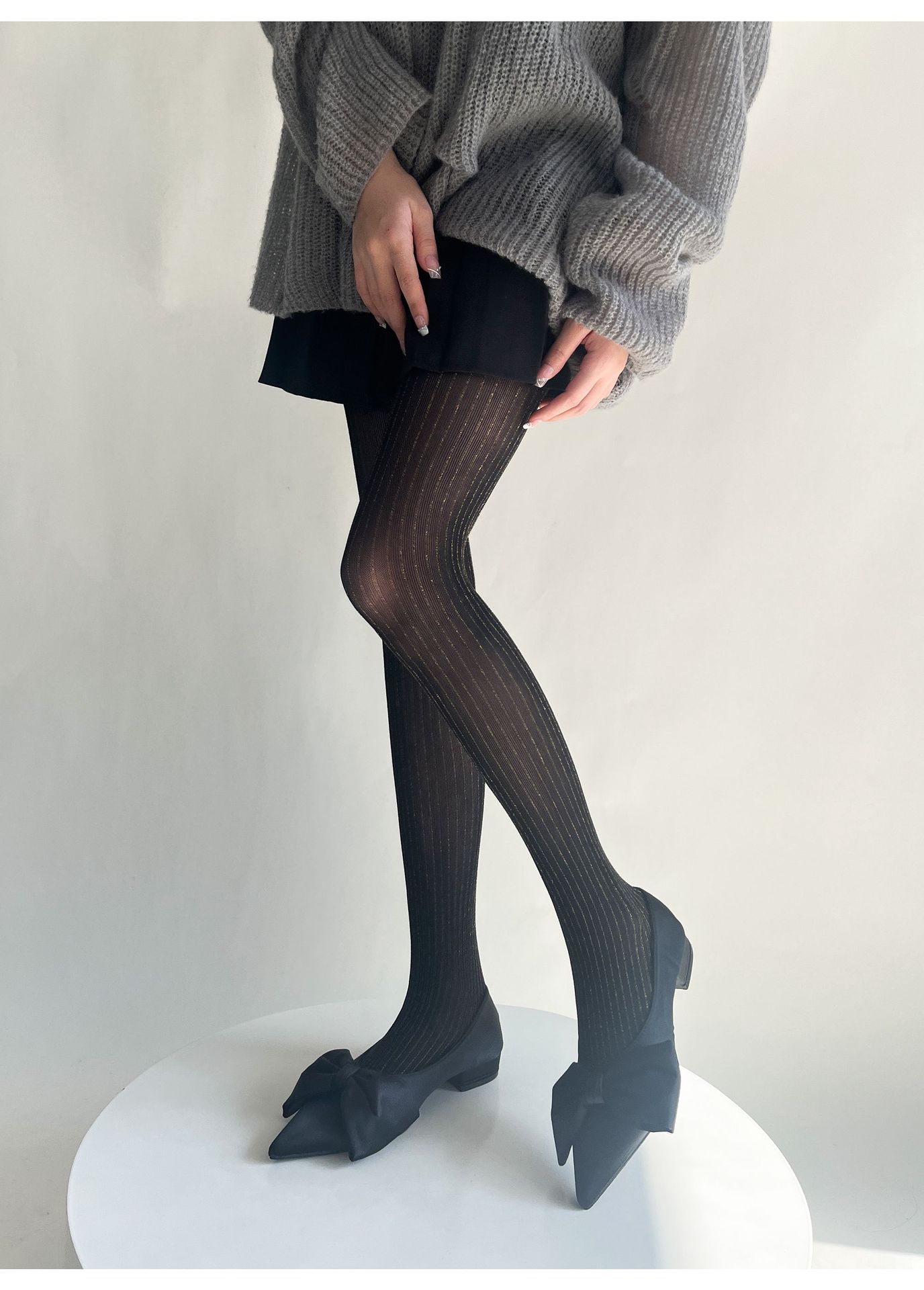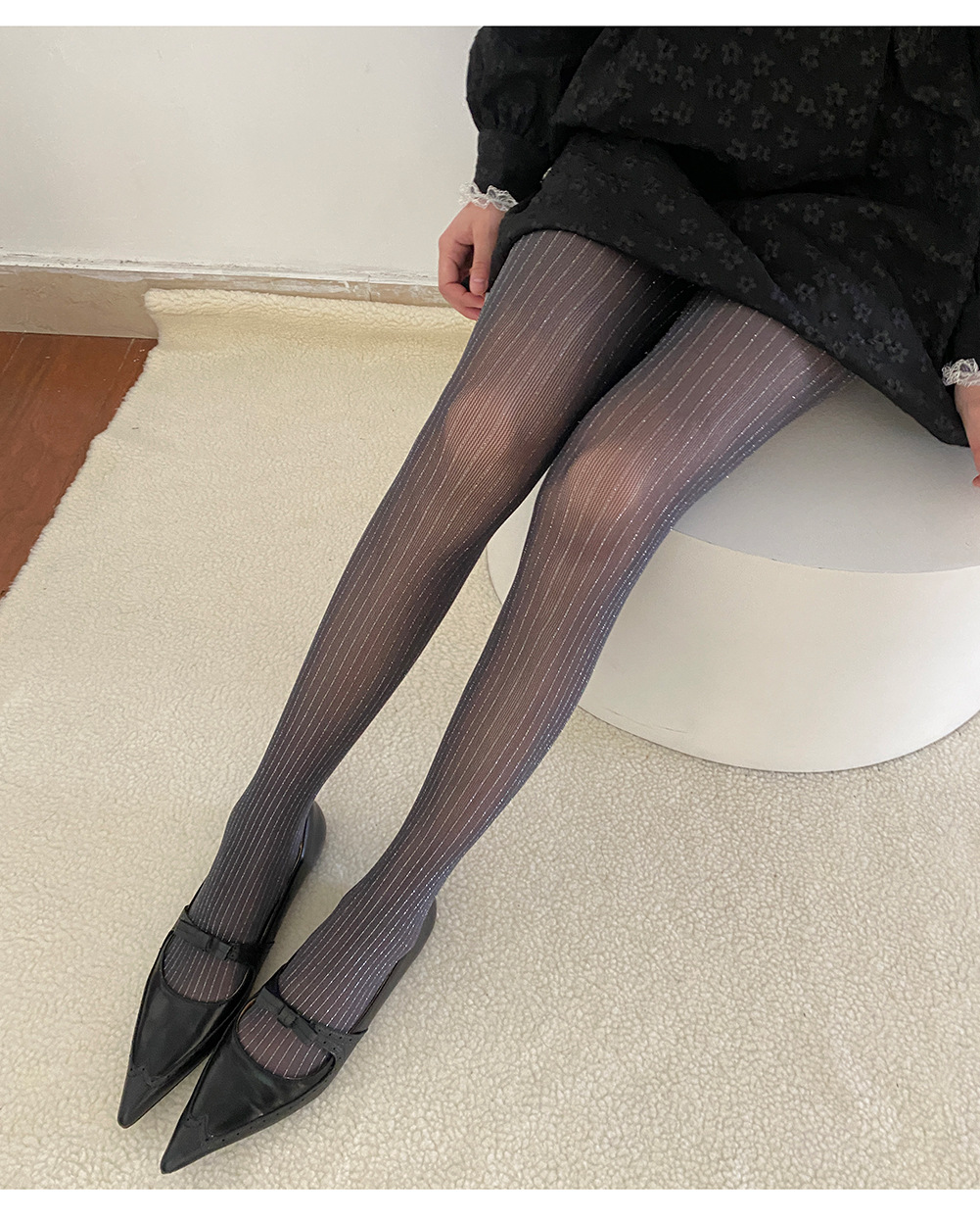 春夏新品奢华黑丝袜银丝竖纹连裤袜亮丝耐穿防勾丝